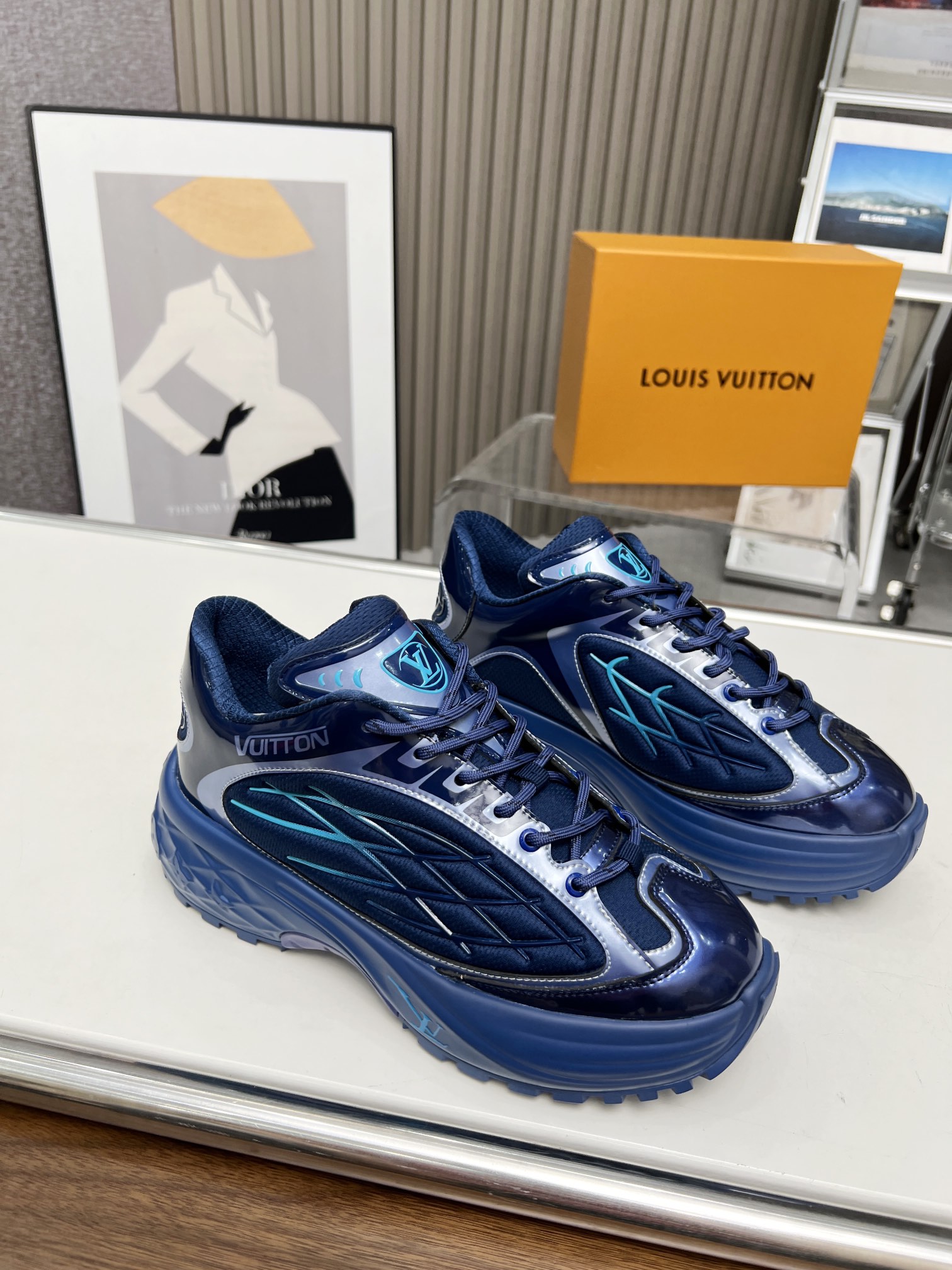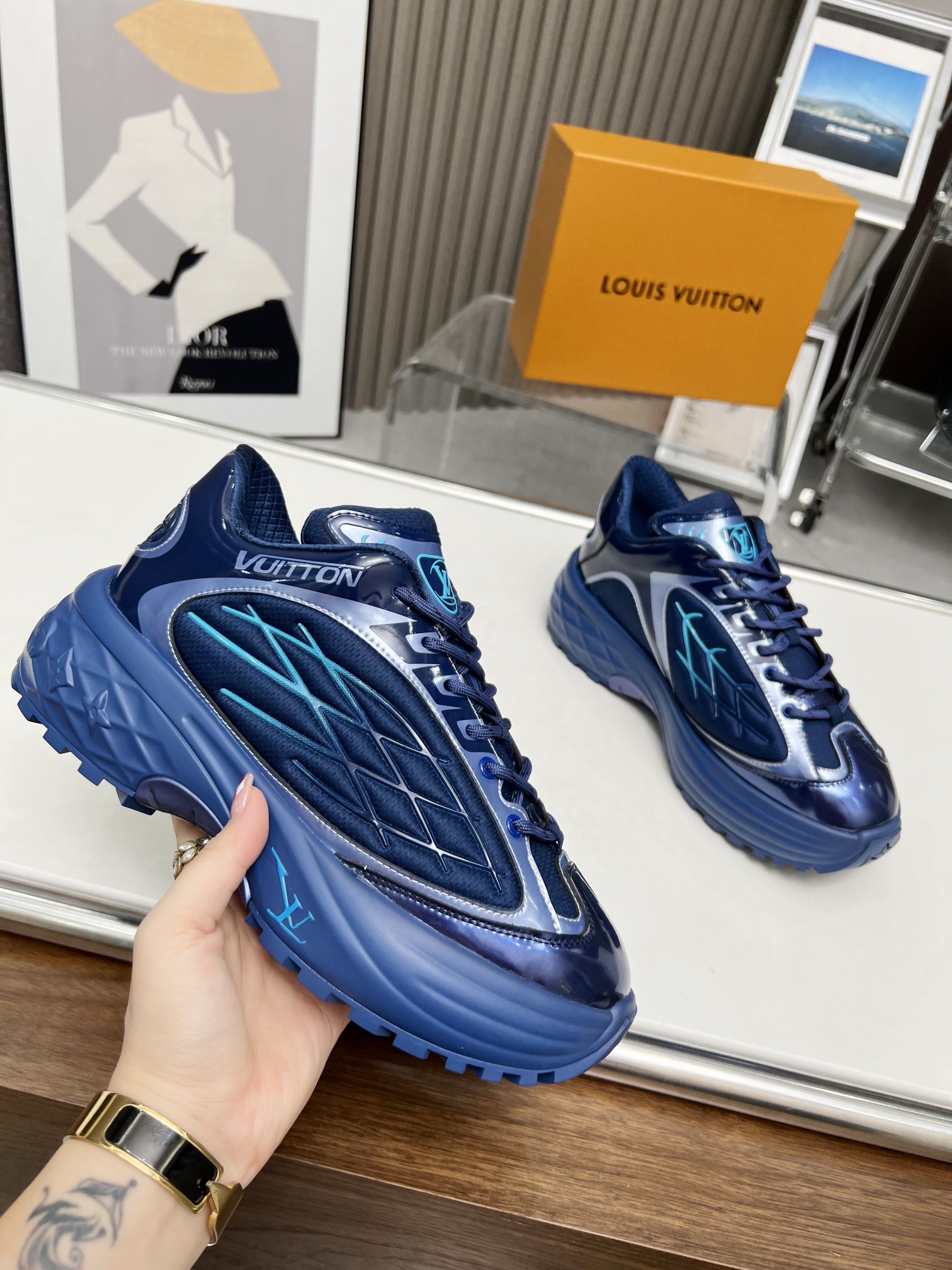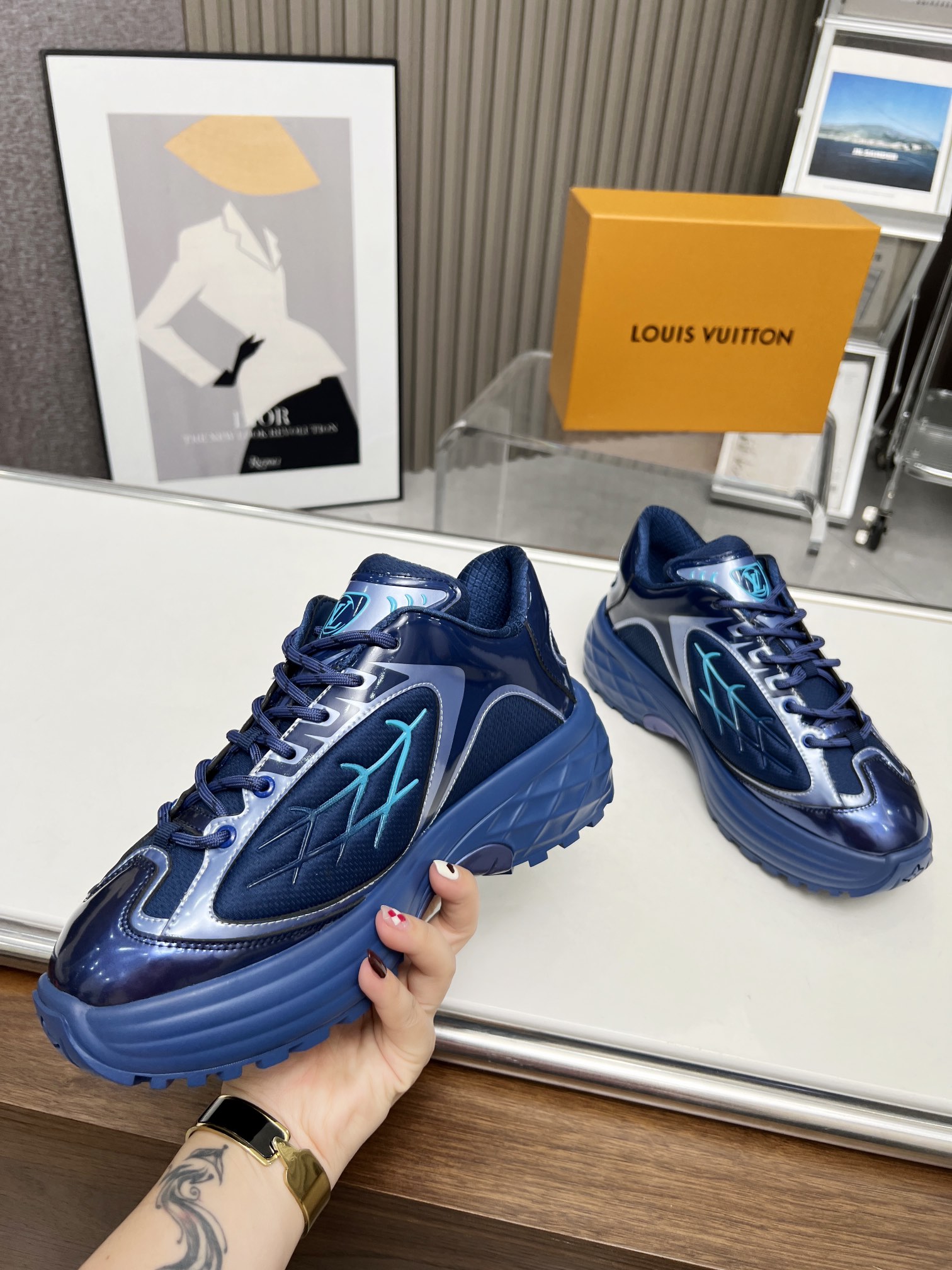 这款鞋子是AAAAA 1:1 质量 (非常棒). 使用了和原版一模一样的材料. 商标部分也保持了和路易威登/Louis Vuitton一样. 图片拍摄是实物鞋子拍摄, 您所收到的实物保证和我们图片一模一样.