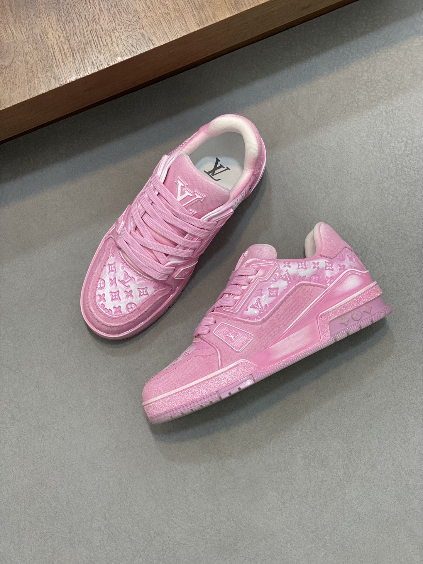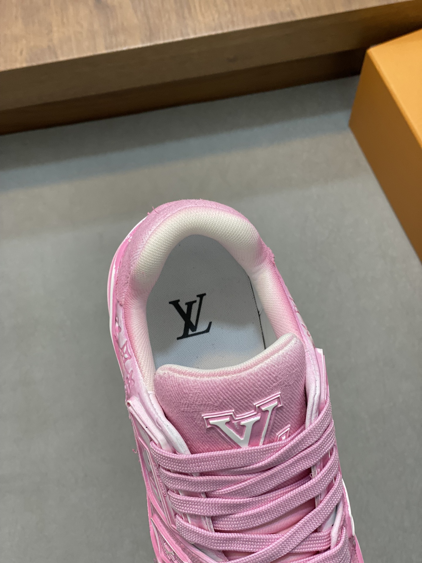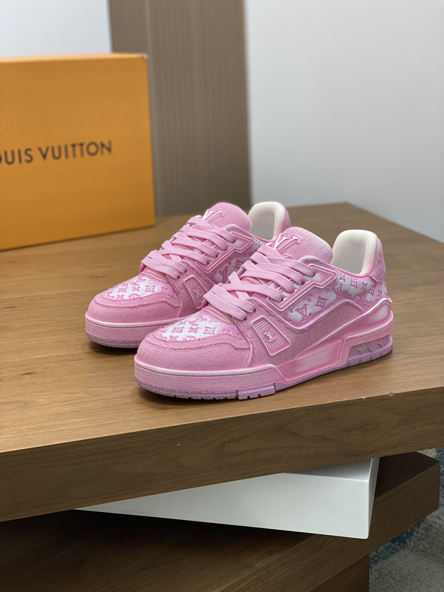 这款鞋子是AAAAA 1:1 质量 (非常棒). 使用了和原版一模一样的材料. 商标部分也保持了和路易威登/Louis Vuitton一样. 图片拍摄是实物鞋子拍摄, 您所收到的实物保证和我们图片一模一样.