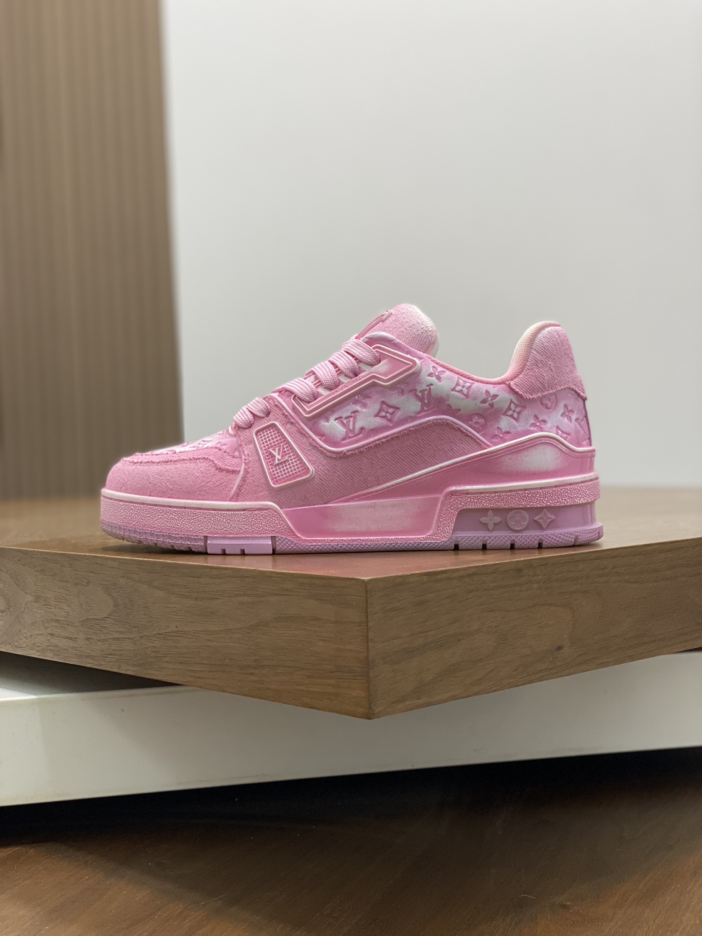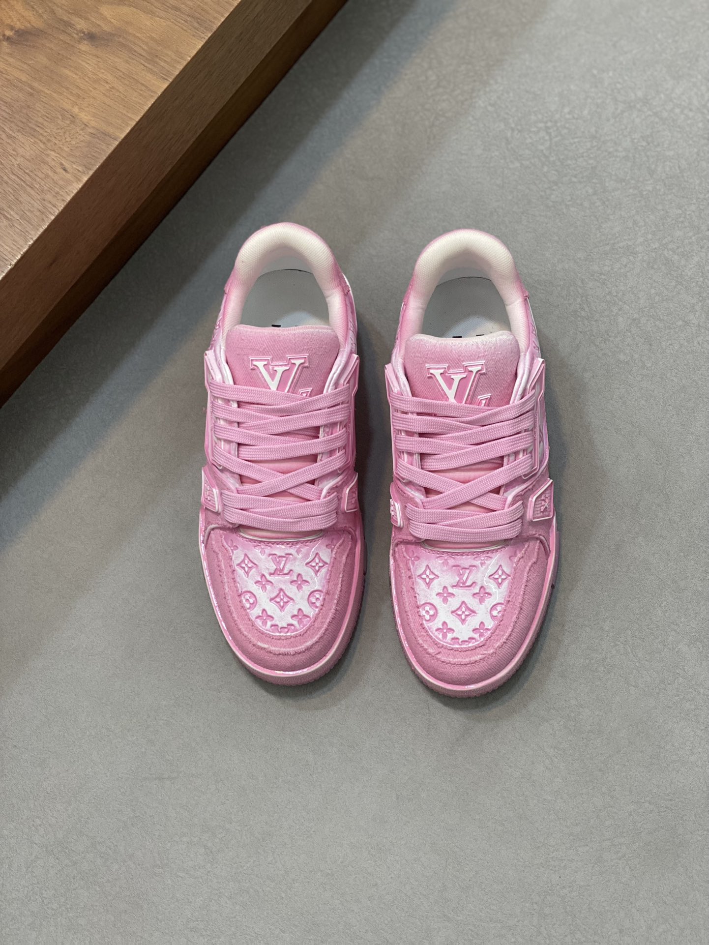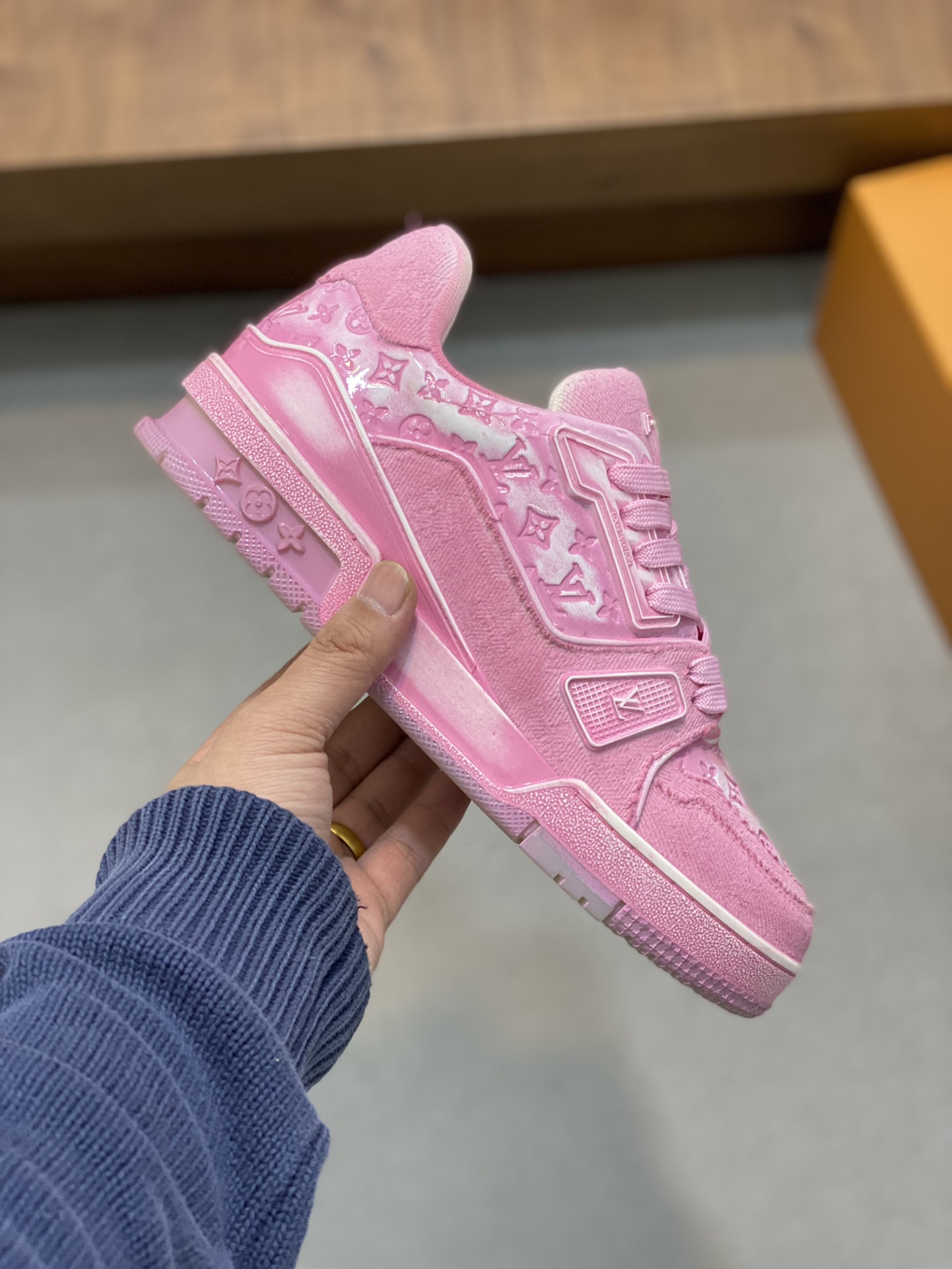 这款鞋子是AAAAA 1:1 质量 (非常棒). 使用了和原版一模一样的材料. 商标部分也保持了和路易威登/Louis Vuitton一样. 图片拍摄是实物鞋子拍摄, 您所收到的实物保证和我们图片一模一样.