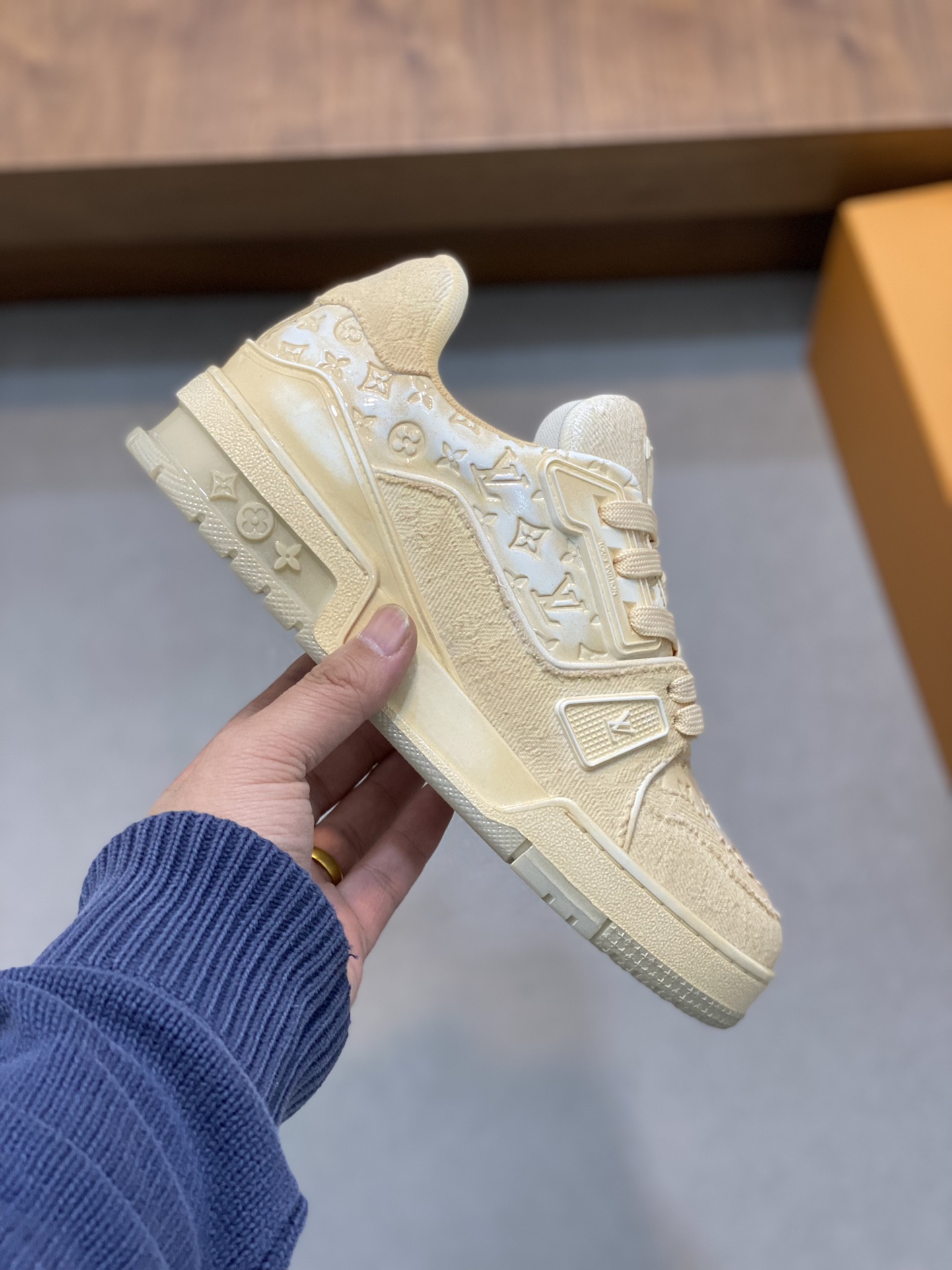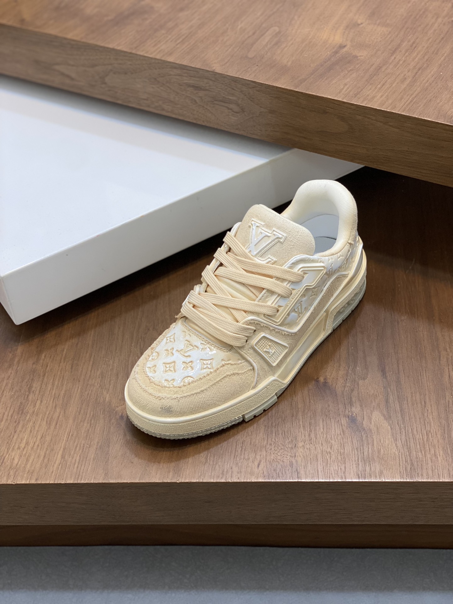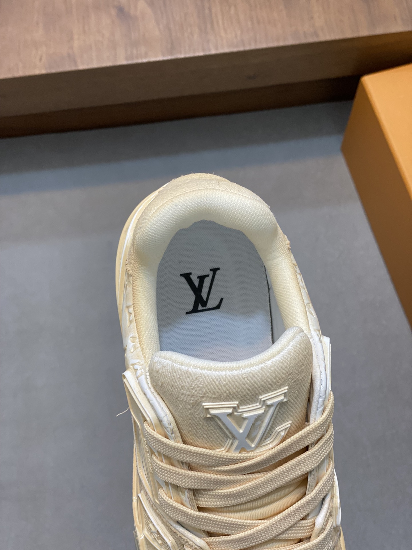 这款鞋子是AAAAA 1:1 质量 (非常棒). 使用了和原版一模一样的材料. 商标部分也保持了和路易威登/Louis Vuitton一样. 图片拍摄是实物鞋子拍摄, 您所收到的实物保证和我们图片一模一样.