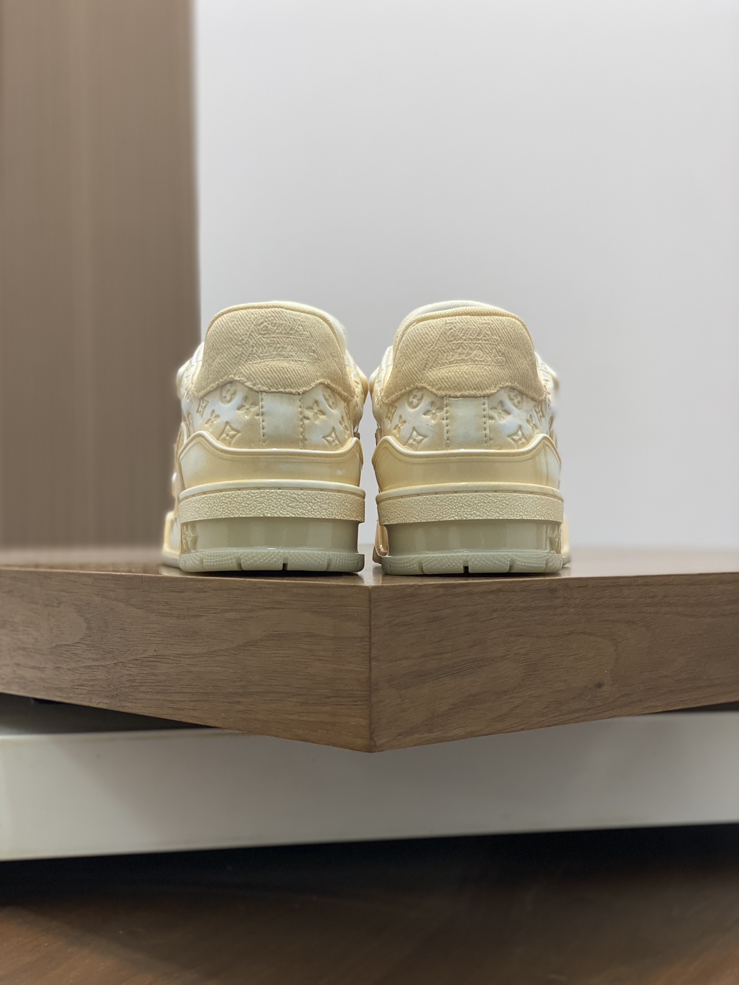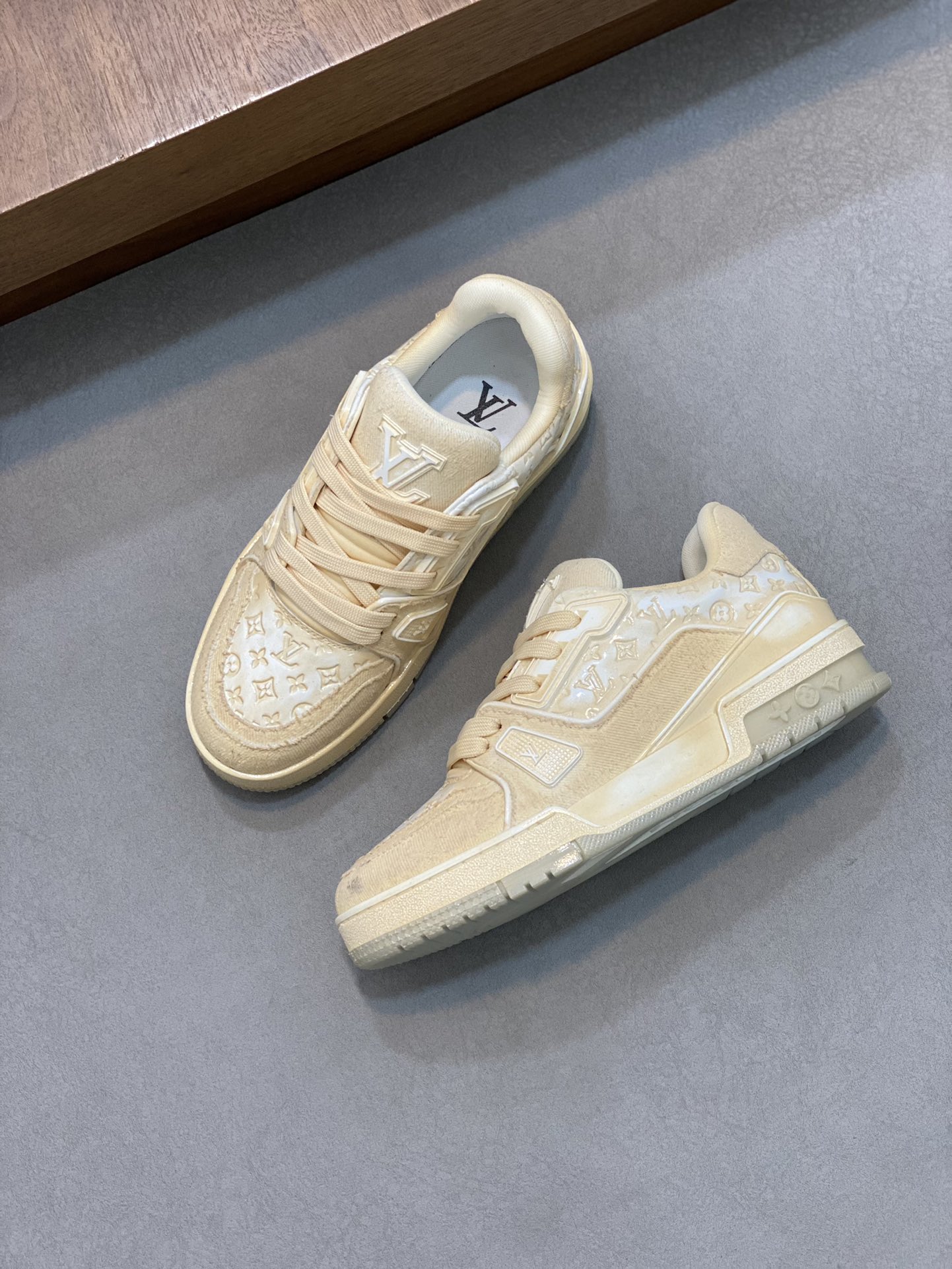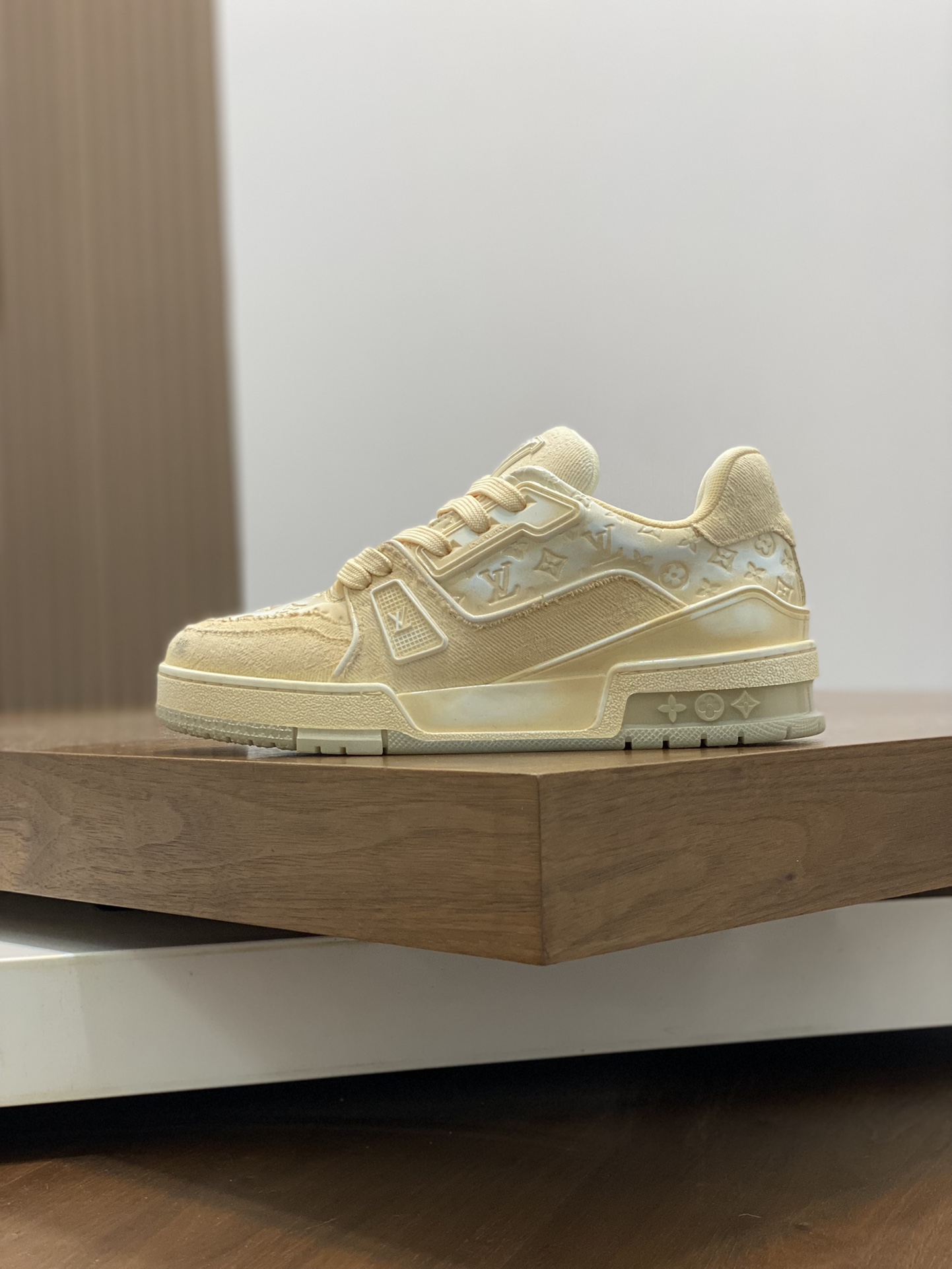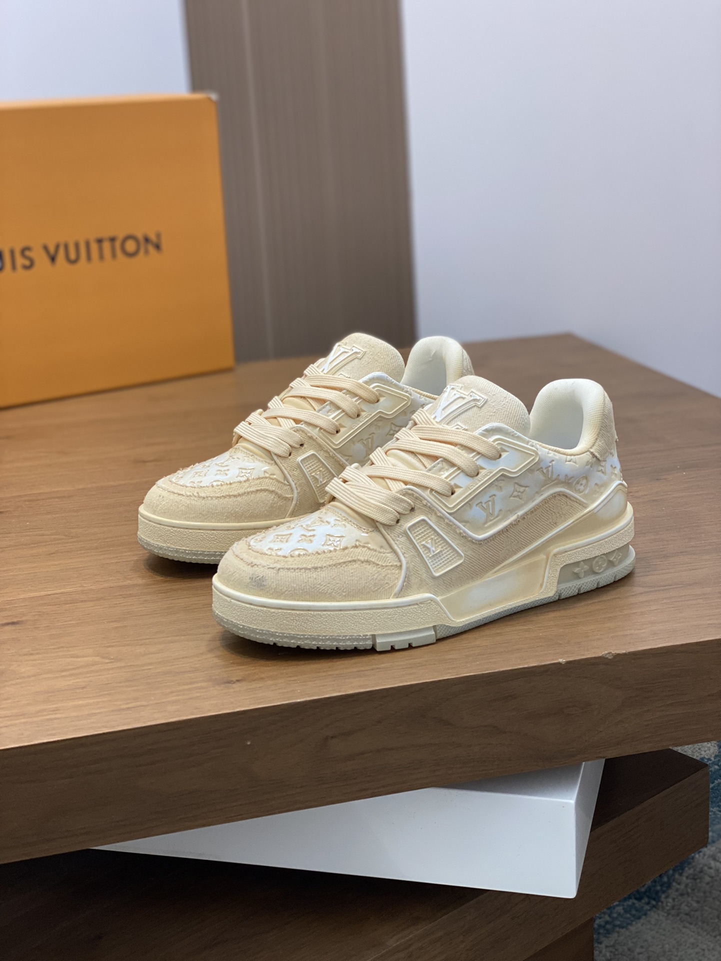 这款鞋子是AAAAA 1:1 质量 (非常棒). 使用了和原版一模一样的材料. 商标部分也保持了和路易威登/Louis Vuitton一样. 图片拍摄是实物鞋子拍摄, 您所收到的实物保证和我们图片一模一样.