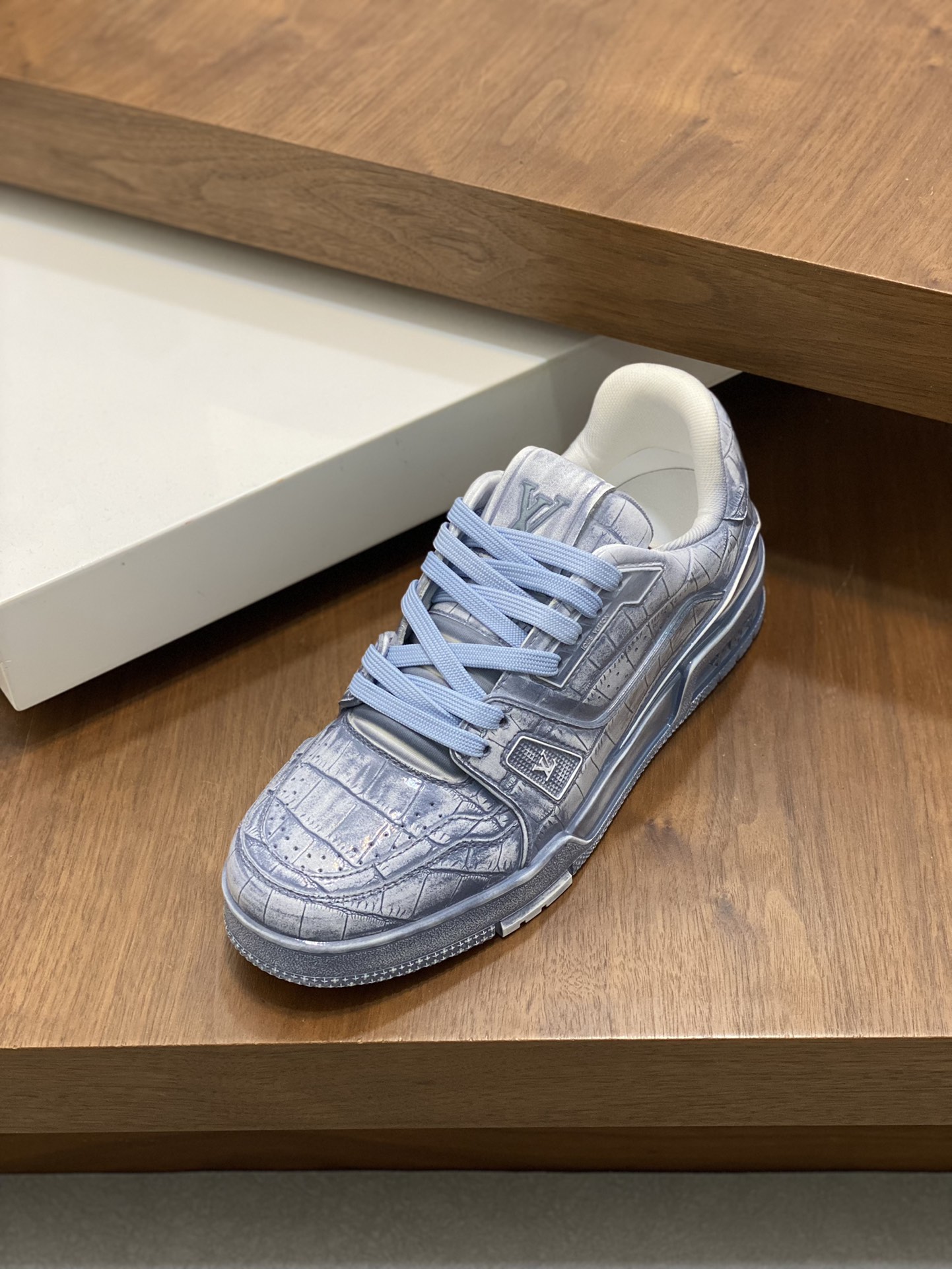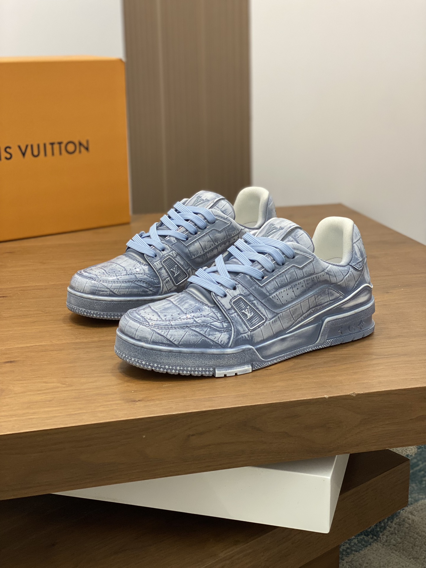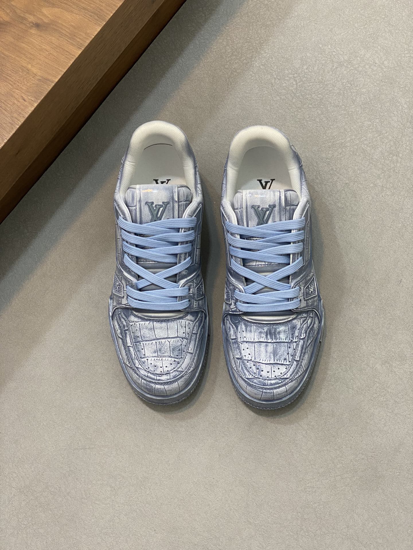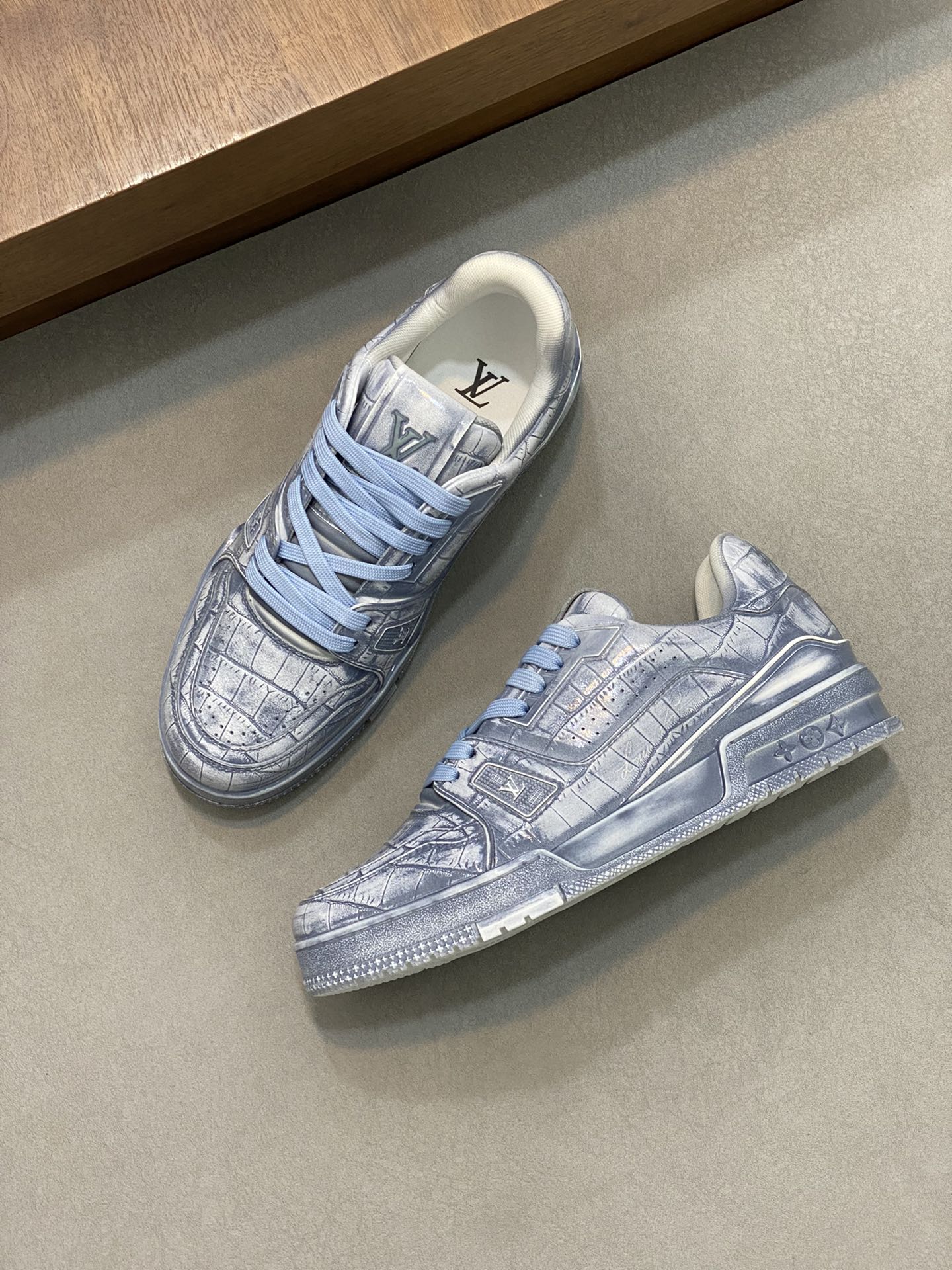 这款鞋子是AAAAA 1:1 质量 (非常棒). 使用了和原版一模一样的材料. 商标部分也保持了和路易威登/Louis Vuitton一样. 图片拍摄是实物鞋子拍摄, 您所收到的实物保证和我们图片一模一样.