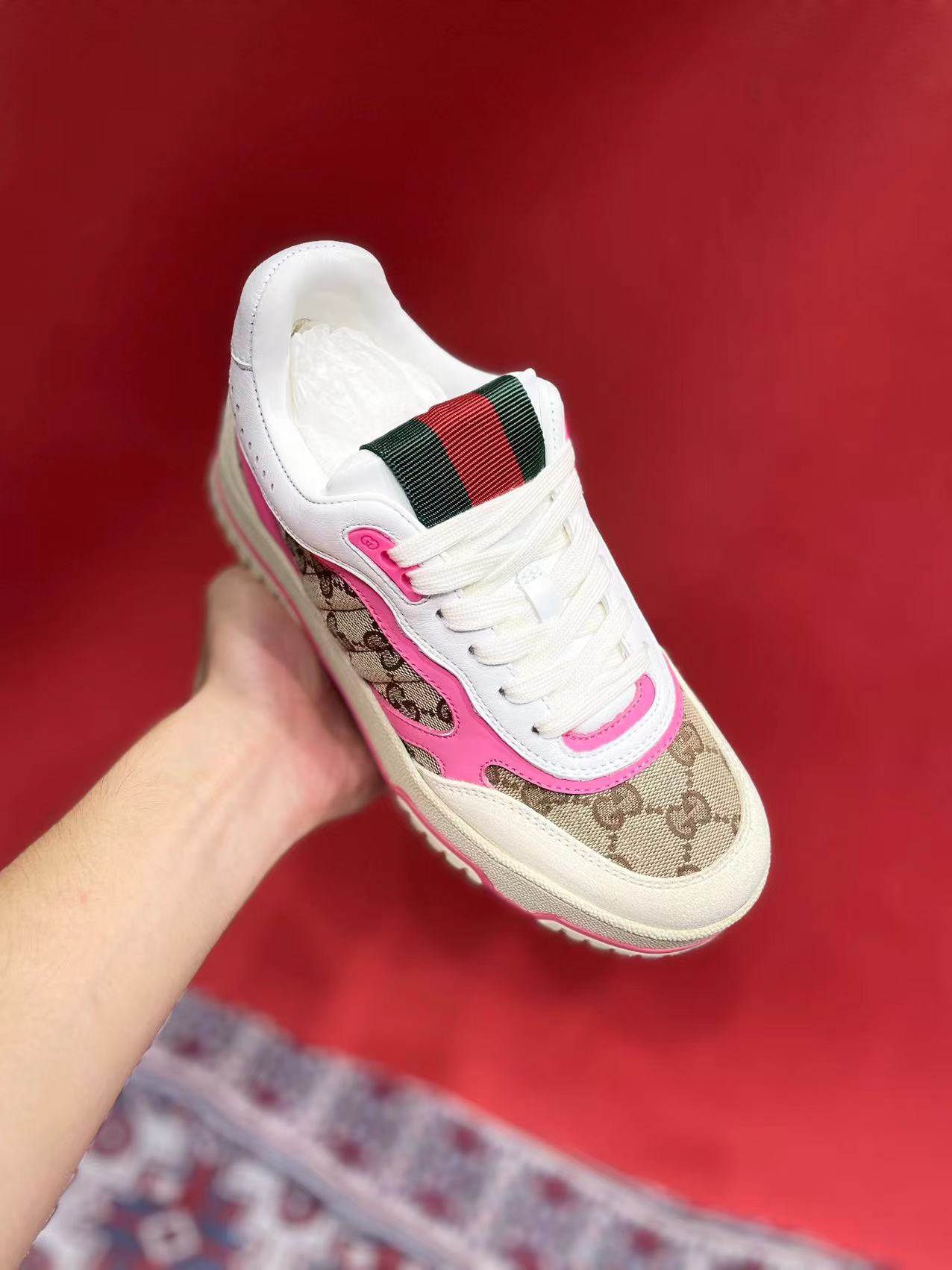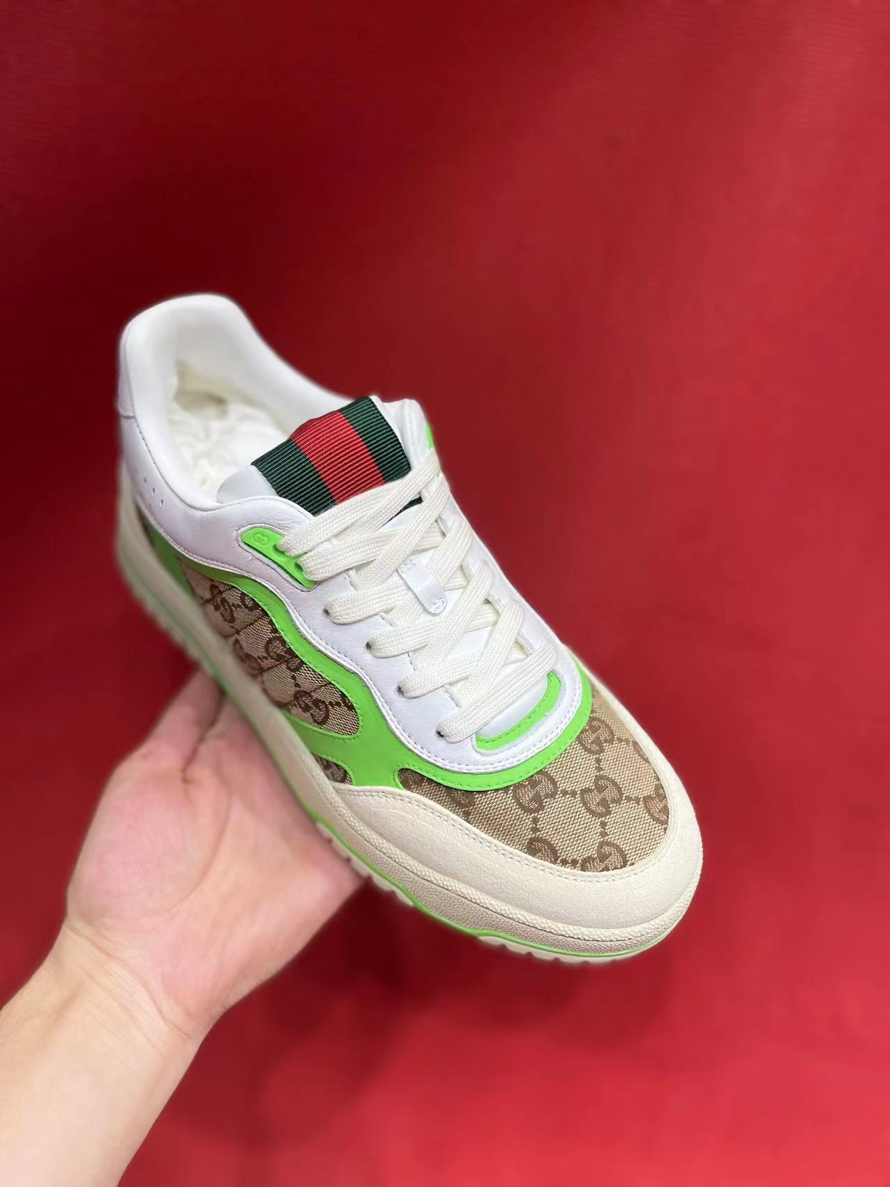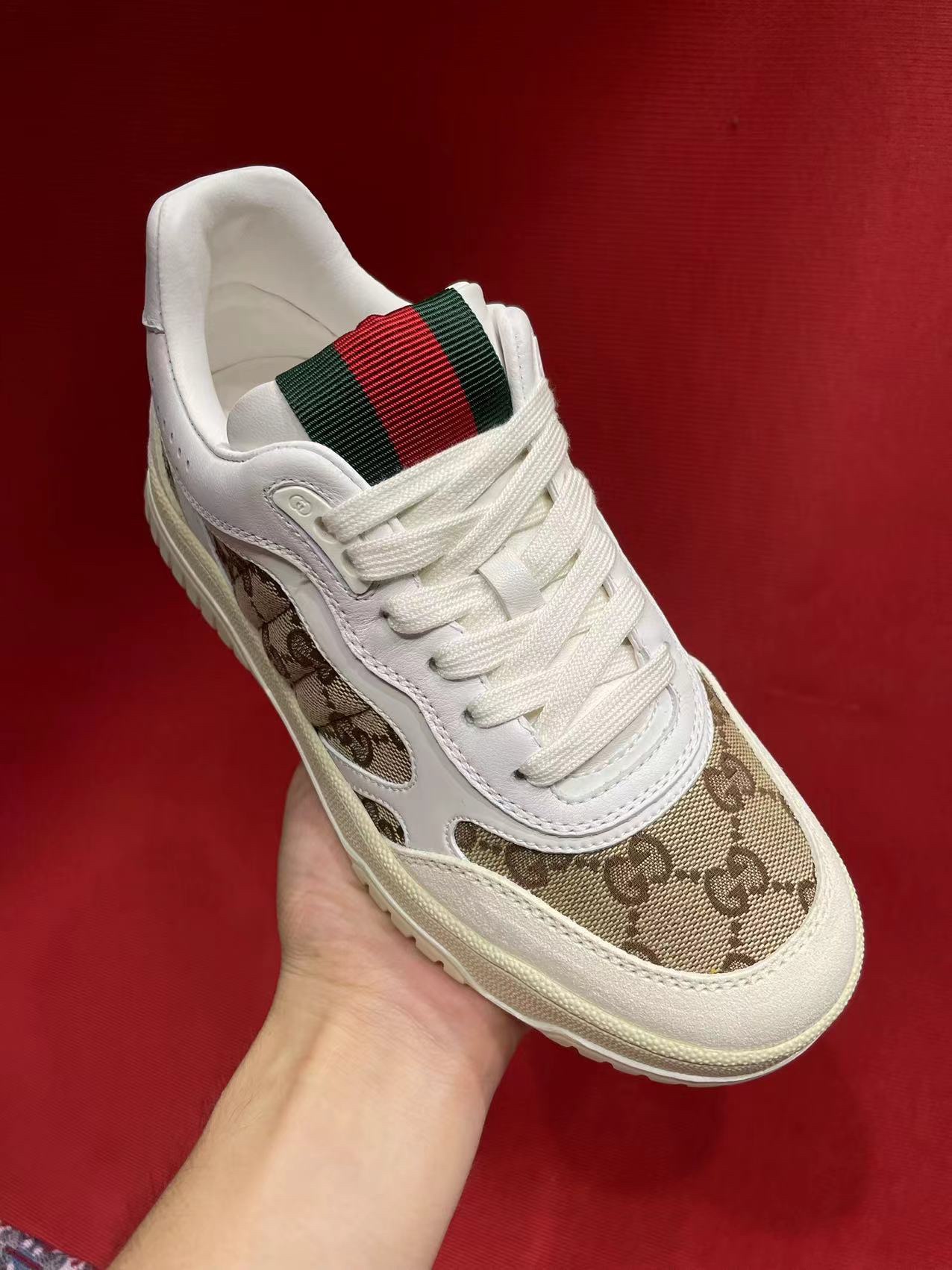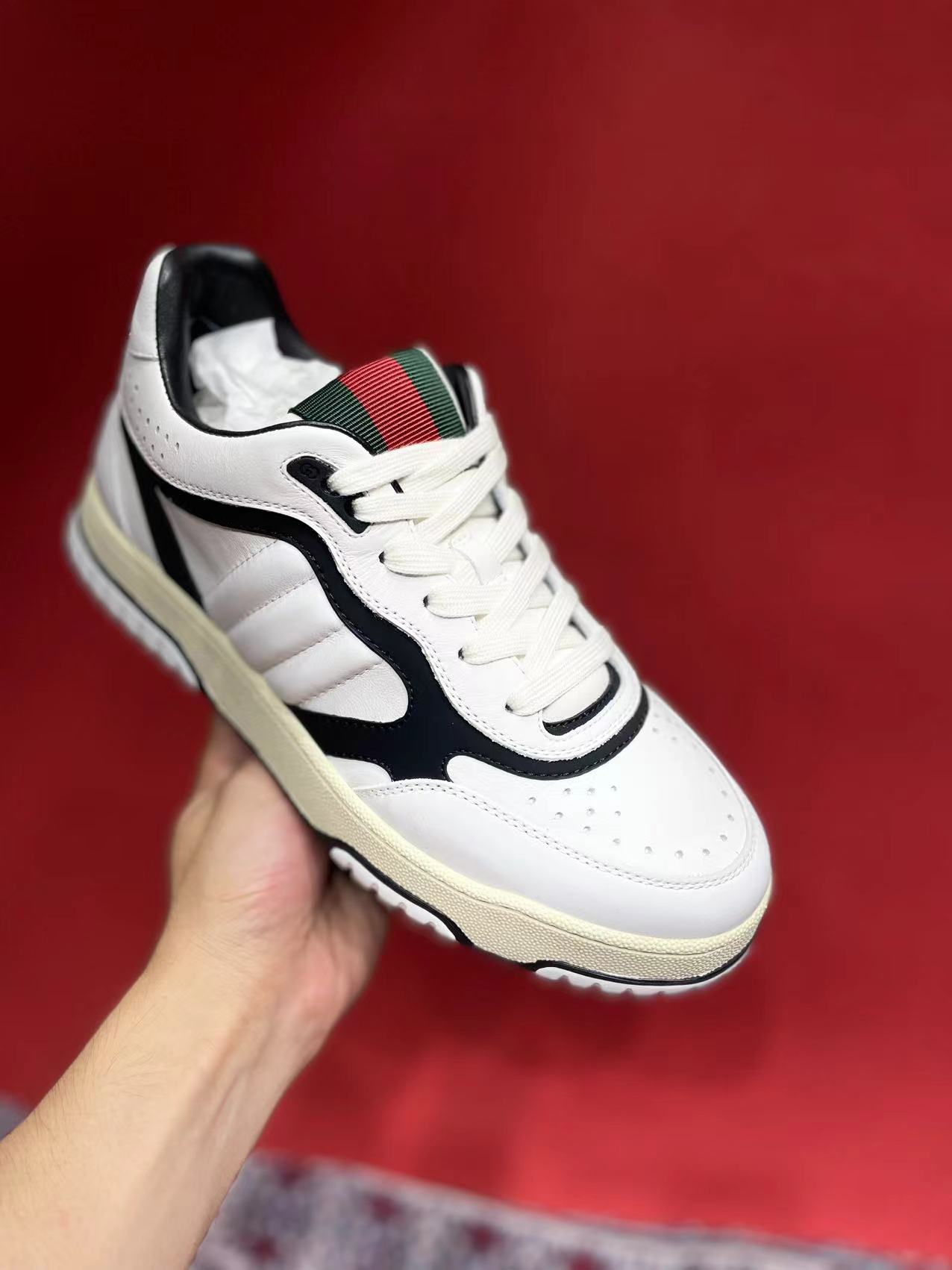 这款鞋子是AAAAA 1:1 质量 (非常棒). 使用了和原版一模一样的材料. 商标部分也保持了和古奇/Gucci一样. 图片拍摄是实物鞋子拍摄, 您所收到的实物保证和我们图片一模一样.