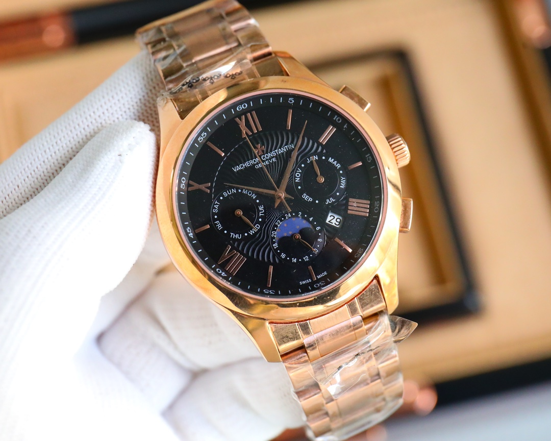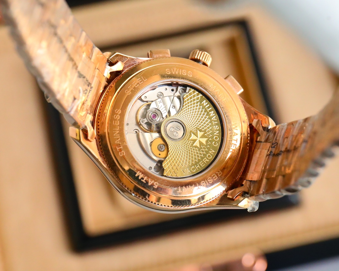 这款手表是AAAAA 1:1 质量 (非常棒). 使用了和原版一模一样的材料. 商标部分也保持了和江诗丹顿/Vacheron Constantin一样. 图片拍摄是实物手表拍摄, 您所收到的实物保证和我们图片一模一样.