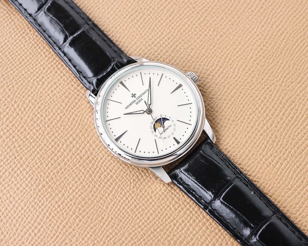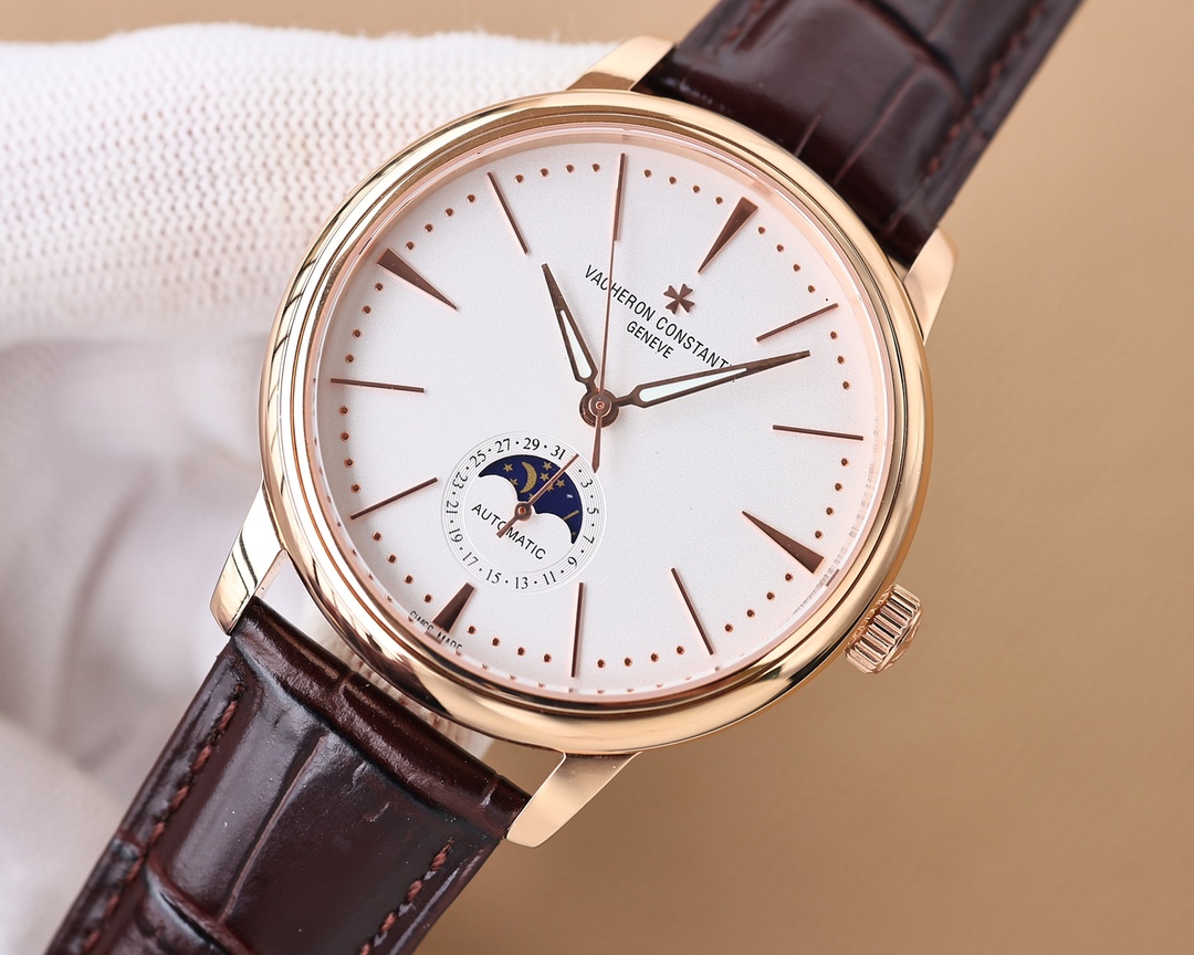 这款手表是AAAAA 1:1 质量 (非常棒). 使用了和原版一模一样的材料. 商标部分也保持了和江诗丹顿/Vacheron Constantin一样. 图片拍摄是实物手表拍摄, 您所收到的实物保证和我们图片一模一样.