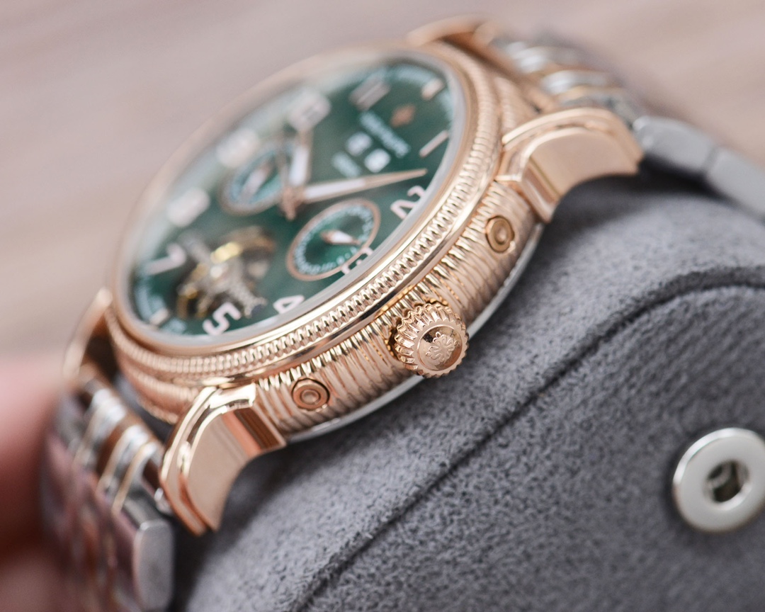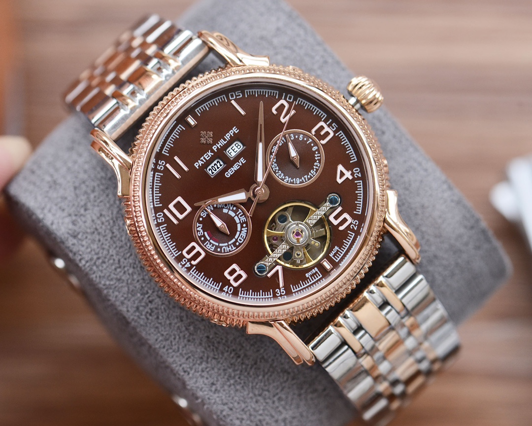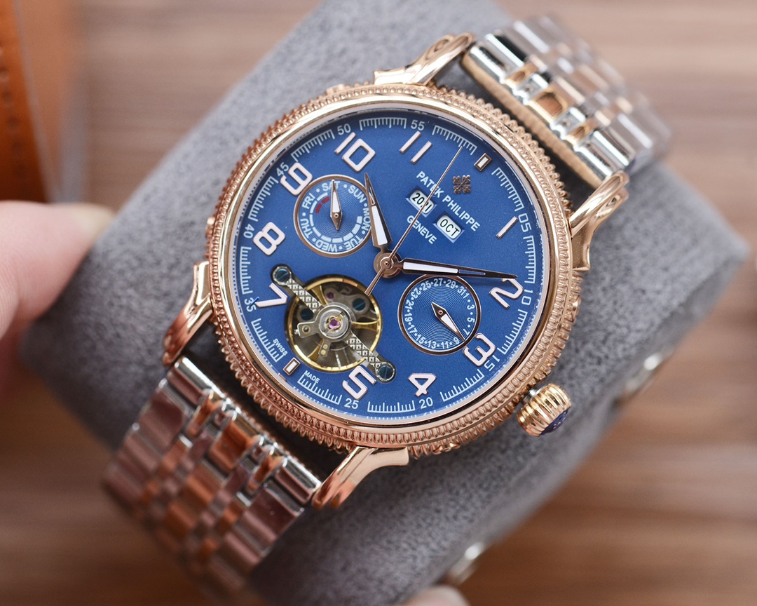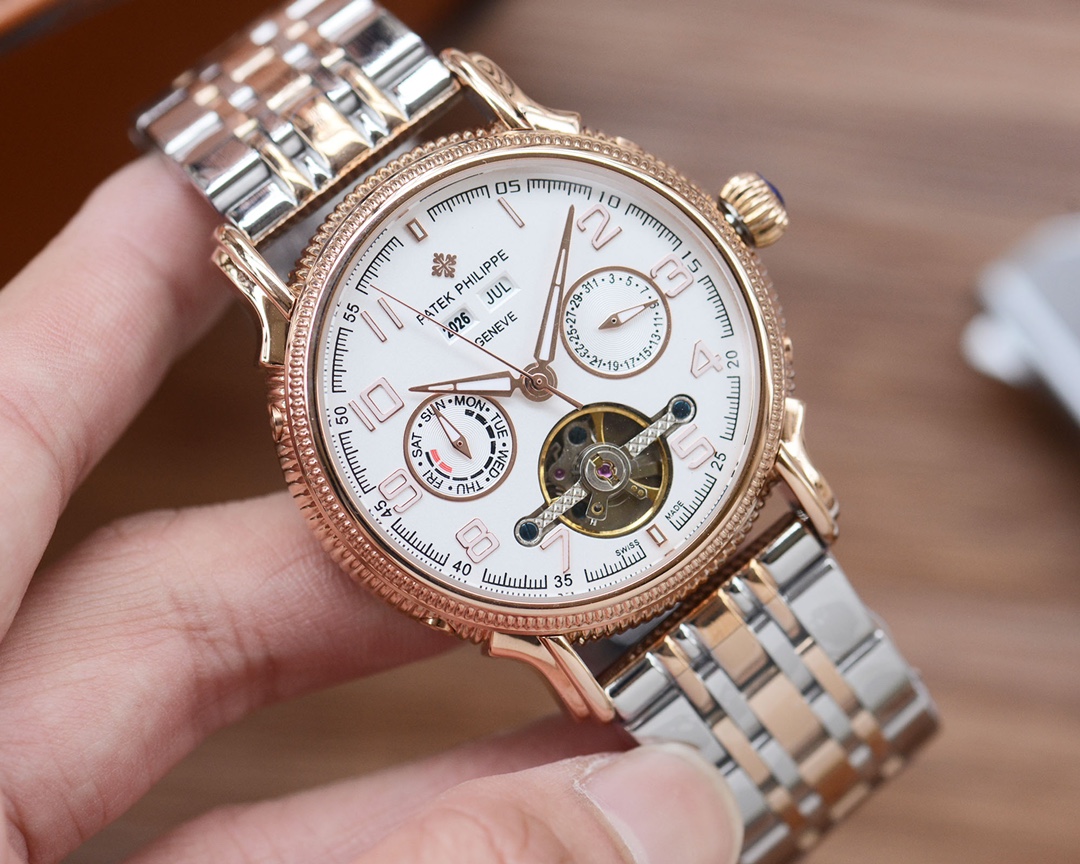 这款手表是AAAAA 1:1 质量 (非常棒). 使用了和原版一模一样的材料. 商标部分也保持了和百达翡丽/Patek Philippe一样. 图片拍摄是实物手表拍摄, 您所收到的实物保证和我们图片一模一样.