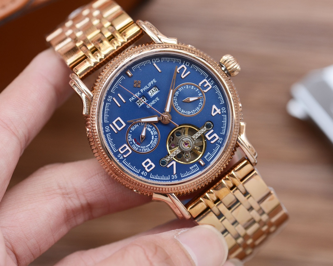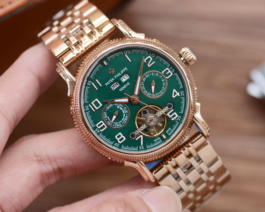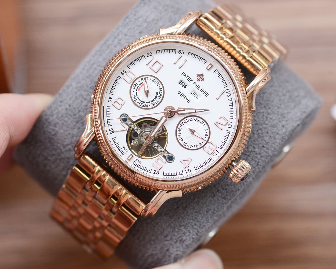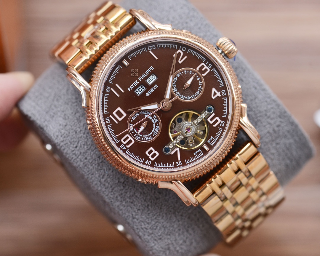 这款手表是AAAAA 1:1 质量 (非常棒). 使用了和原版一模一样的材料. 商标部分也保持了和百达翡丽/Patek Philippe一样. 图片拍摄是实物手表拍摄, 您所收到的实物保证和我们图片一模一样.