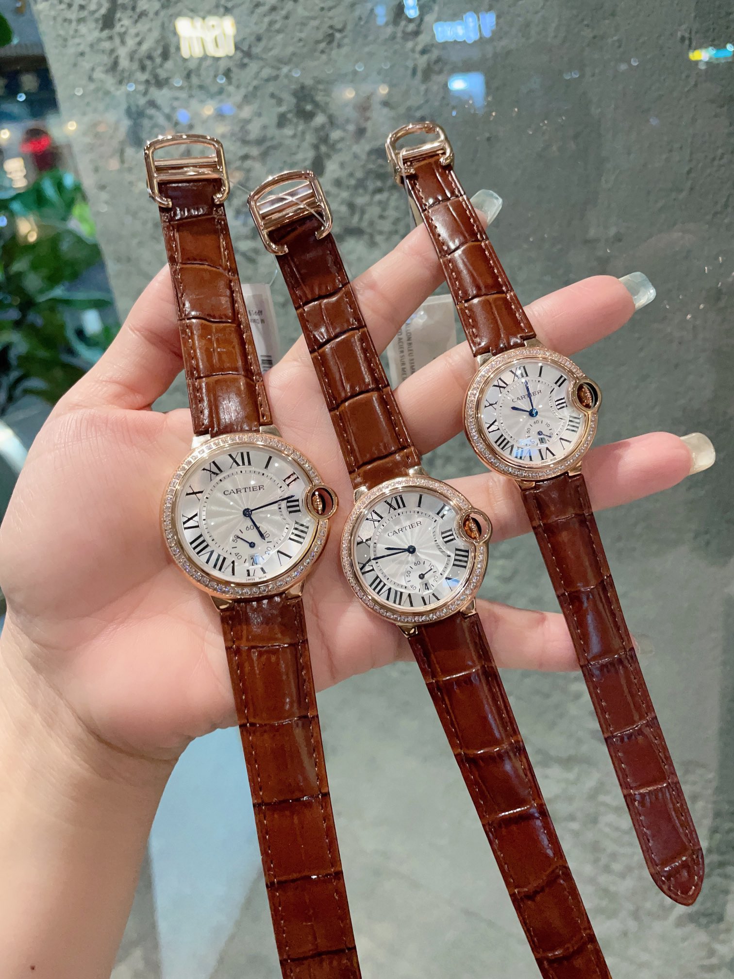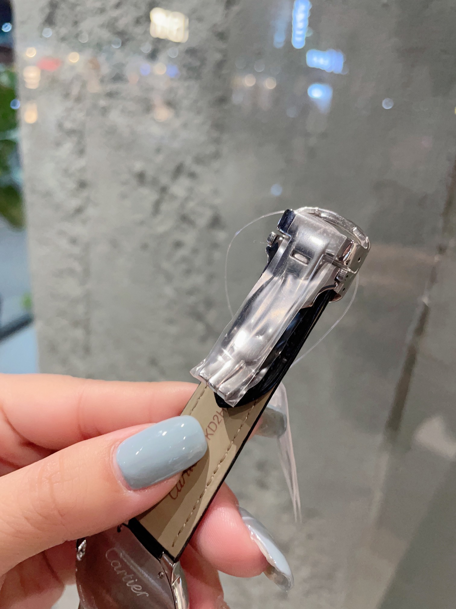 这款手表是AAAAA 1:1 质量 (非常棒). 使用了和原版一模一样的材料. 商标部分也保持了和卡地亚/Cartier一样. 图片拍摄是实物手表拍摄, 您所收到的实物保证和我们图片一模一样.