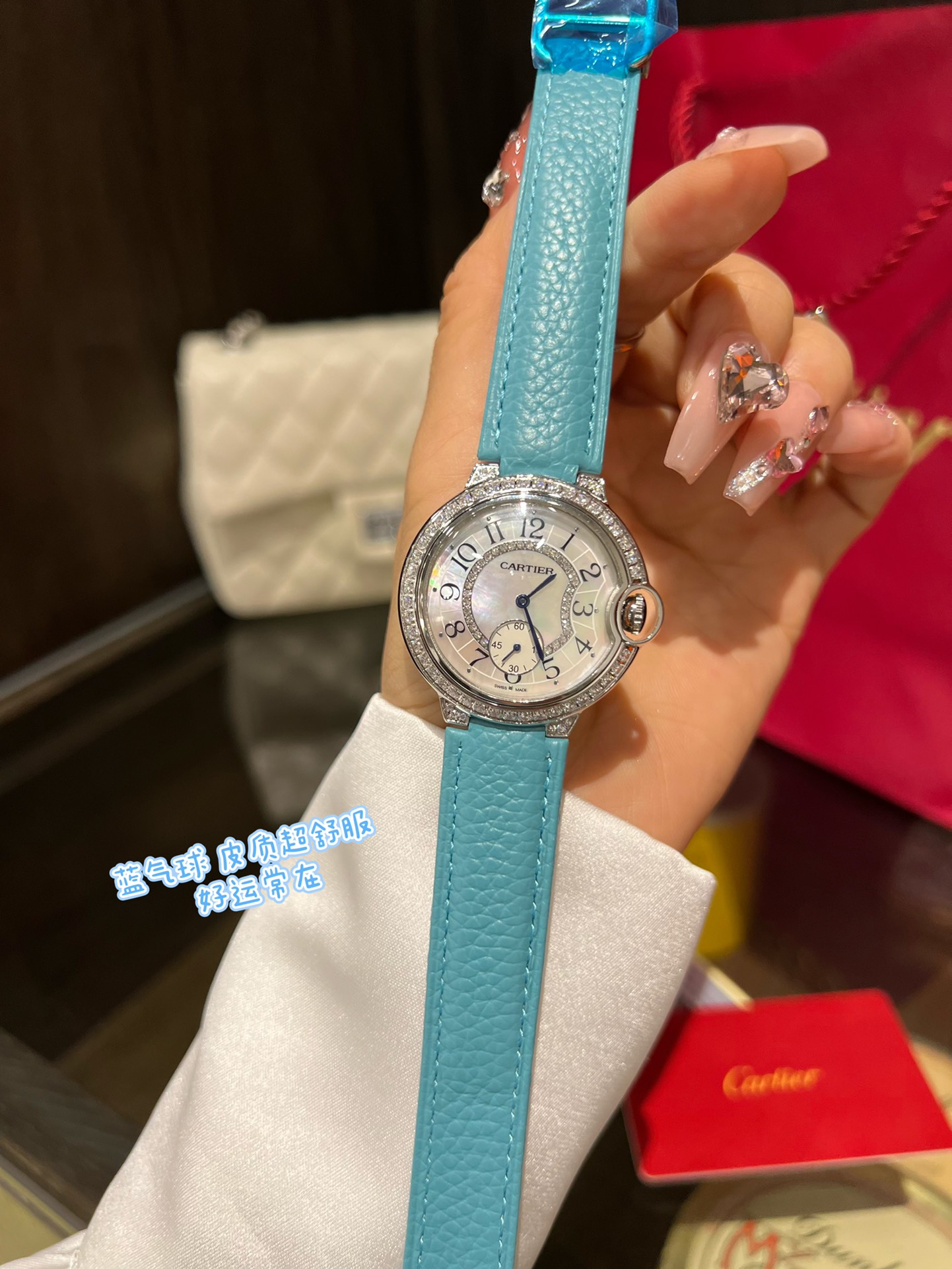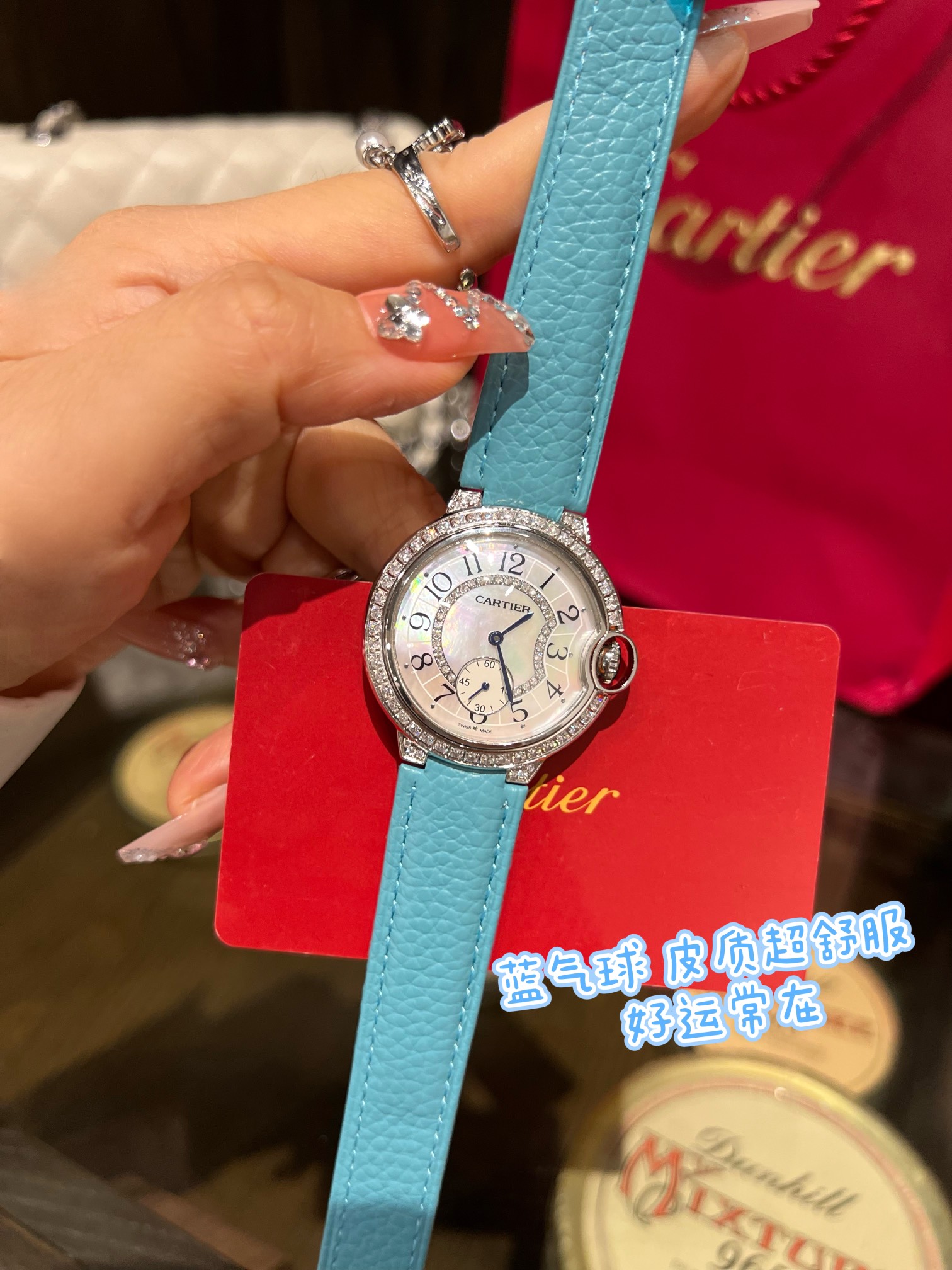 这款手表是AAAAA 1:1 质量 (非常棒). 使用了和原版一模一样的材料. 商标部分也保持了和卡地亚/Cartier一样. 图片拍摄是实物手表拍摄, 您所收到的实物保证和我们图片一模一样.