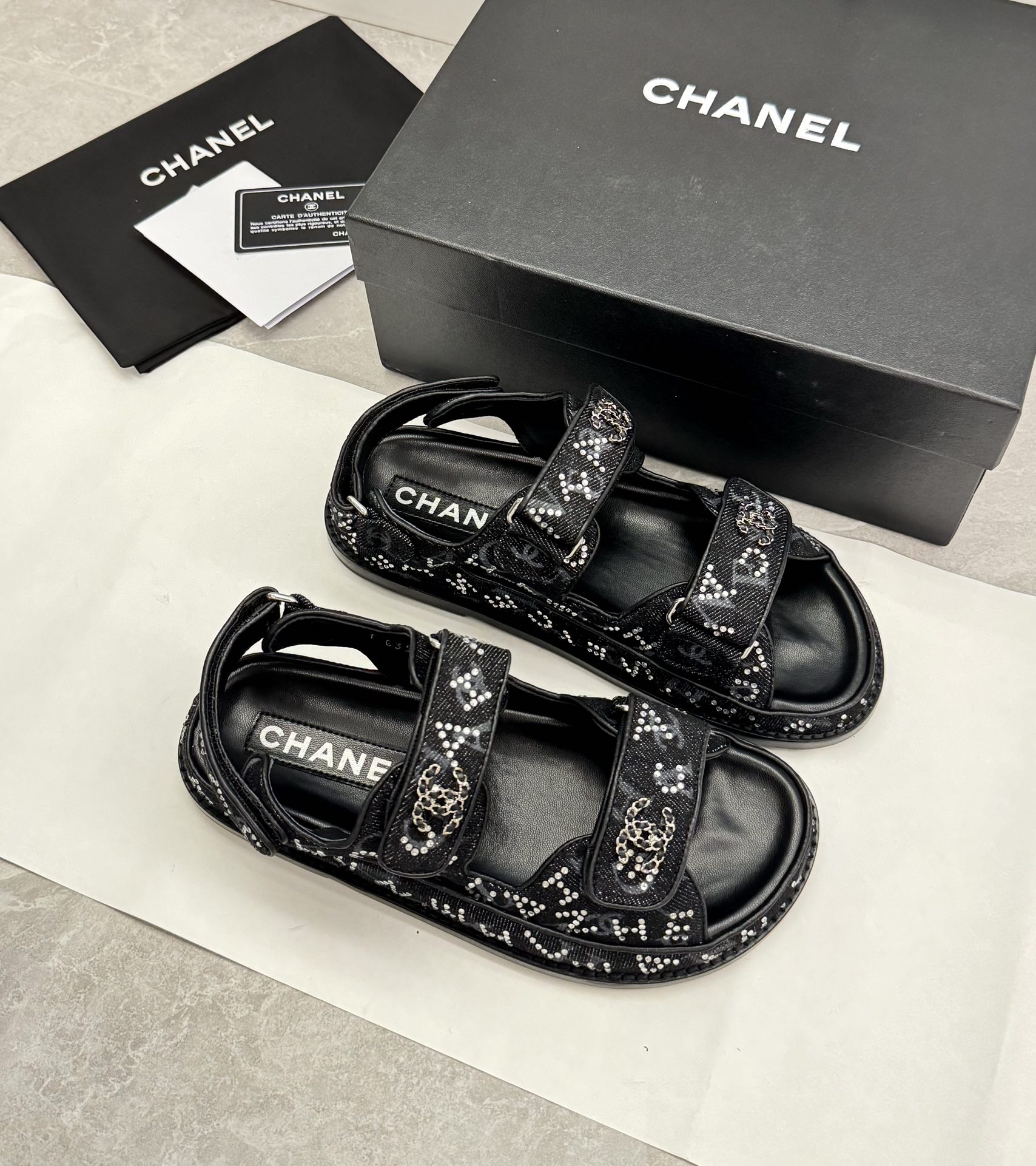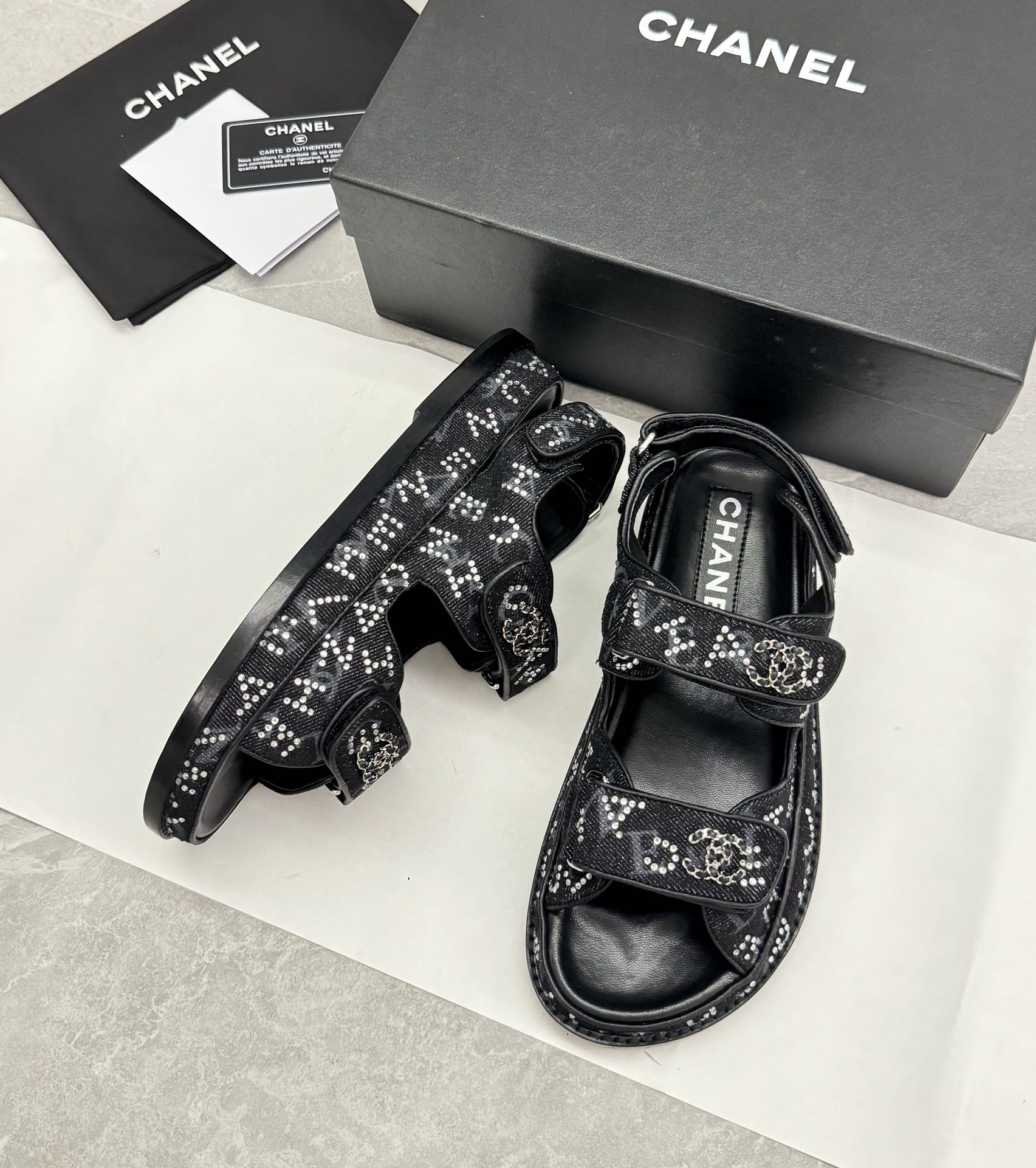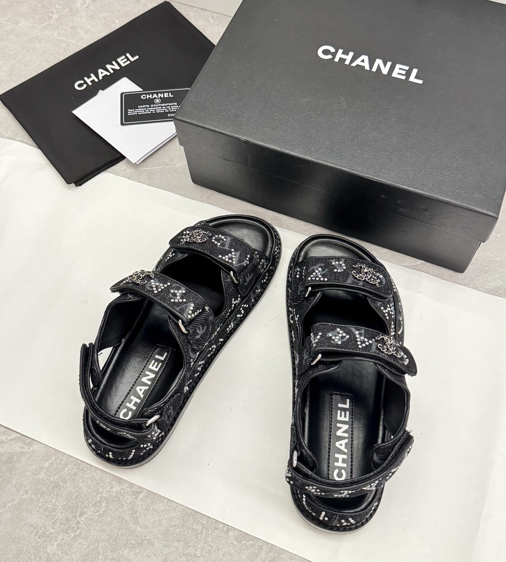 这款鞋子是AAAAA 1:1 质量 (非常棒). 使用了和原版一模一样的材料. 商标部分也保持了和香奈儿/Chanel一样. 图片拍摄是实物鞋子拍摄, 您所收到的实物保证和我们图片一模一样.