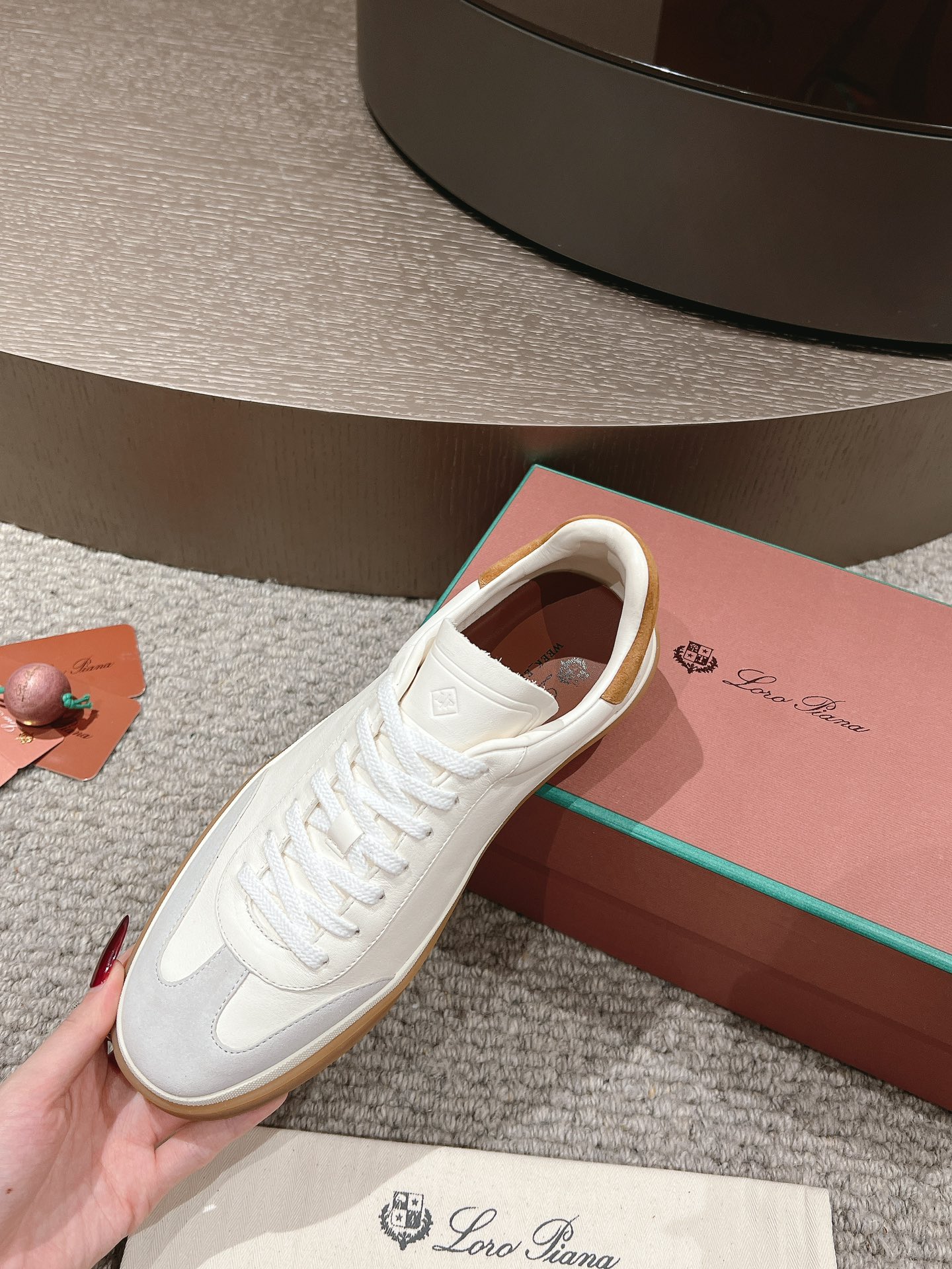 这款鞋子是AAAAA 1:1 质量 (非常棒). 使用了和原版一模一样的材料. 商标部分也保持了和洛罗皮亚纳/Loro Piana一样. 图片拍摄是实物鞋子拍摄, 您所收到的实物保证和我们图片一模一样.