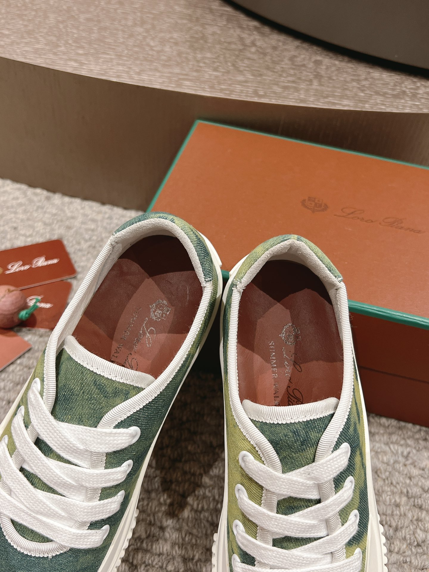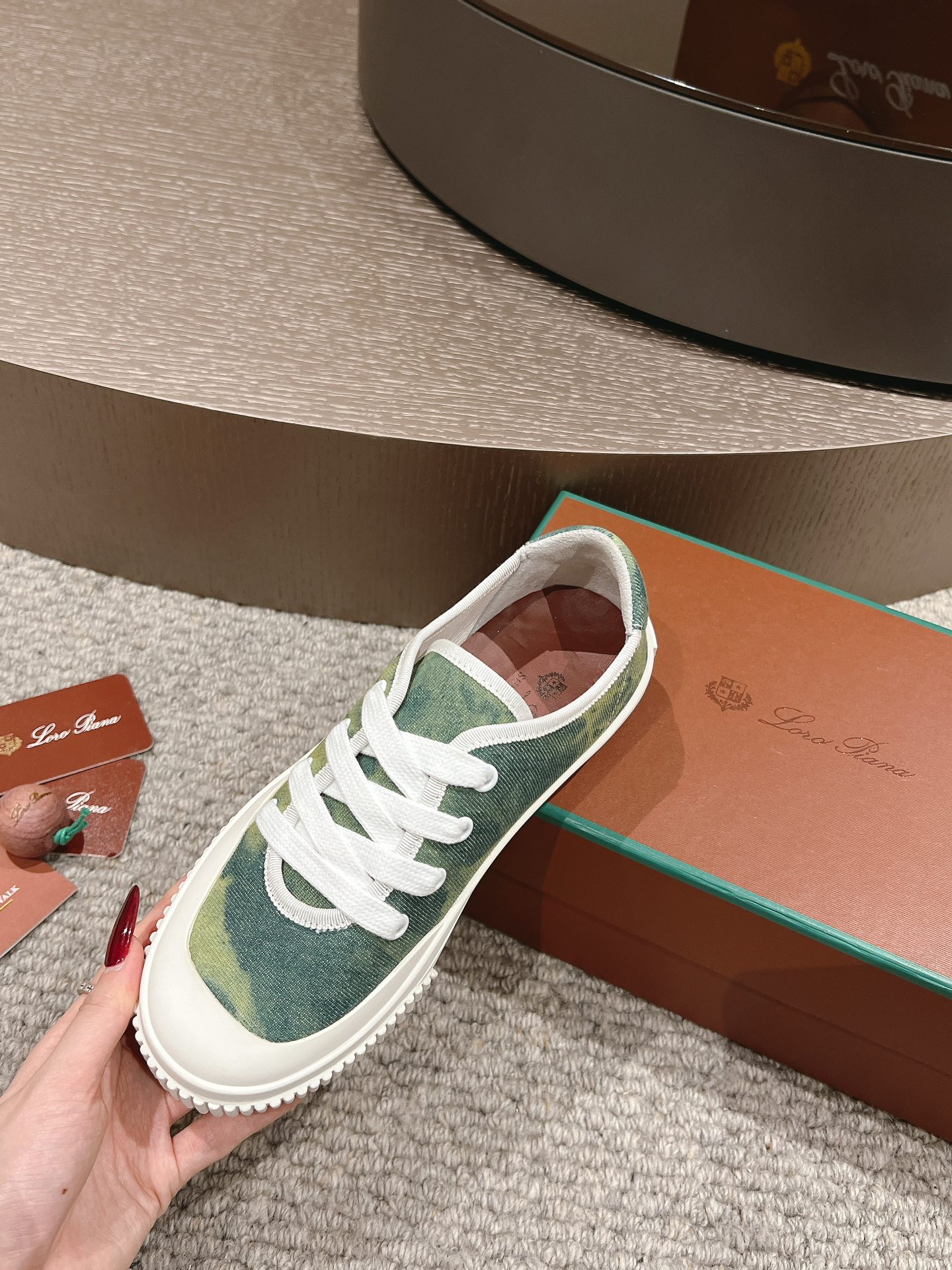 这款鞋子是AAAAA 1:1 质量 (非常棒). 使用了和原版一模一样的材料. 商标部分也保持了和洛罗皮亚纳/Loro Piana一样. 图片拍摄是实物鞋子拍摄, 您所收到的实物保证和我们图片一模一样.