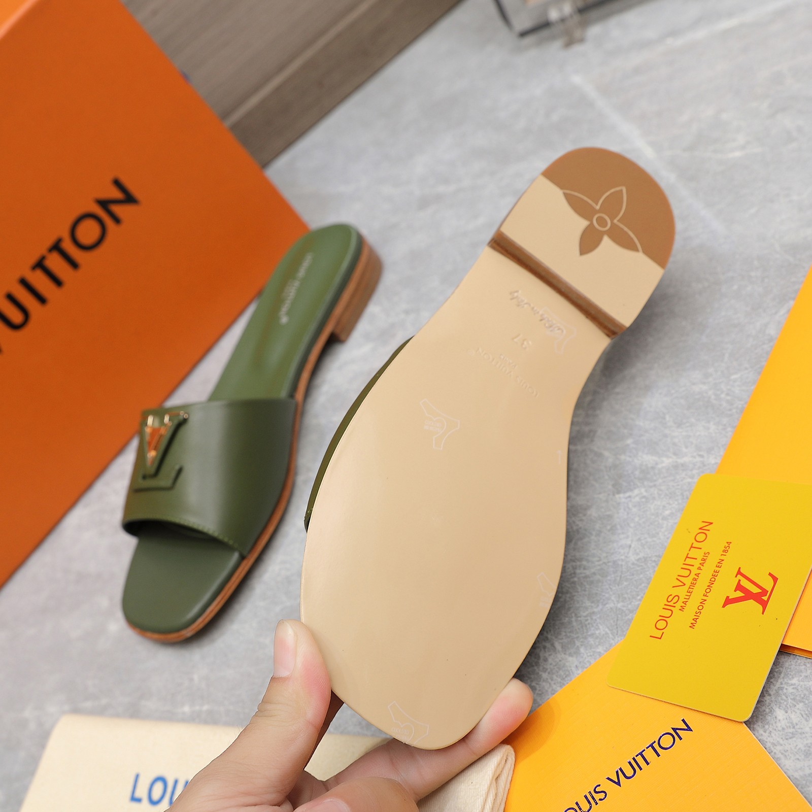 这款鞋子是AAAAA 1:1 质量 (非常棒). 使用了和原版一模一样的材料. 商标部分也保持了和路易威登/Louis Vuitton一样. 图片拍摄是实物鞋子拍摄, 您所收到的实物保证和我们图片一模一样.