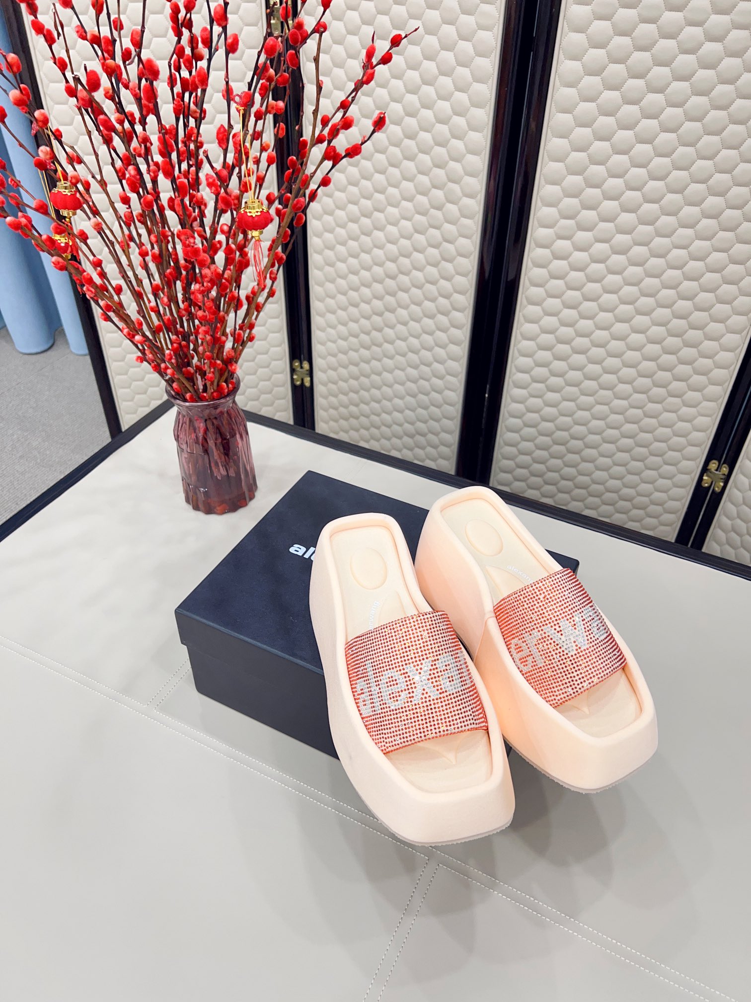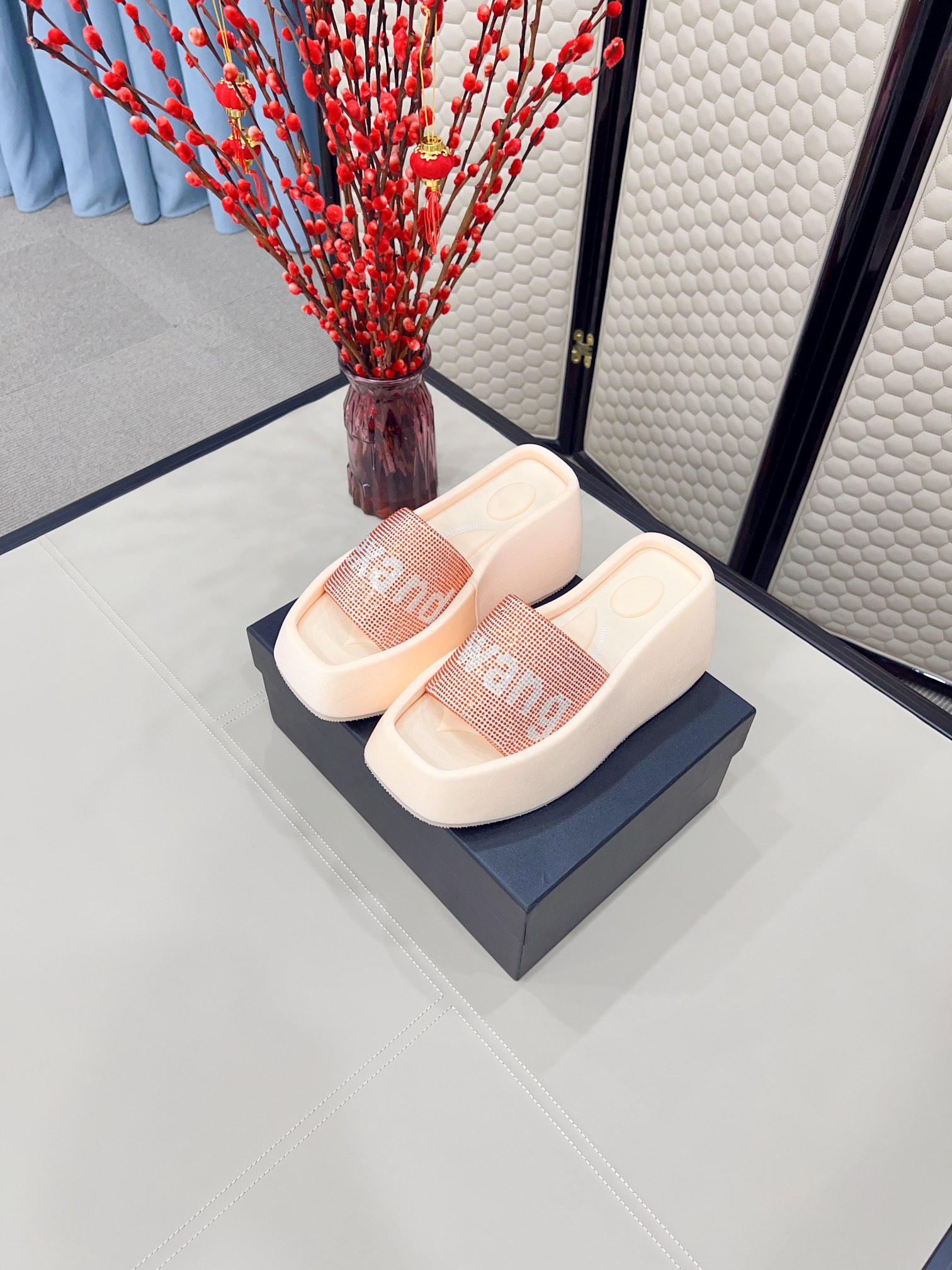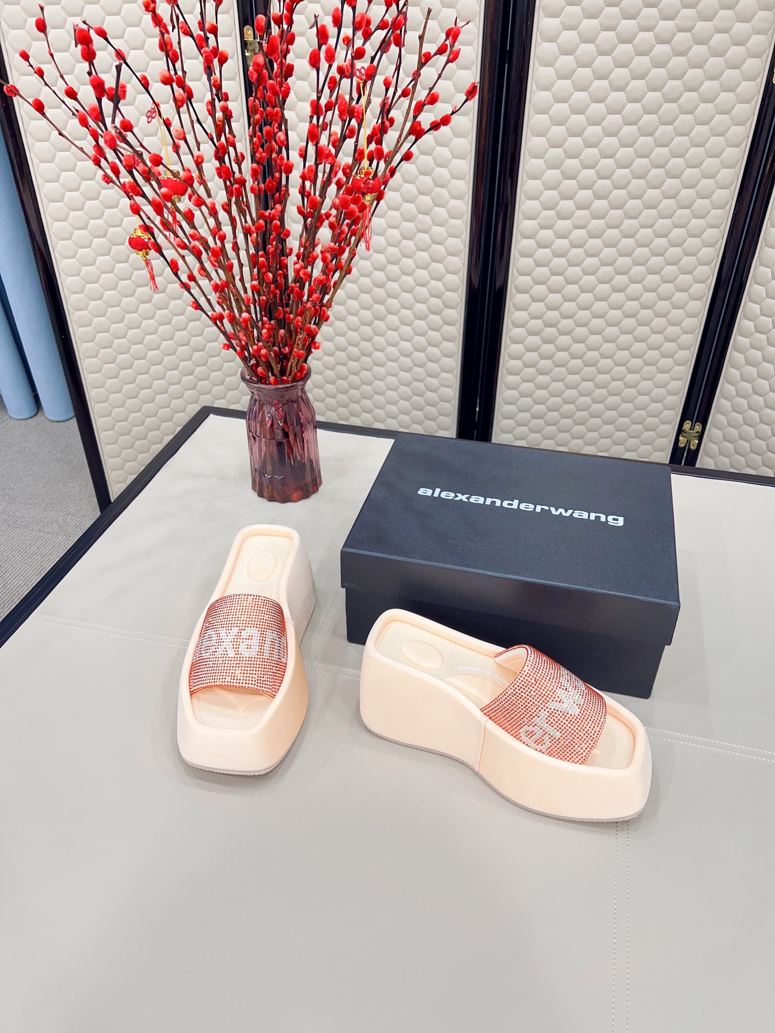 这款鞋子是AAAAA 1:1 质量 (非常棒). 使用了和原版一模一样的材料. 商标部分也保持了和亚历山大王/Alexander Wang一样. 图片拍摄是实物鞋子拍摄, 您所收到的实物保证和我们图片一模一样.