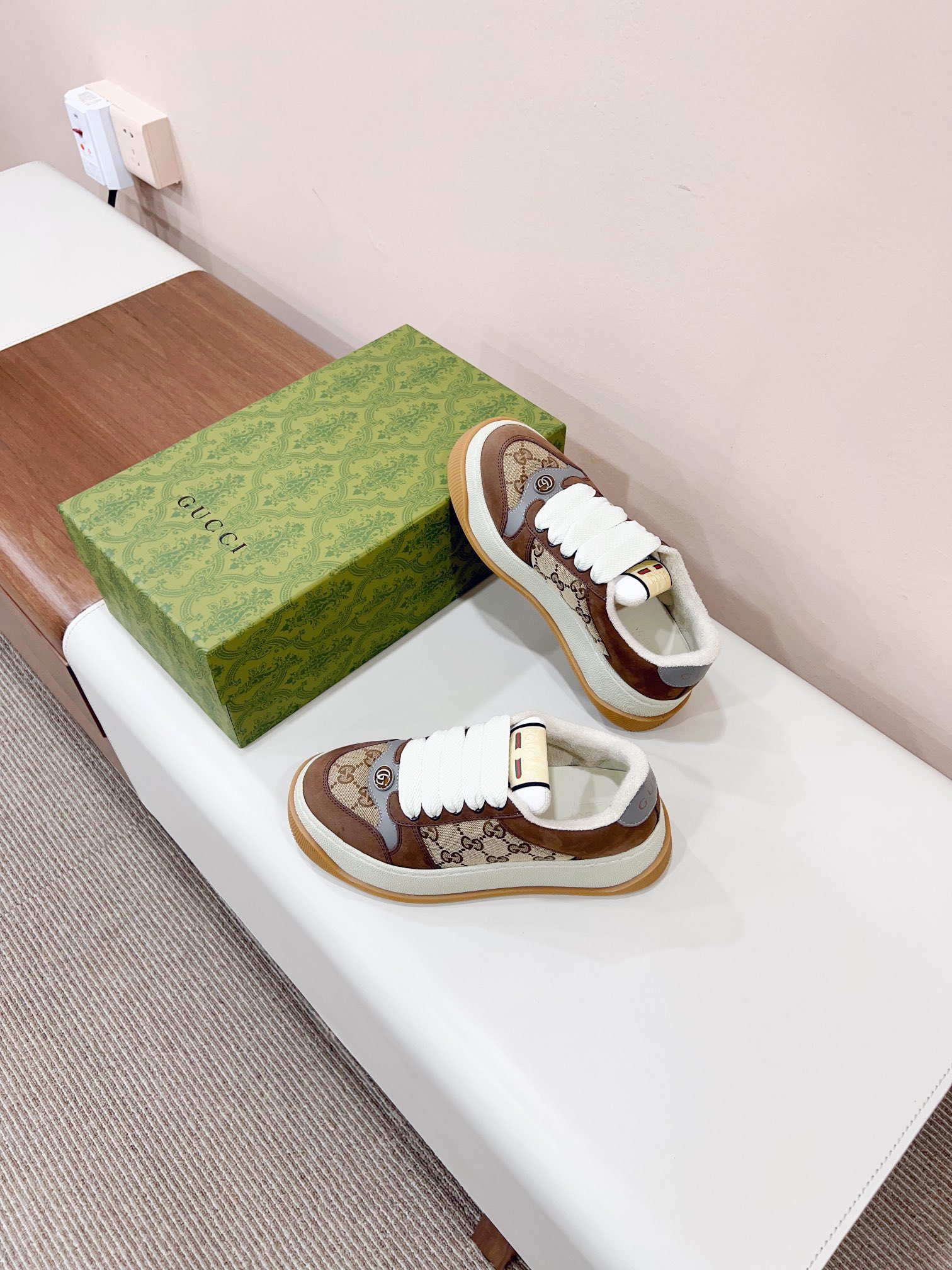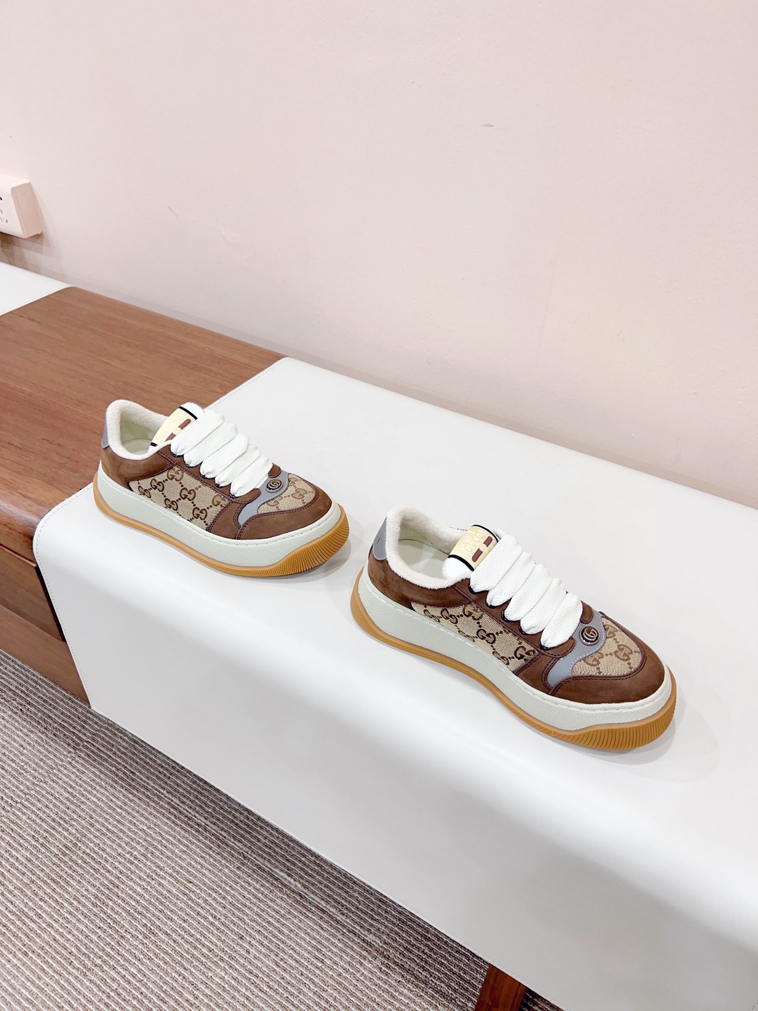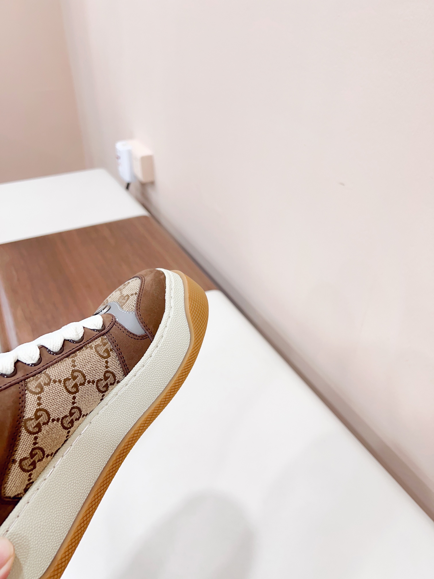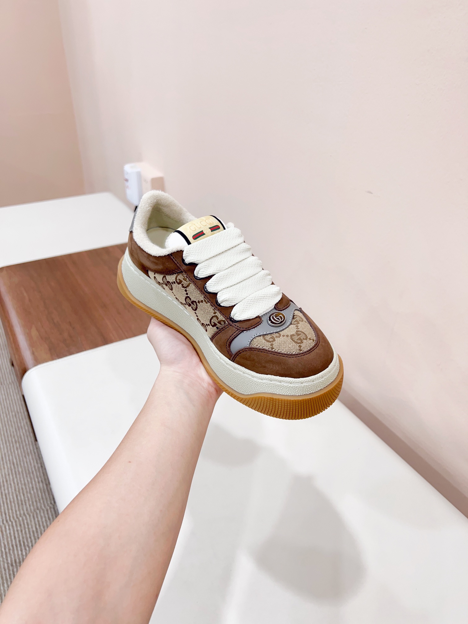 这款鞋子是AAAAA 1:1 质量 (非常棒). 使用了和原版一模一样的材料. 商标部分也保持了和古奇/Gucci一样. 图片拍摄是实物鞋子拍摄, 您所收到的实物保证和我们图片一模一样.