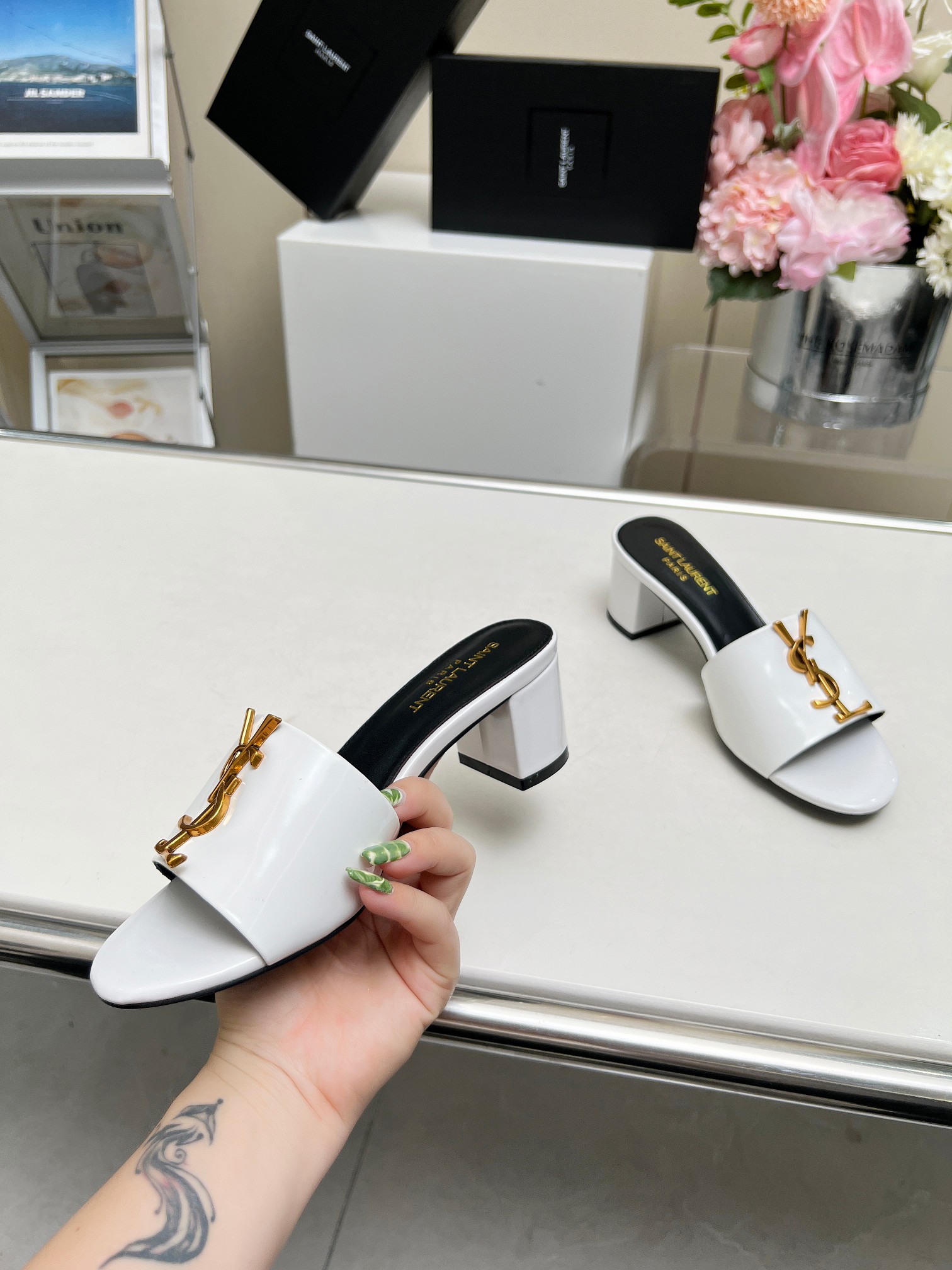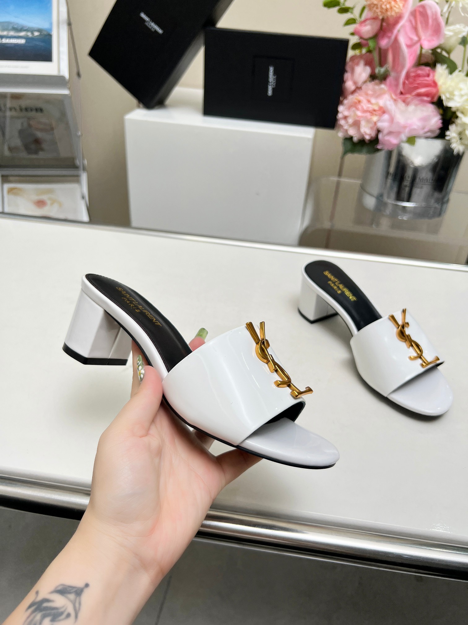 这款鞋子是AAAAA 1:1 质量 (非常棒). 使用了和原版一模一样的材料. 商标部分也保持了和圣罗兰/Saint Laurent一样. 图片拍摄是实物鞋子拍摄, 您所收到的实物保证和我们图片一模一样.