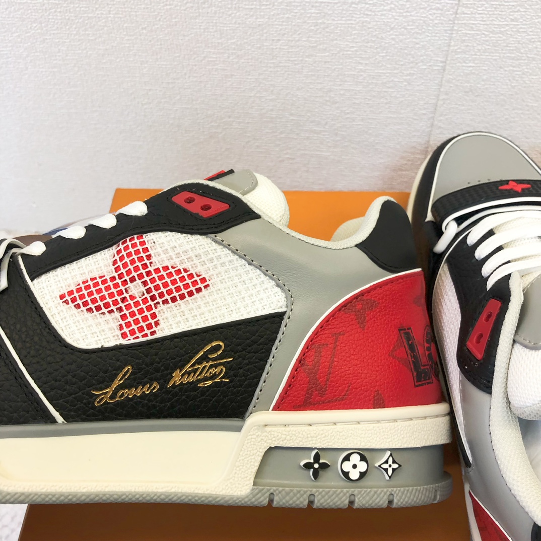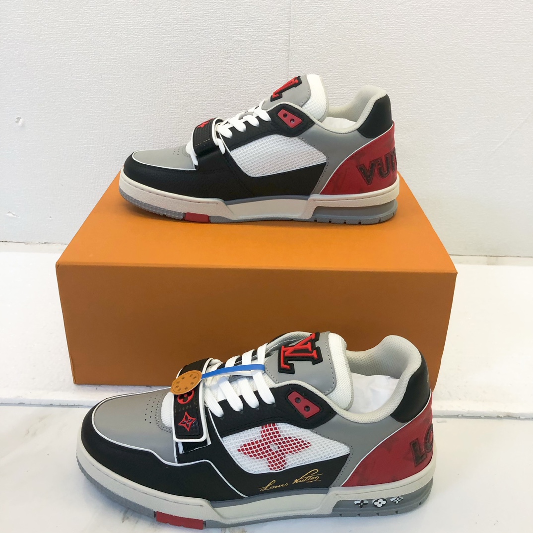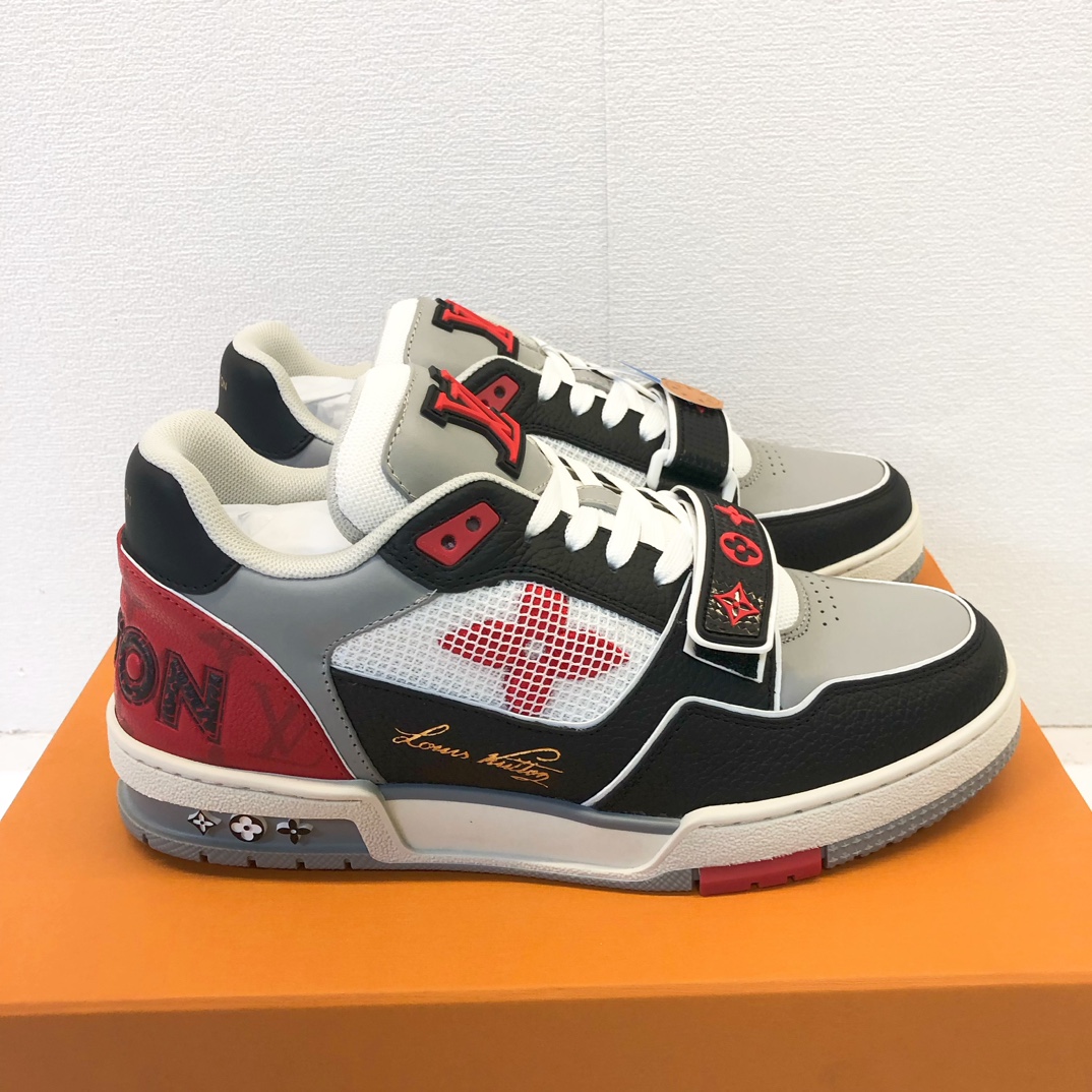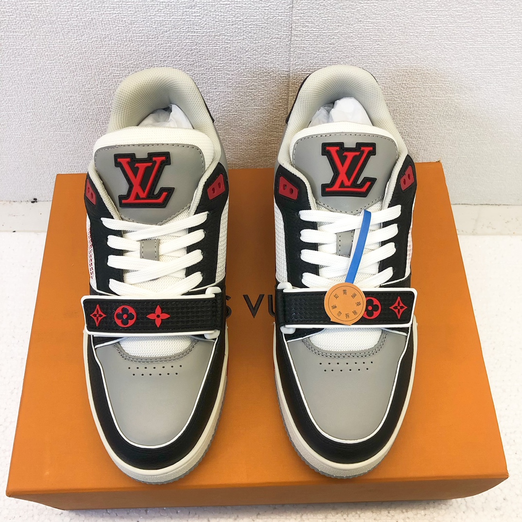 这款鞋子是AAAAA 1:1 质量 (非常棒). 使用了和原版一模一样的材料. 商标部分也保持了和路易威登/Louis Vuitton一样. 图片拍摄是实物鞋子拍摄, 您所收到的实物保证和我们图片一模一样.
