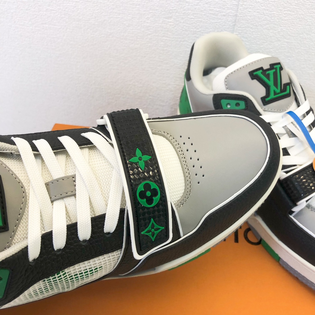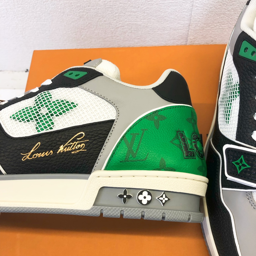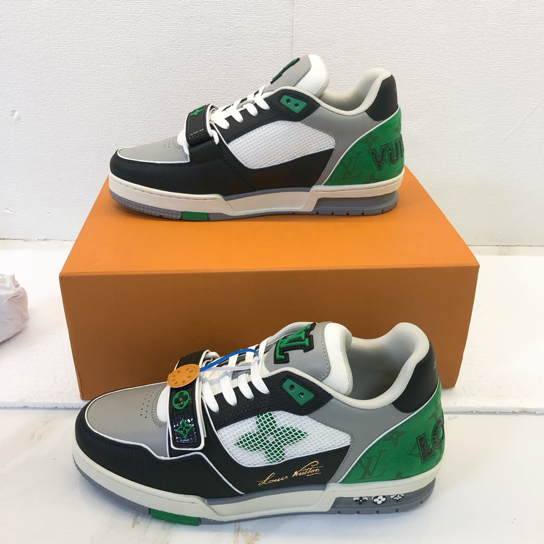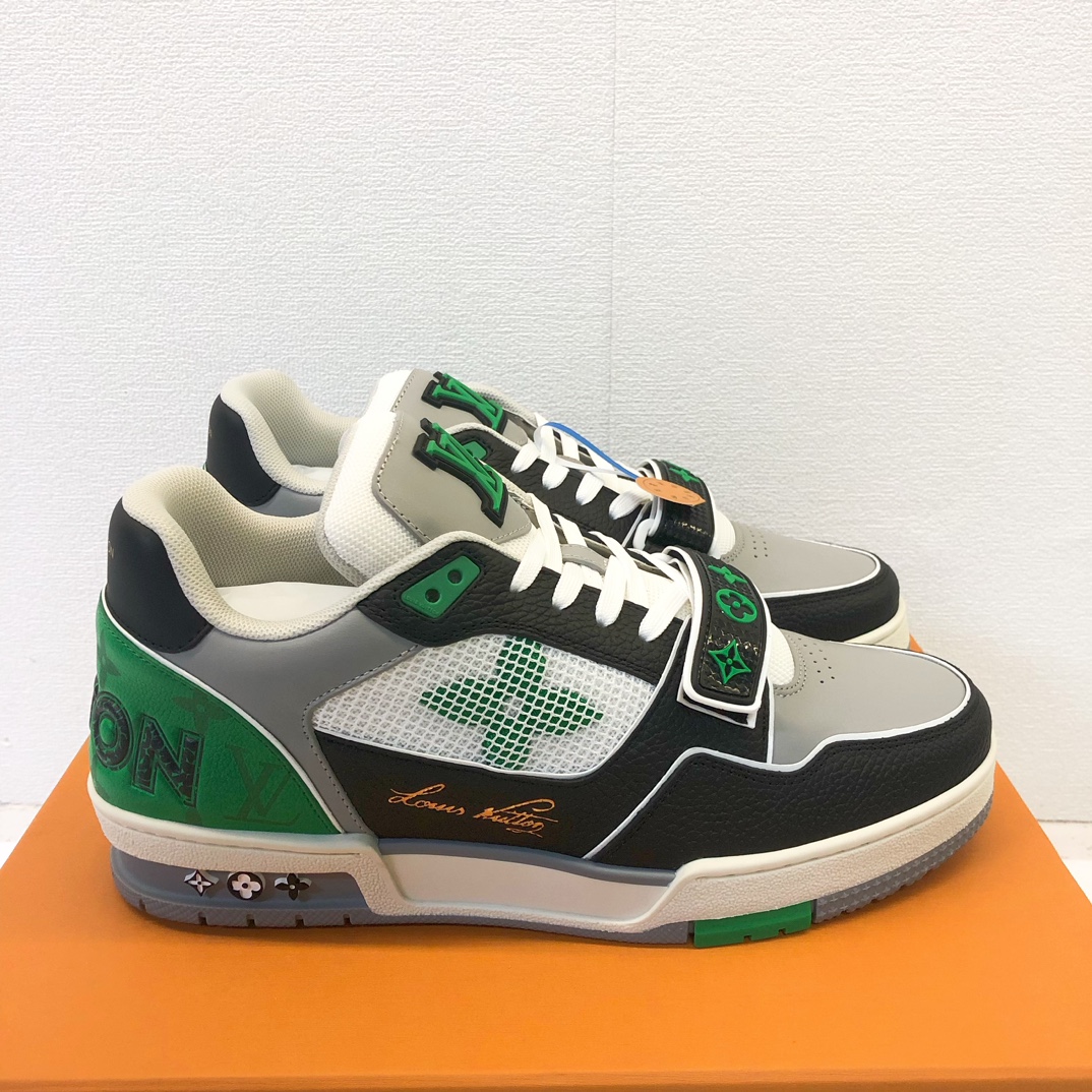 这款鞋子是AAAAA 1:1 质量 (非常棒). 使用了和原版一模一样的材料. 商标部分也保持了和路易威登/Louis Vuitton一样. 图片拍摄是实物鞋子拍摄, 您所收到的实物保证和我们图片一模一样.