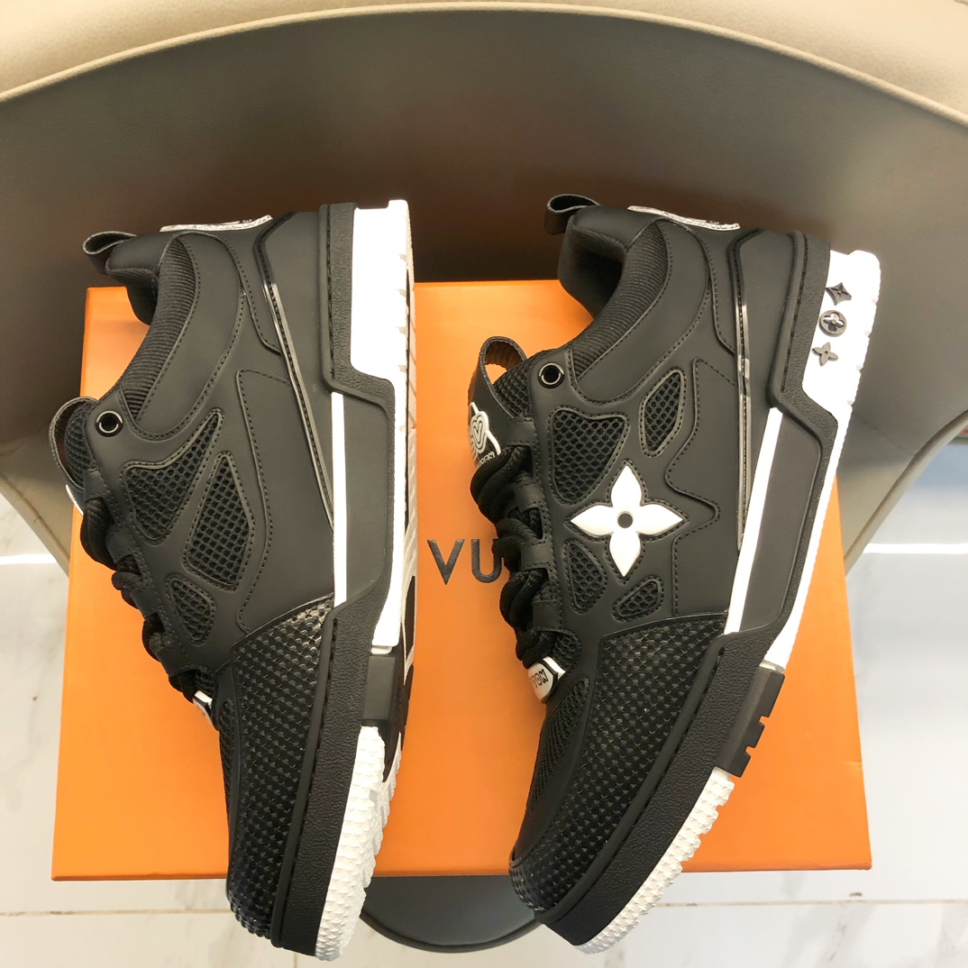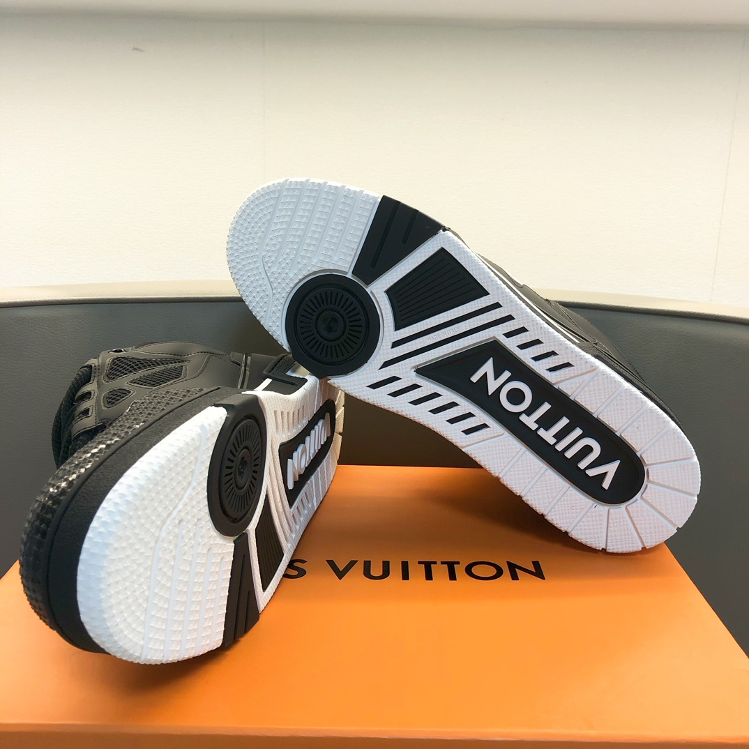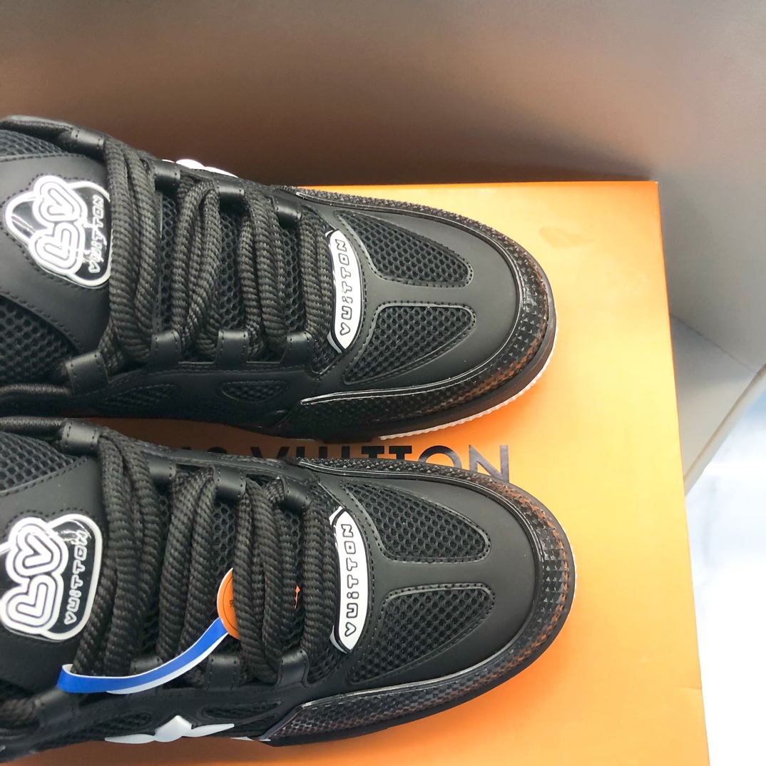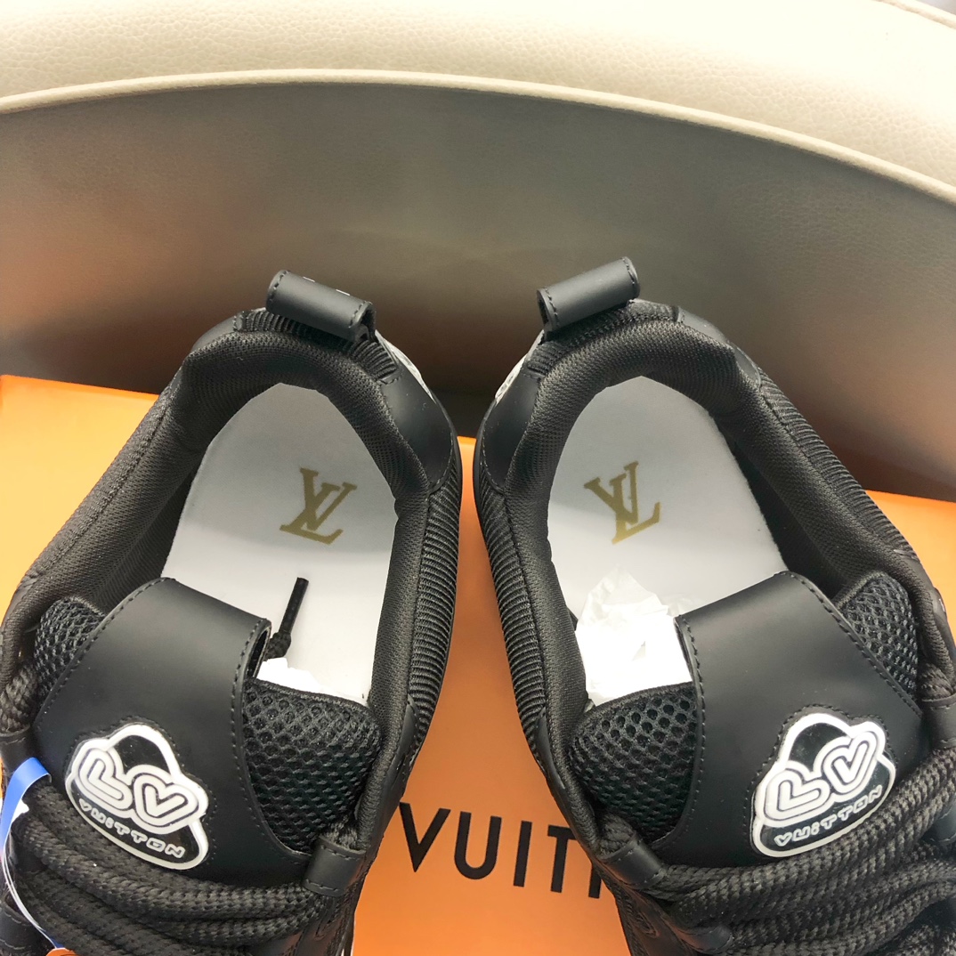 这款鞋子是AAAAA 1:1 质量 (非常棒). 使用了和原版一模一样的材料. 商标部分也保持了和路易威登/Louis Vuitton一样. 图片拍摄是实物鞋子拍摄, 您所收到的实物保证和我们图片一模一样.