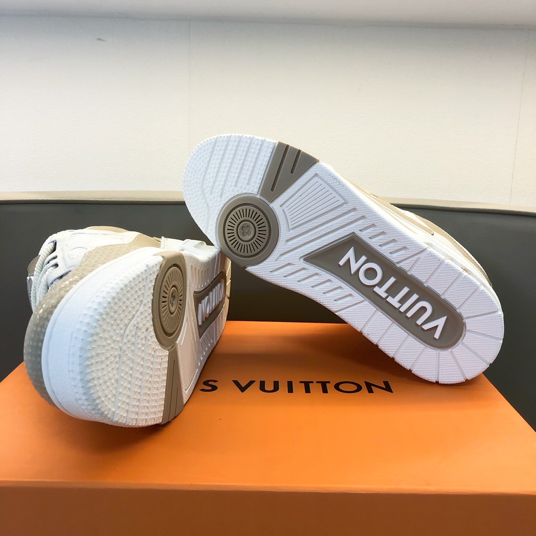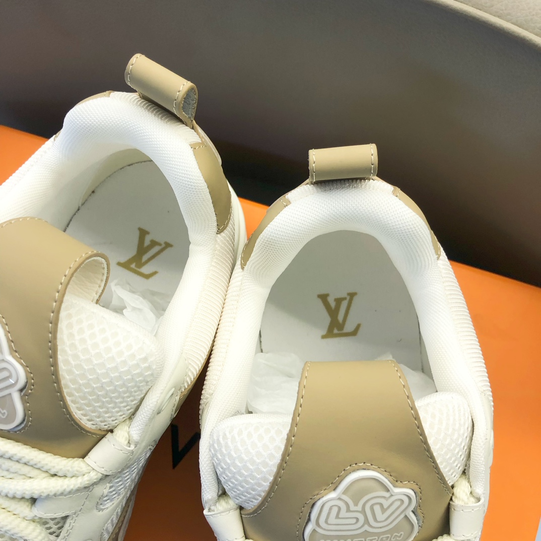 这款鞋子是AAAAA 1:1 质量 (非常棒). 使用了和原版一模一样的材料. 商标部分也保持了和路易威登/Louis Vuitton一样. 图片拍摄是实物鞋子拍摄, 您所收到的实物保证和我们图片一模一样.