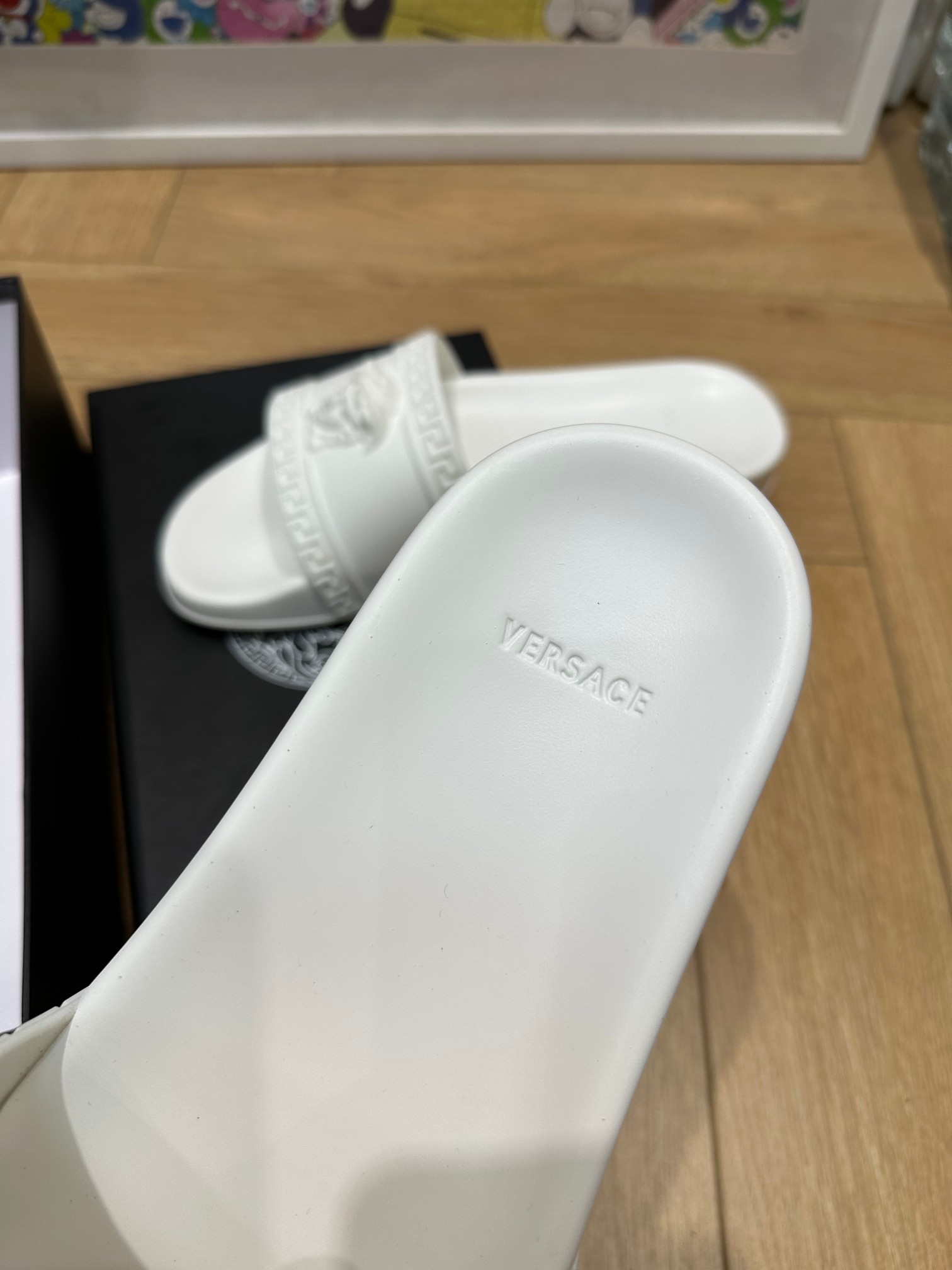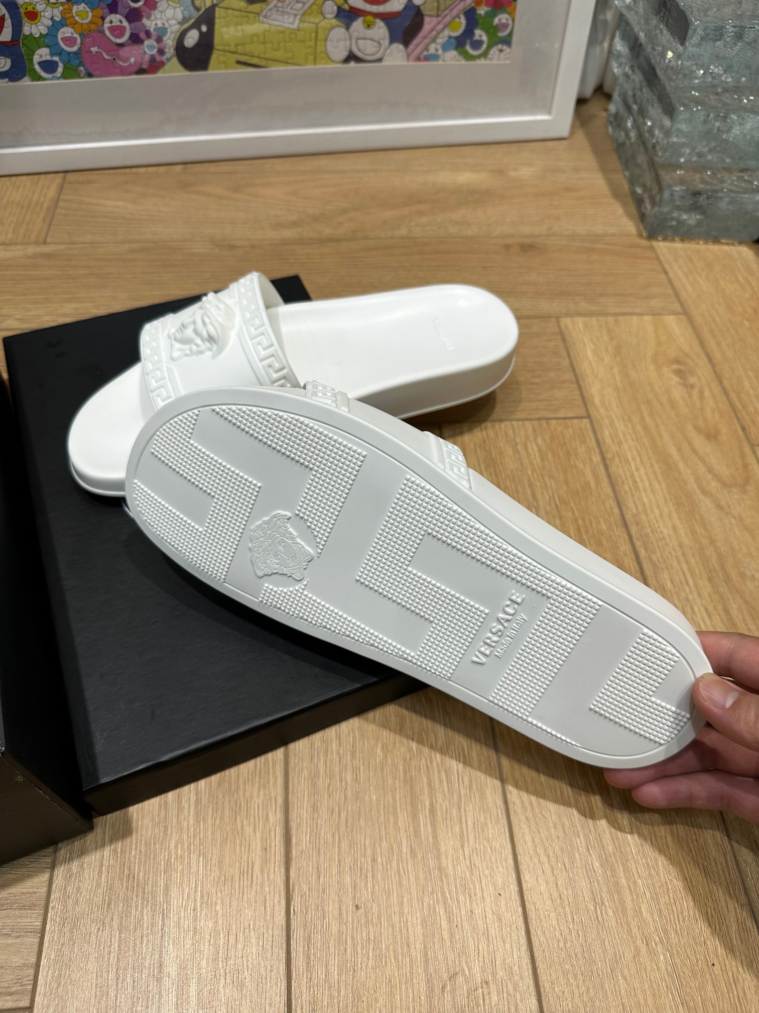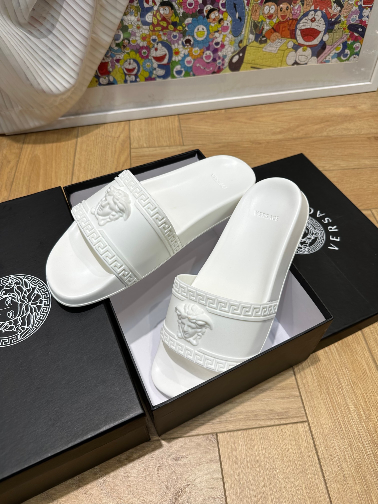 这款鞋子是AAAAA 1:1 质量 (非常棒). 使用了和原版一模一样的材料. 商标部分也保持了和范思哲/Versace一样. 图片拍摄是实物鞋子拍摄, 您所收到的实物保证和我们图片一模一样.