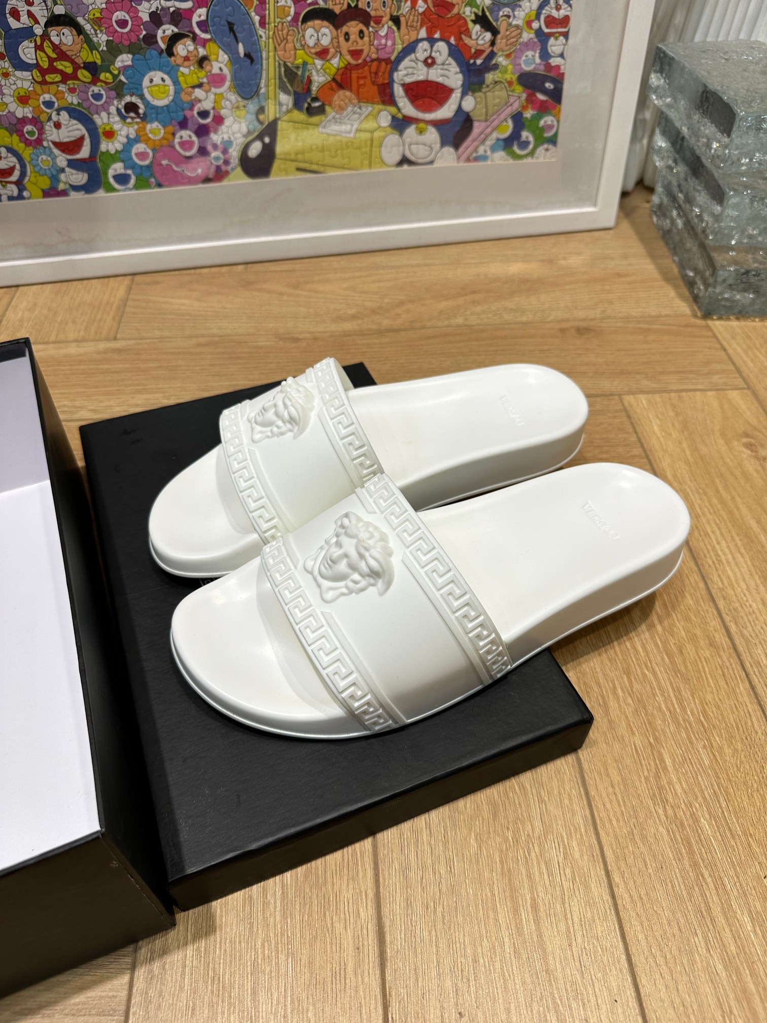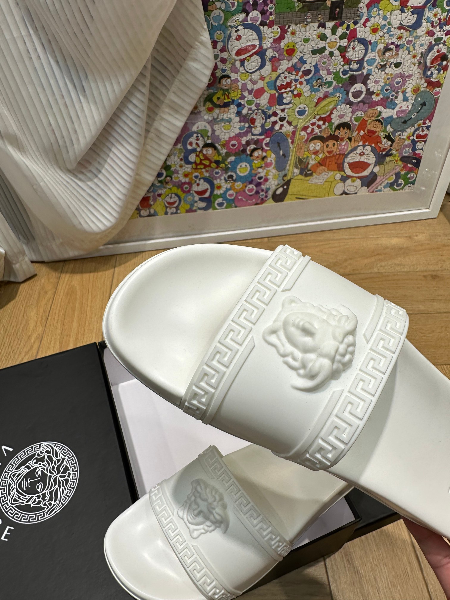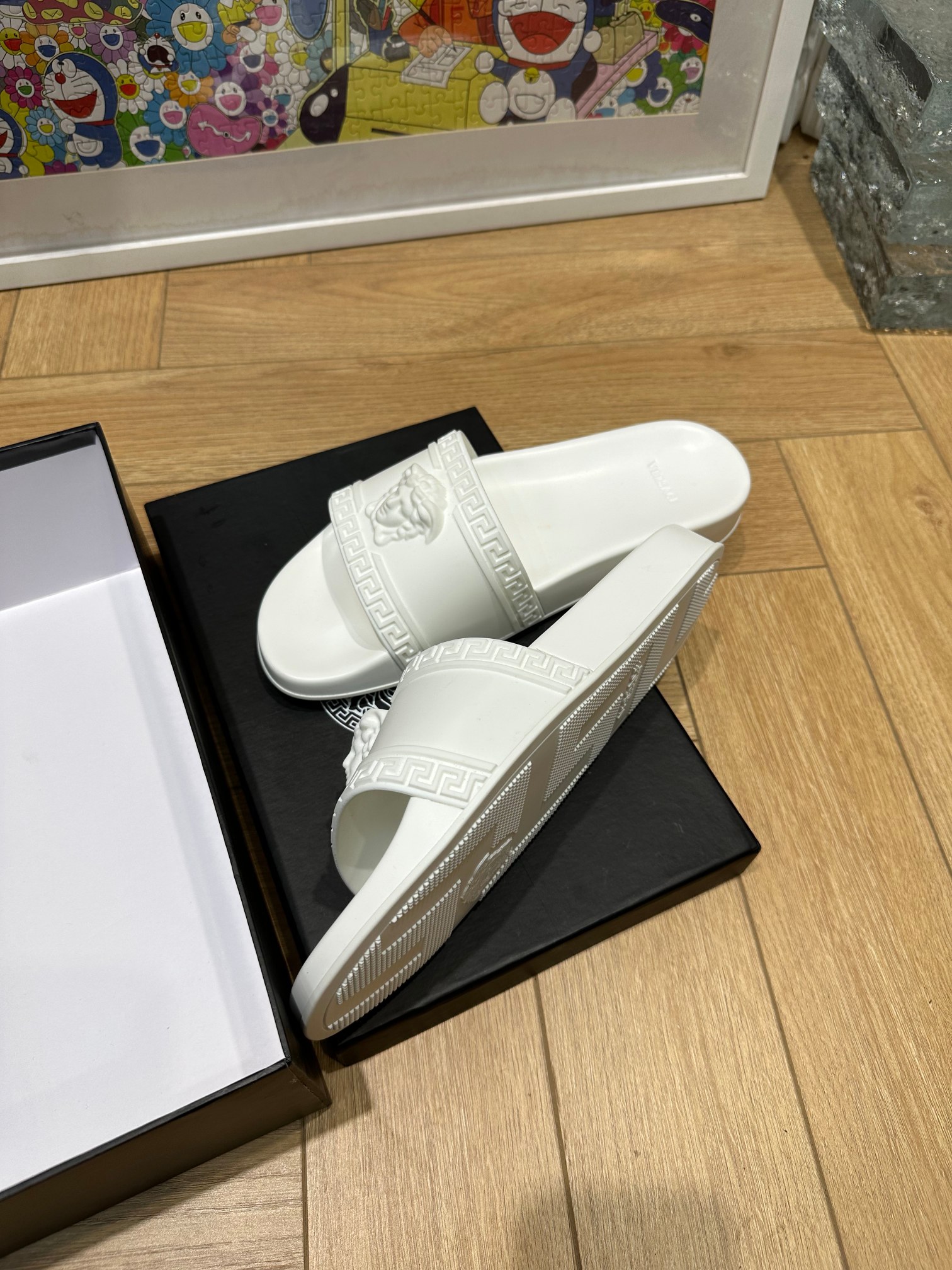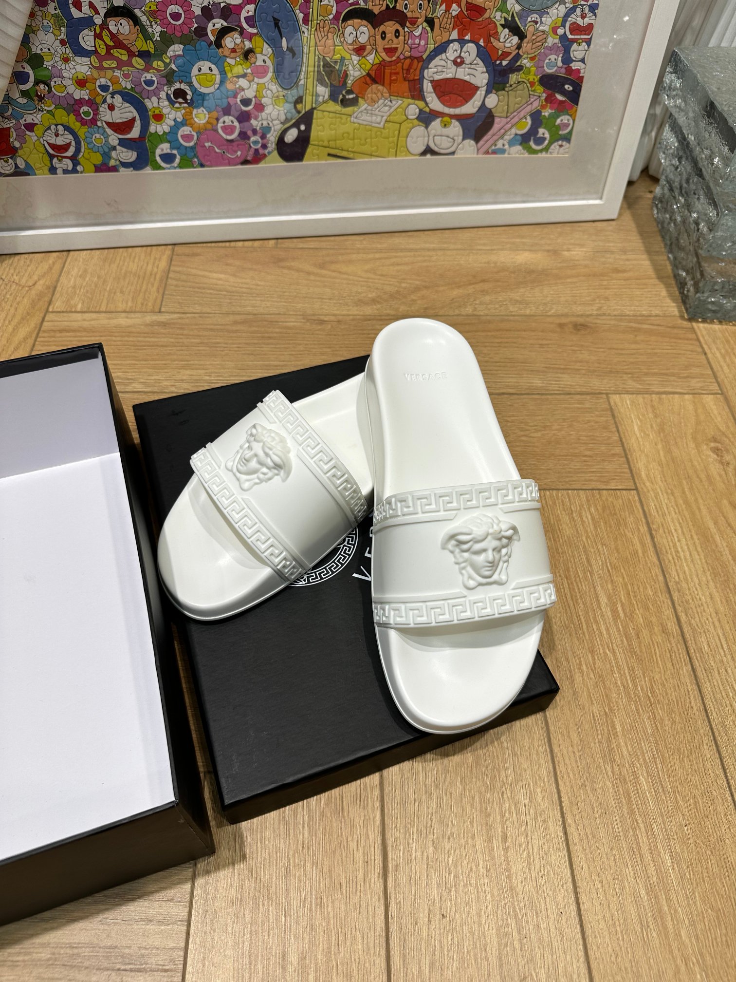 这款鞋子是AAAAA 1:1 质量 (非常棒). 使用了和原版一模一样的材料. 商标部分也保持了和范思哲/Versace一样. 图片拍摄是实物鞋子拍摄, 您所收到的实物保证和我们图片一模一样.