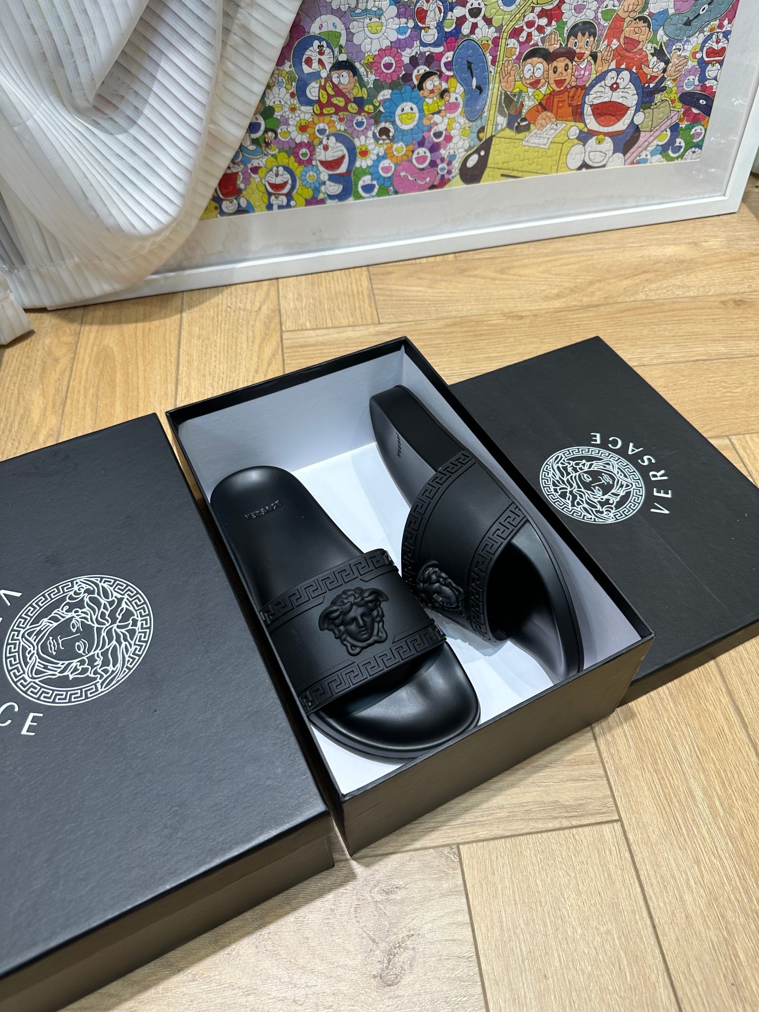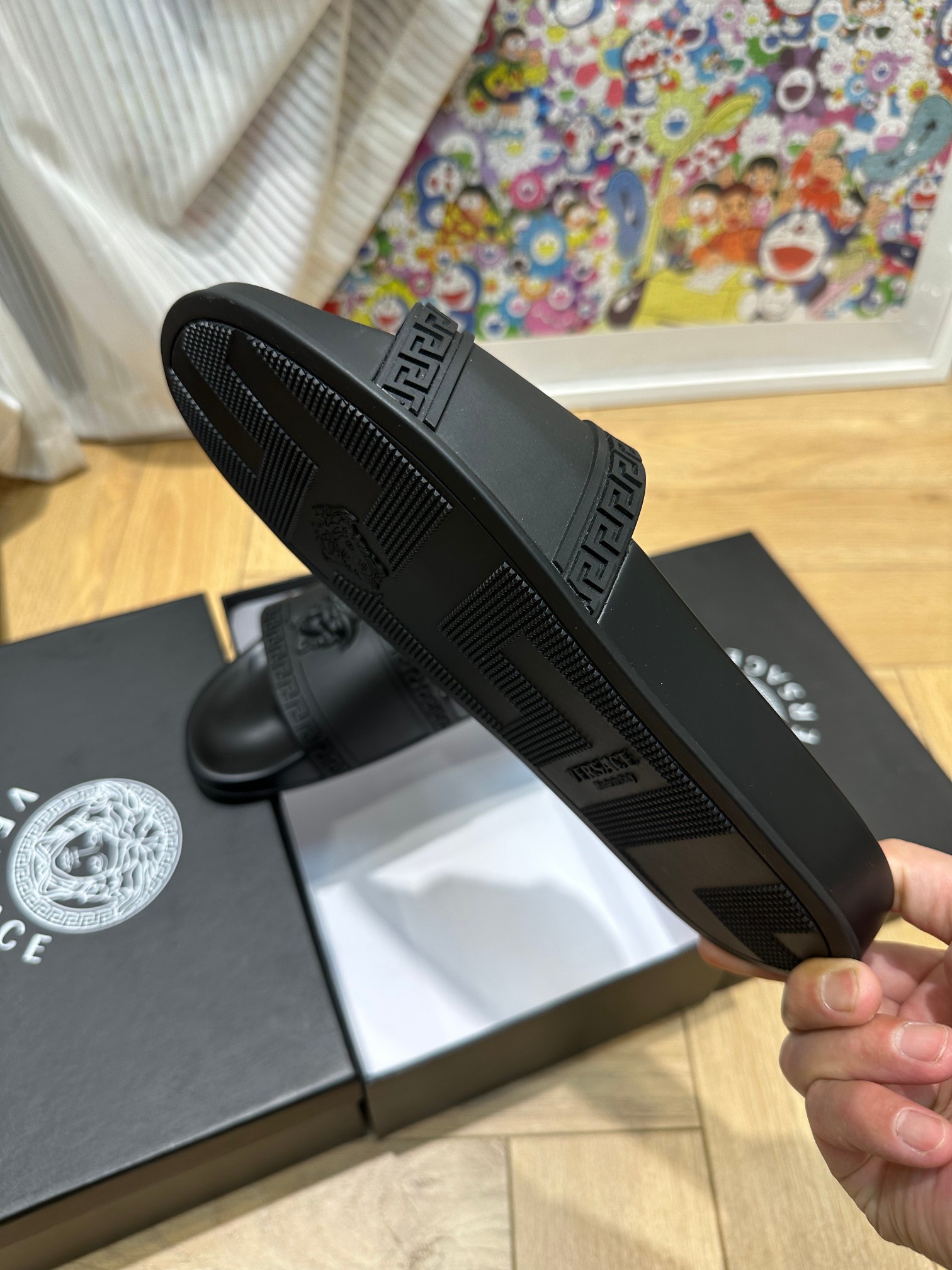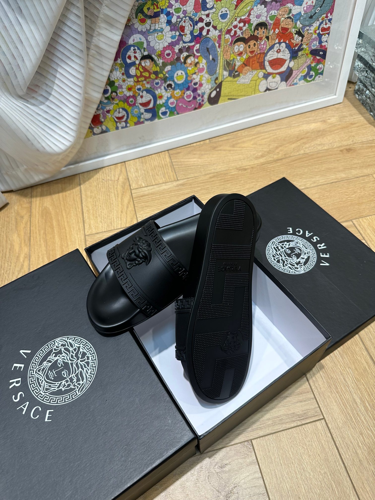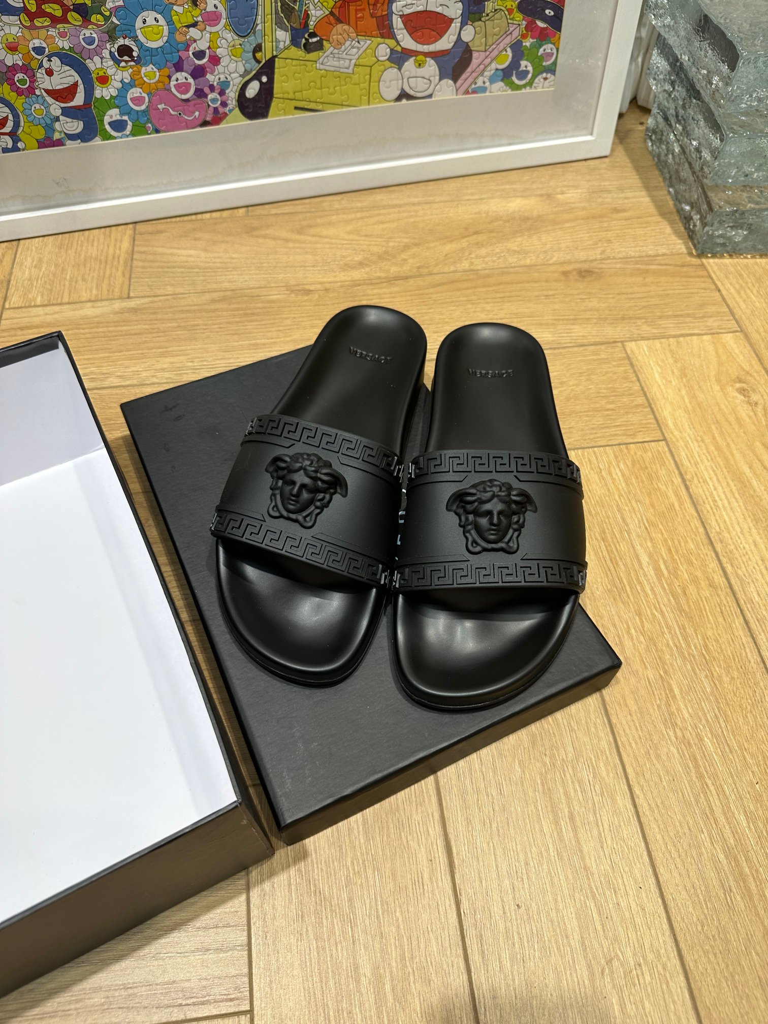 这款鞋子是AAAAA 1:1 质量 (非常棒). 使用了和原版一模一样的材料. 商标部分也保持了和范思哲/Versace一样. 图片拍摄是实物鞋子拍摄, 您所收到的实物保证和我们图片一模一样.