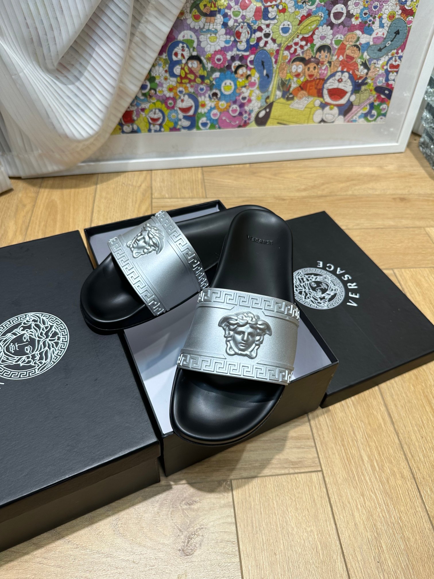 这款鞋子是AAAAA 1:1 质量 (非常棒). 使用了和原版一模一样的材料. 商标部分也保持了和范思哲/Versace一样. 图片拍摄是实物鞋子拍摄, 您所收到的实物保证和我们图片一模一样.
