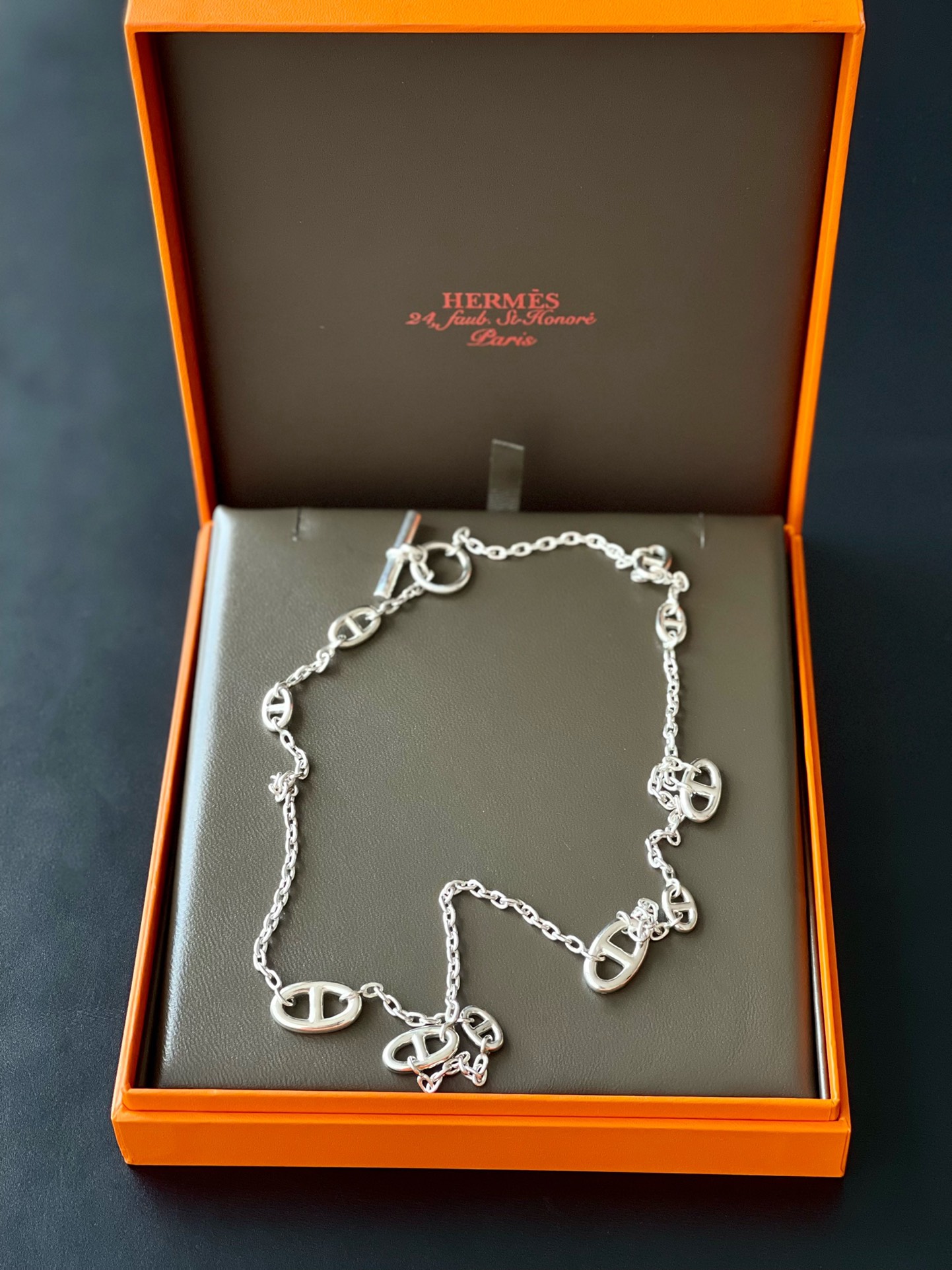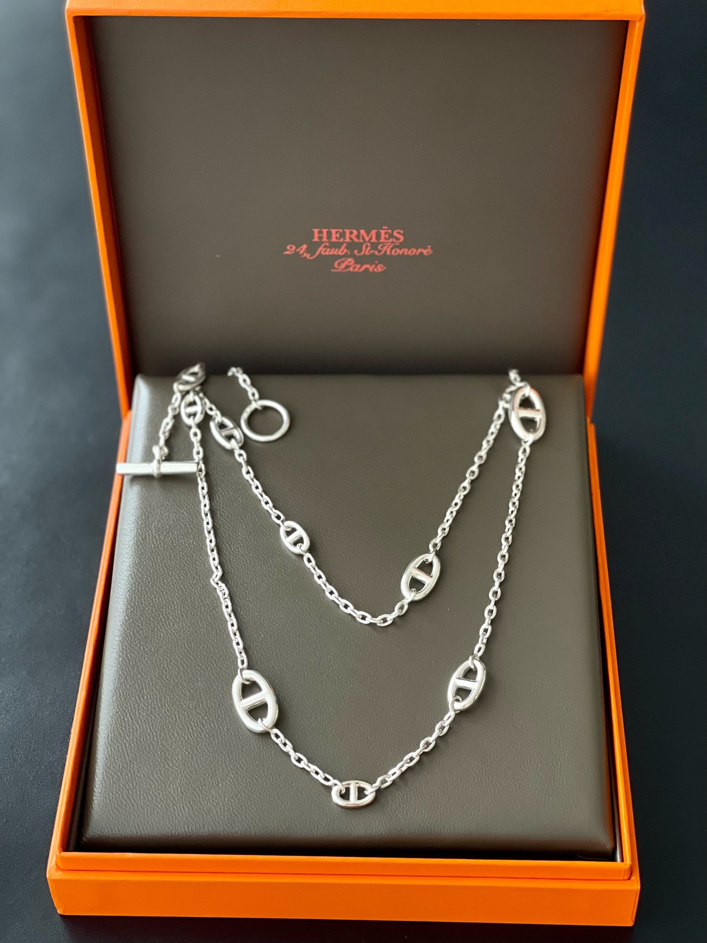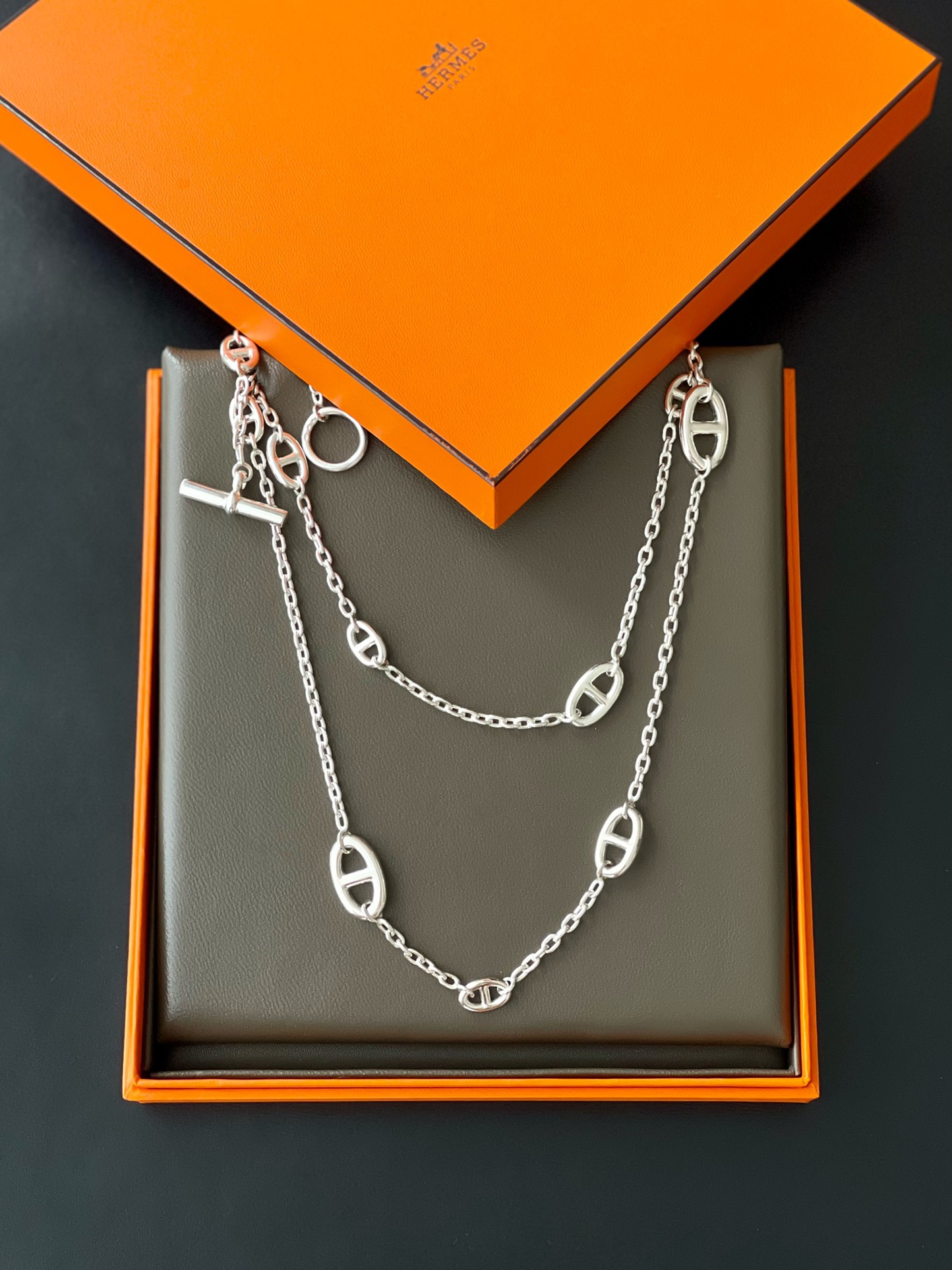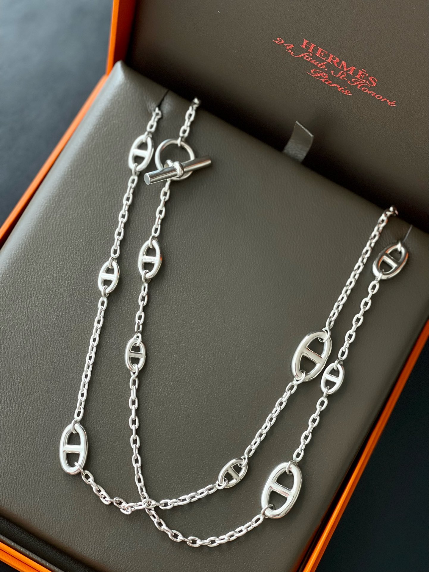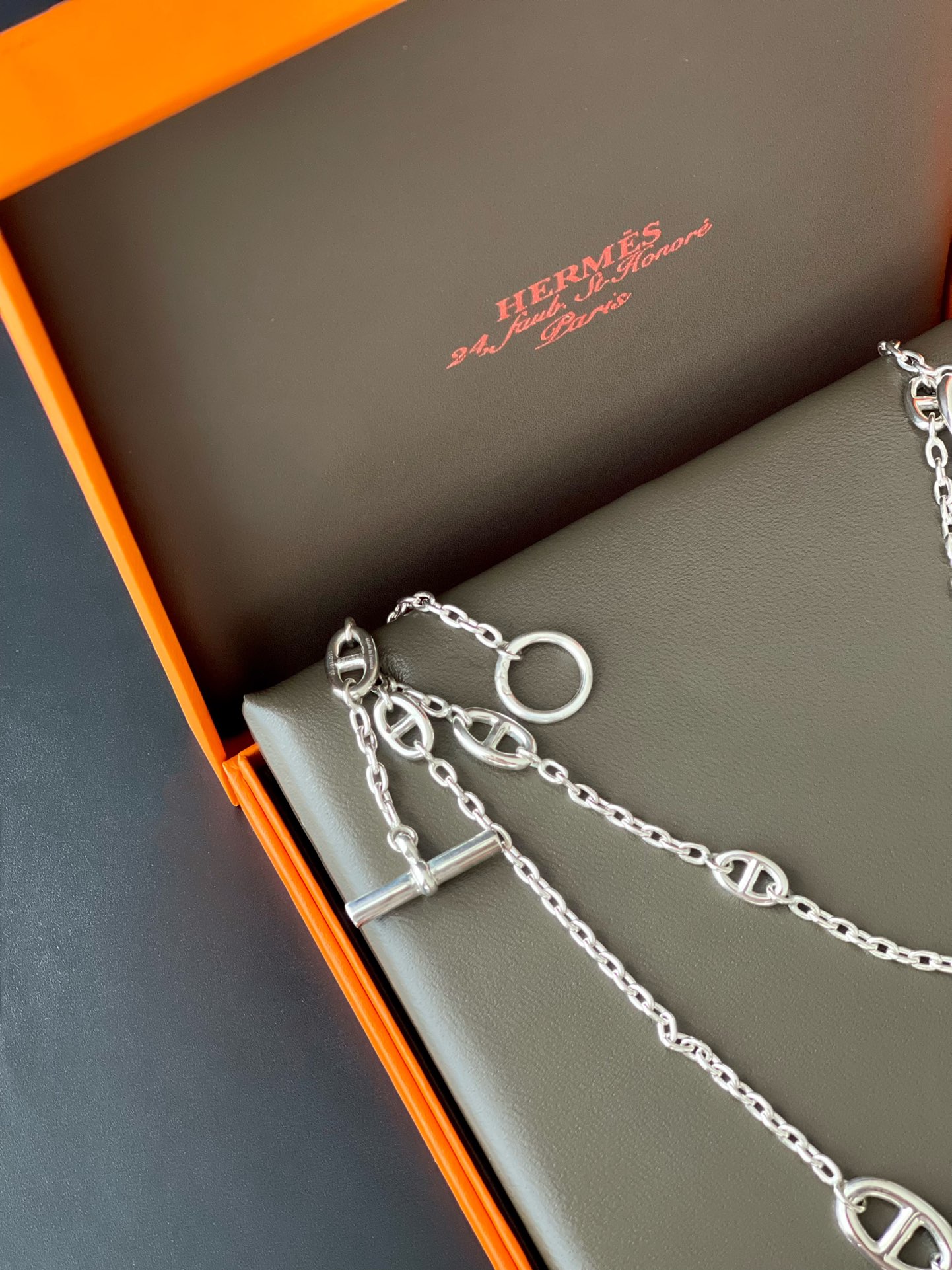 这款首饰是AAAAA 1:1 质量 (非常棒). 使用了和原版一模一样的材料. 商标部分也保持了和爱马仕/Hermes一样. 图片拍摄是实物首饰拍摄, 您所收到的实物保证和我们图片一模一样.