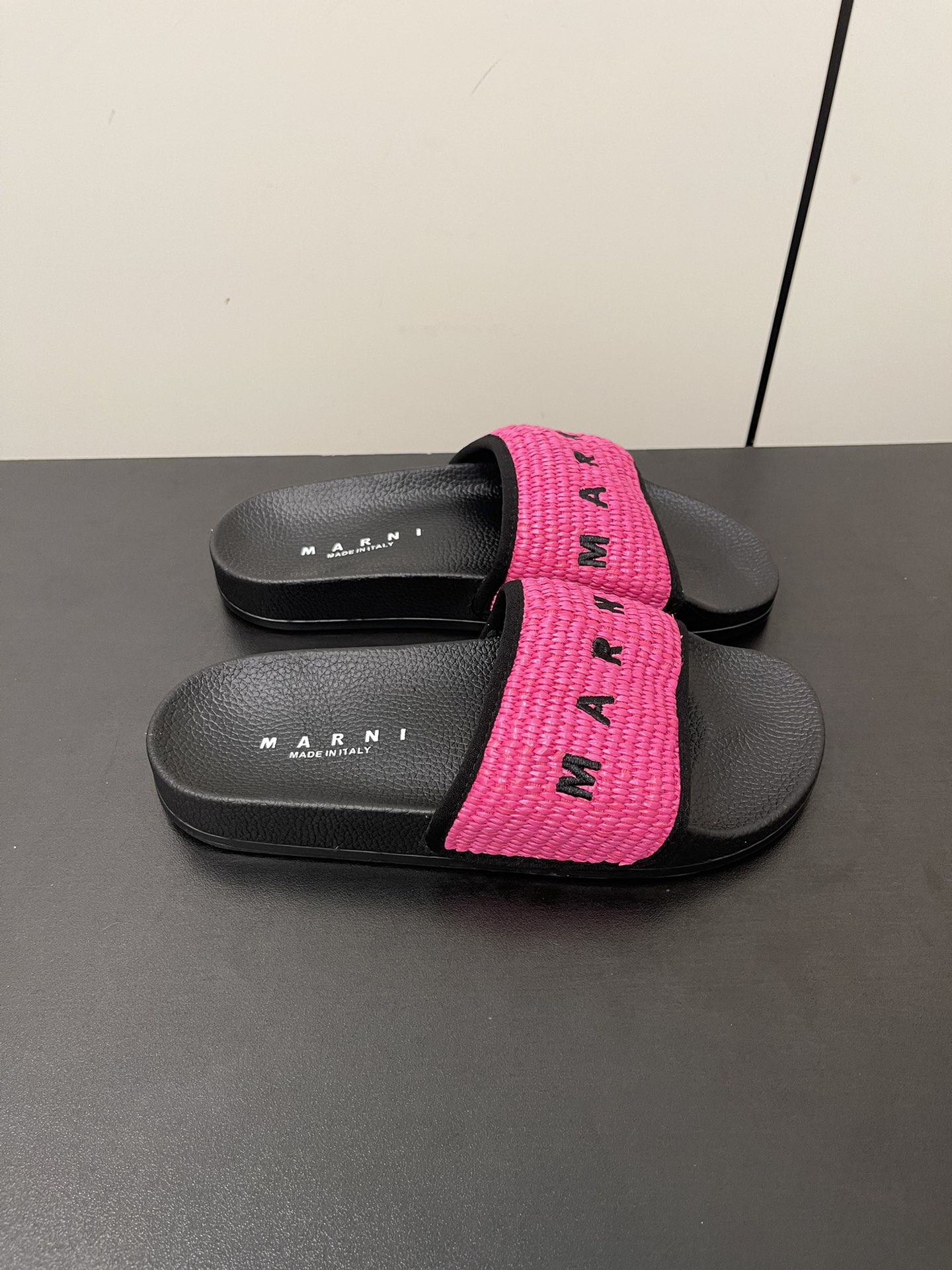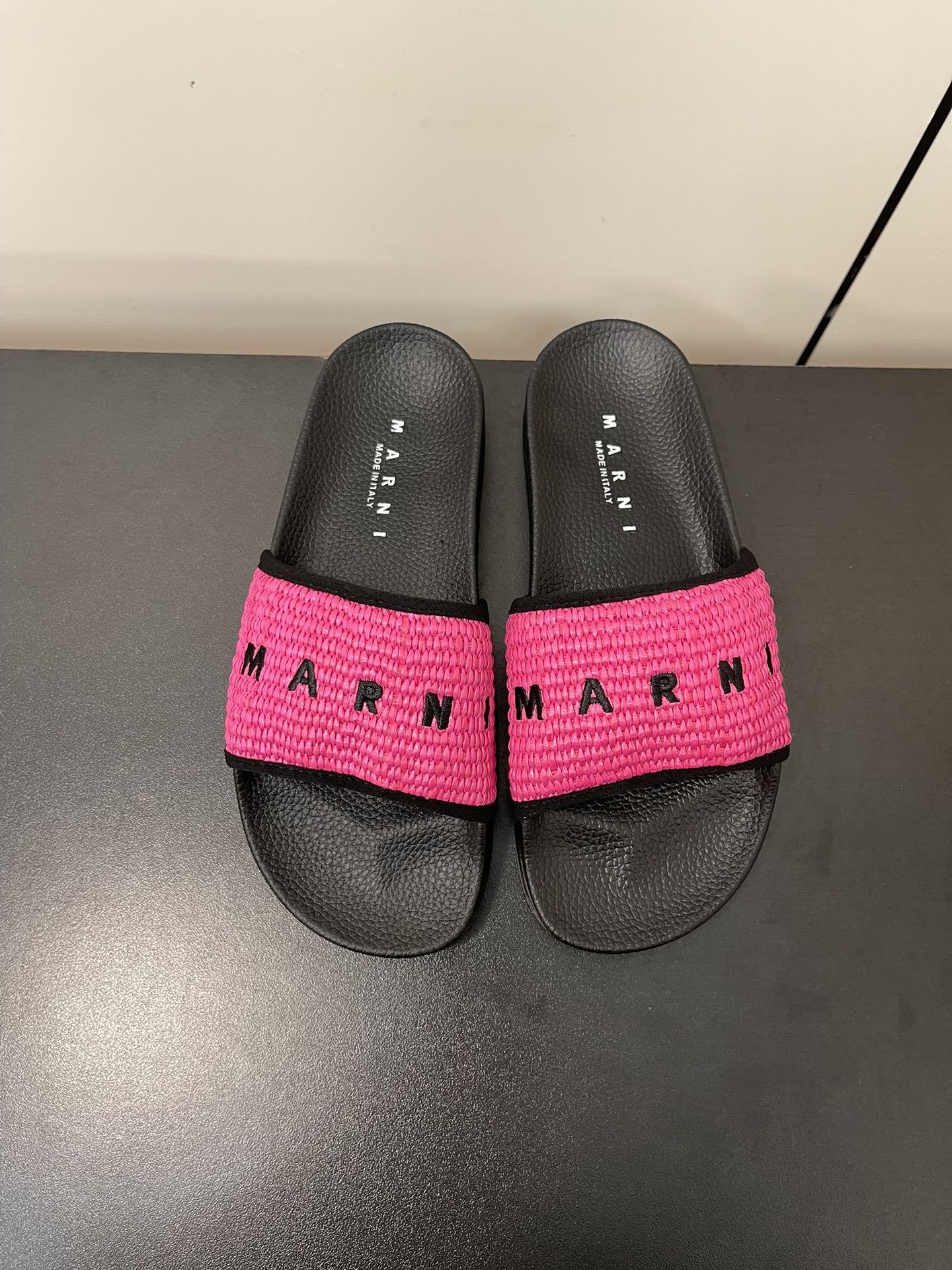 这款鞋子是AAAAA 1:1 质量 (非常棒). 使用了和原版一模一样的材料. 商标部分也保持了和马尔尼/Marni一样. 图片拍摄是实物鞋子拍摄, 您所收到的实物保证和我们图片一模一样.