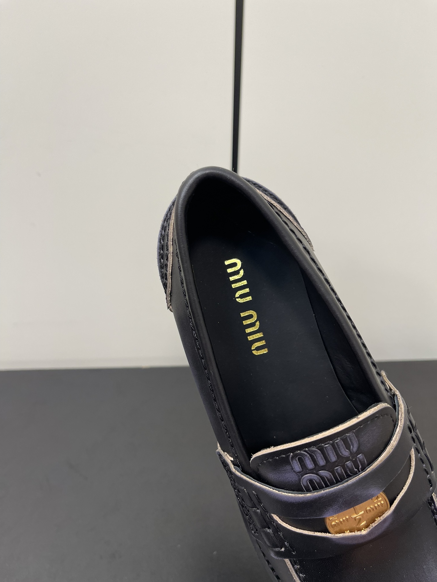 这款鞋子是AAAAA 1:1 质量 (非常棒). 使用了和原版一模一样的材料. 商标部分也保持了和缪缪/Miu Miu一样. 图片拍摄是实物鞋子拍摄, 您所收到的实物保证和我们图片一模一样.