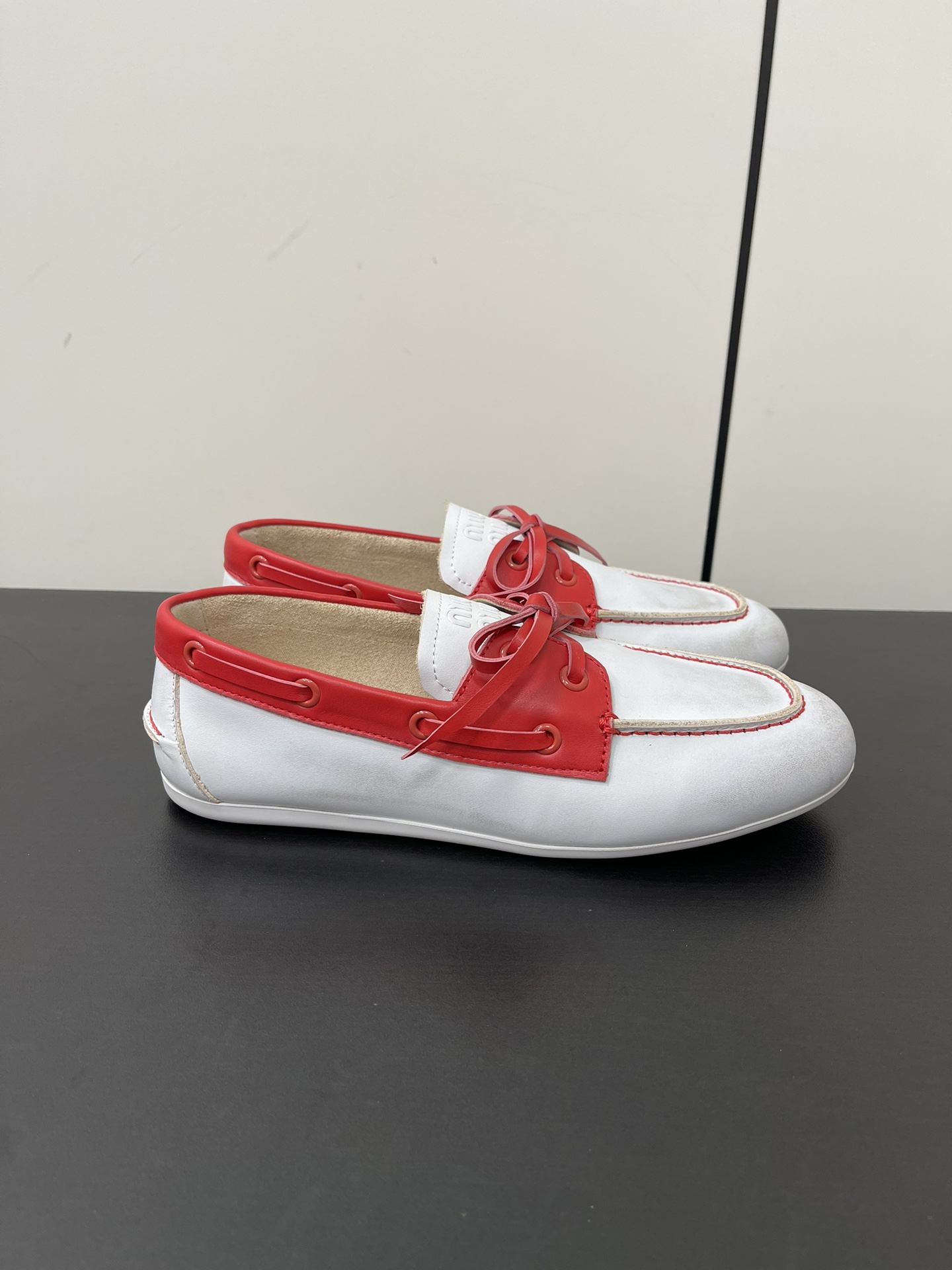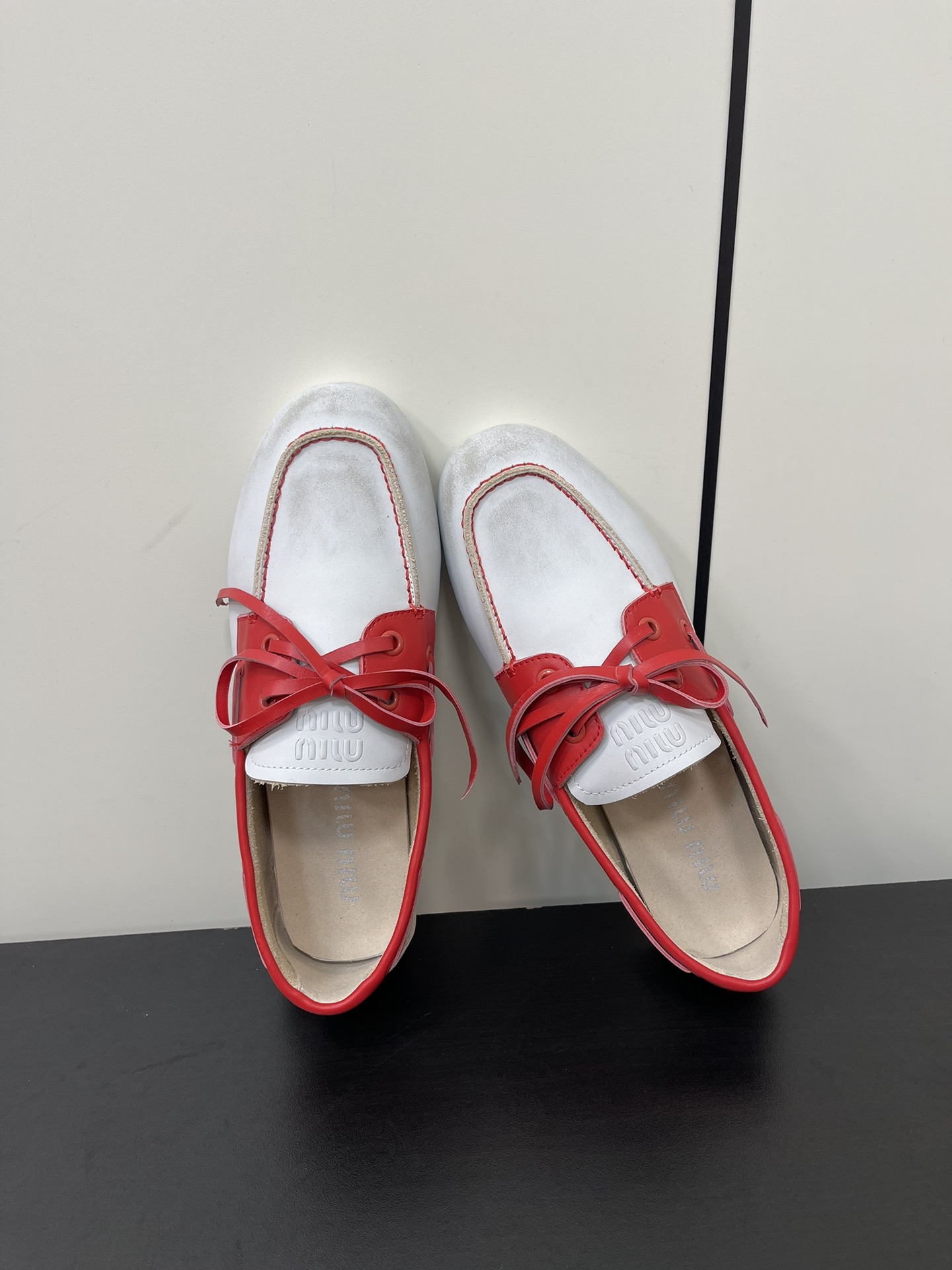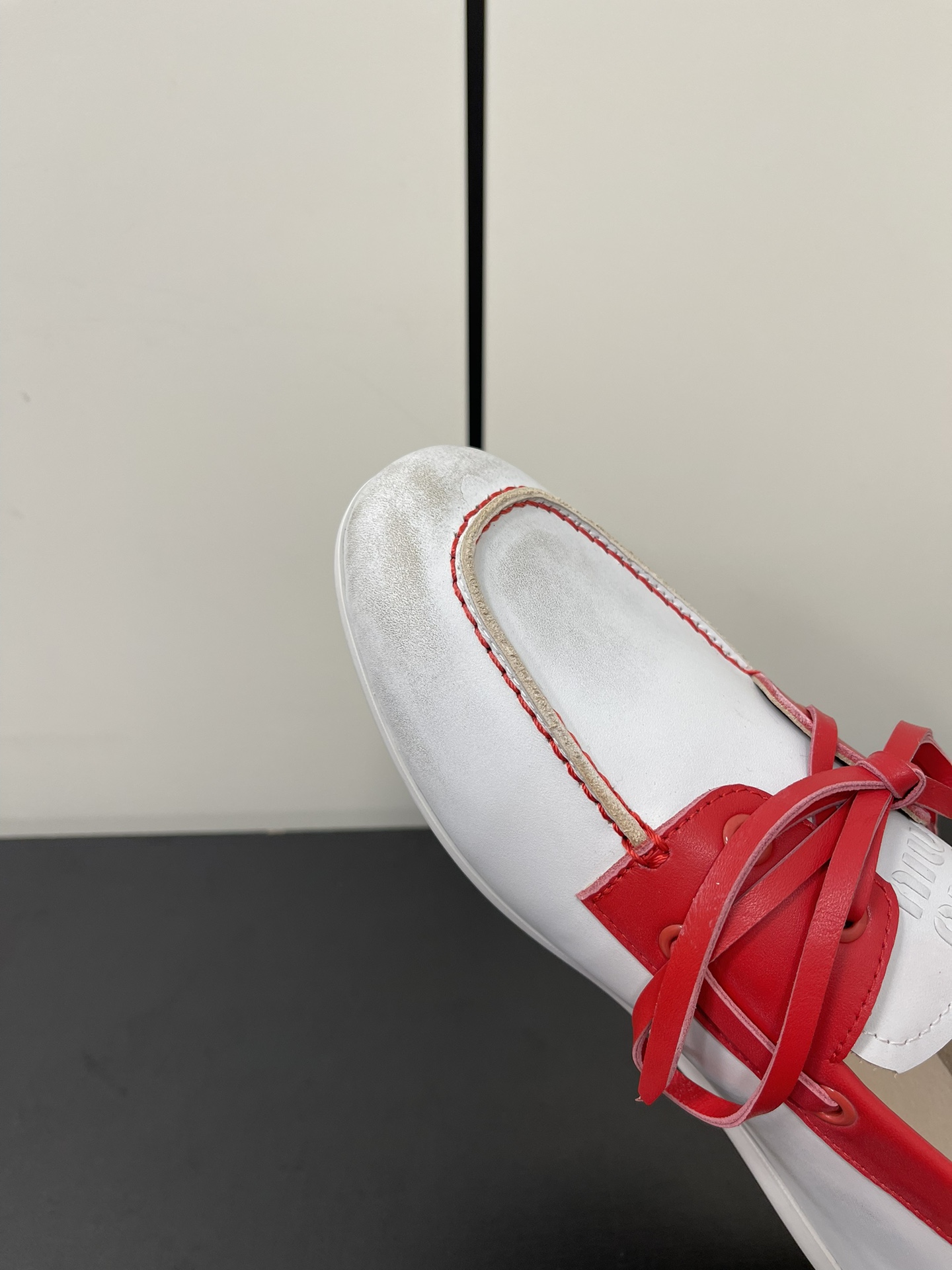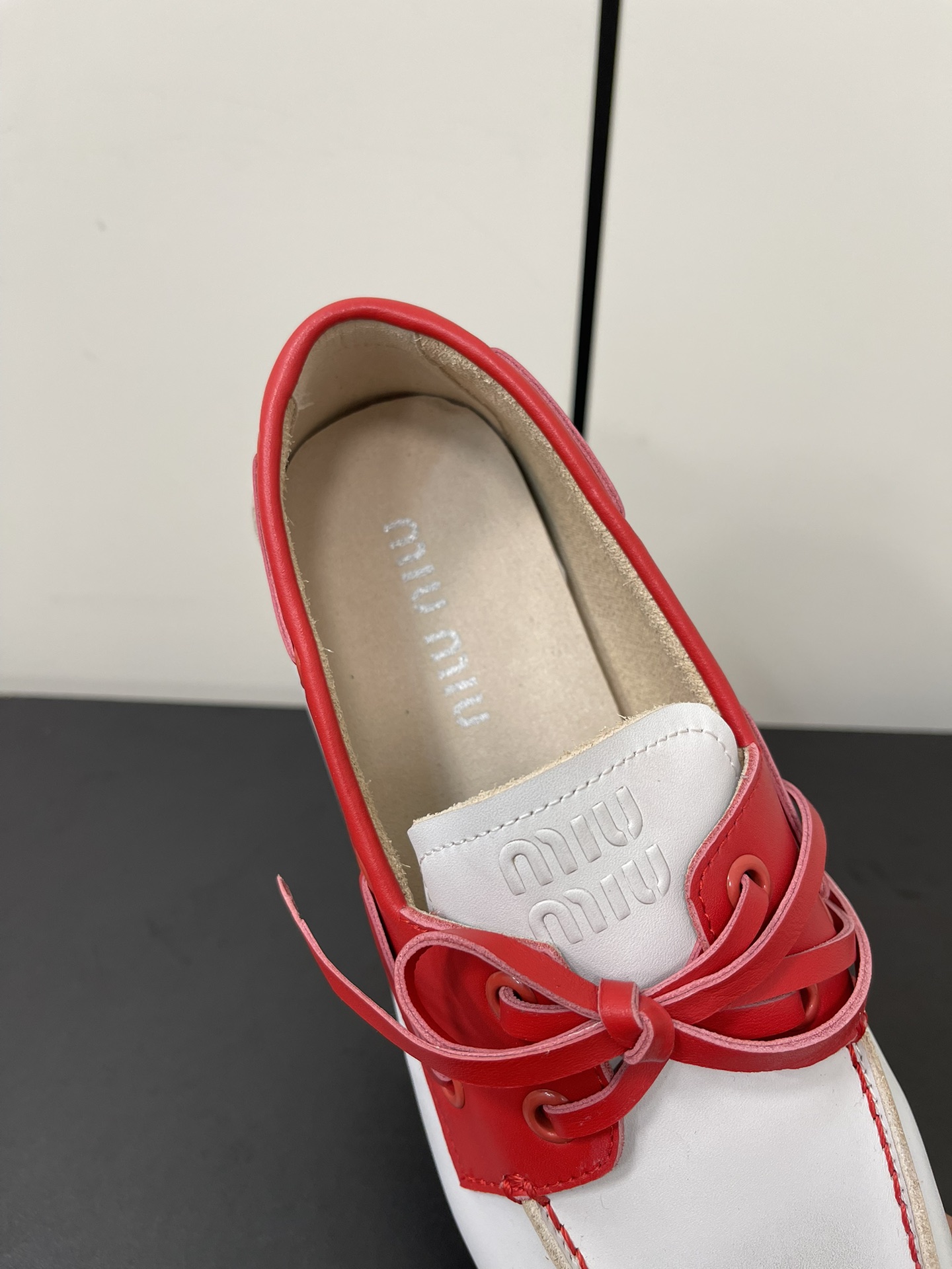 这款鞋子是AAAAA 1:1 质量 (非常棒). 使用了和原版一模一样的材料. 商标部分也保持了和缪缪/Miu Miu一样. 图片拍摄是实物鞋子拍摄, 您所收到的实物保证和我们图片一模一样.
