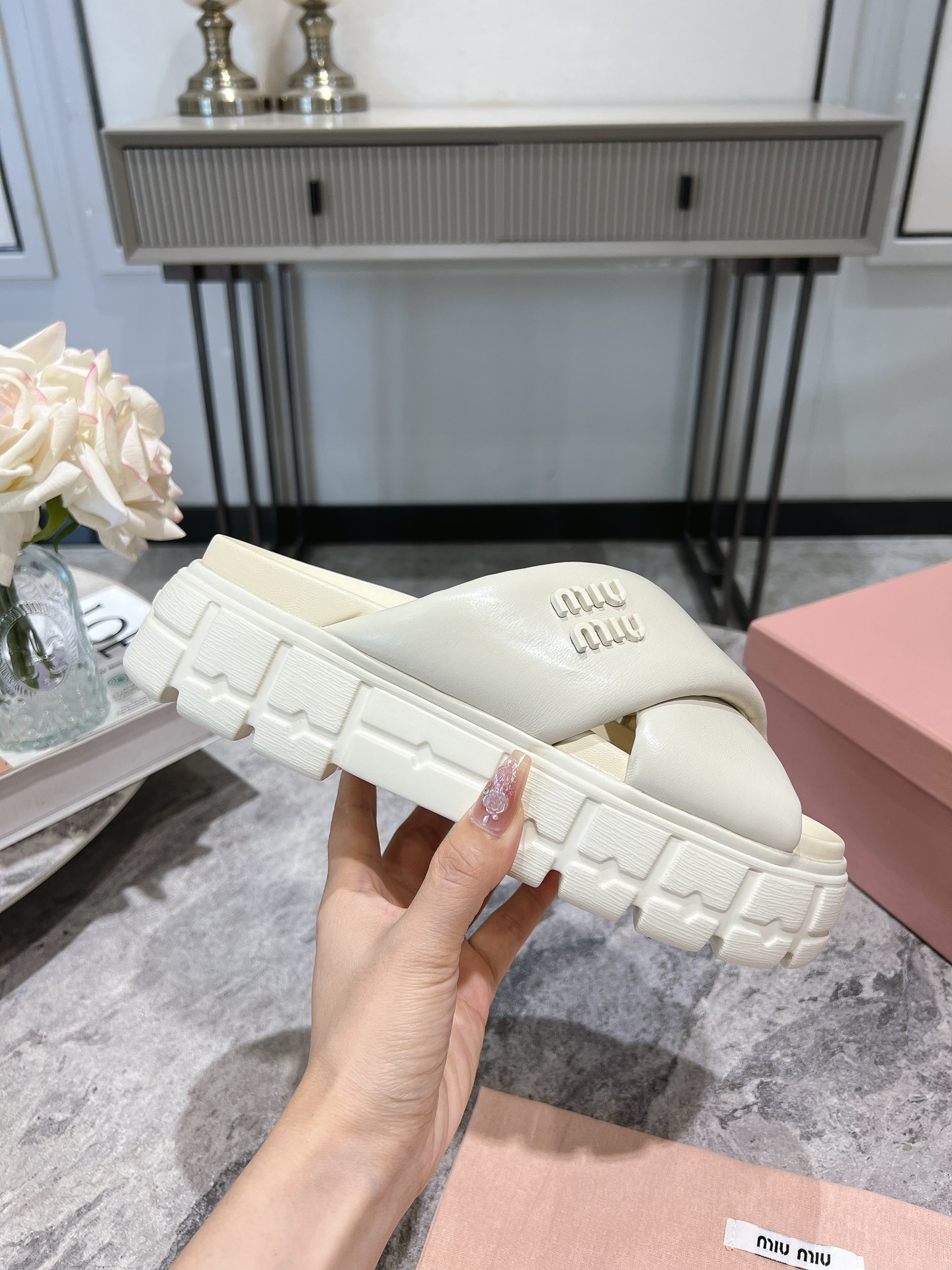 这款鞋子是AAAAA 1:1 质量 (非常棒). 使用了和原版一模一样的材料. 商标部分也保持了和缪缪/Miu Miu一样. 图片拍摄是实物鞋子拍摄, 您所收到的实物保证和我们图片一模一样.