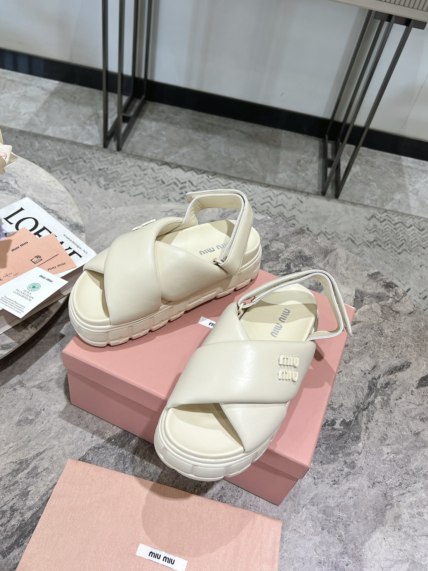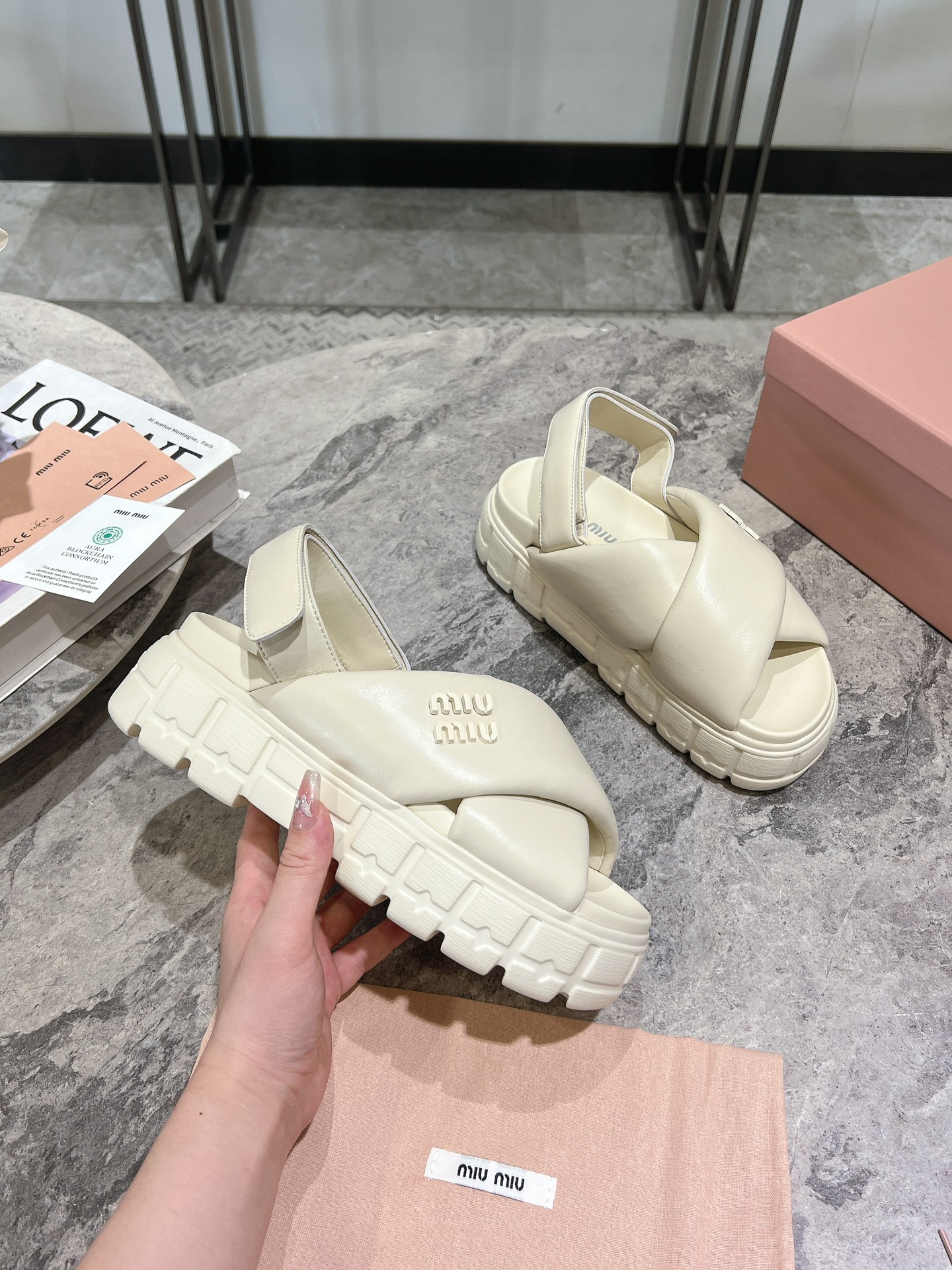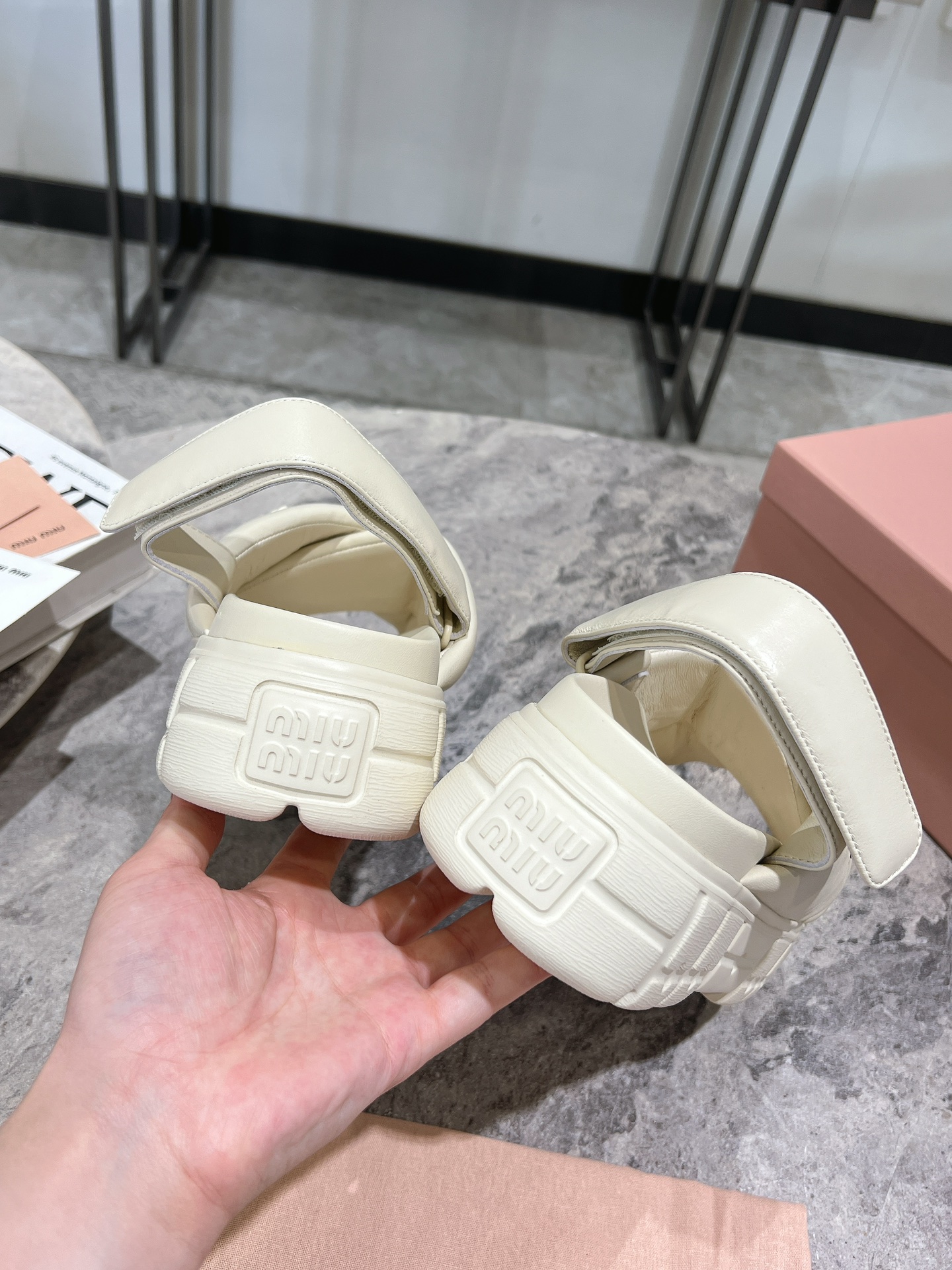 这款鞋子是AAAAA 1:1 质量 (非常棒). 使用了和原版一模一样的材料. 商标部分也保持了和缪缪/Miu Miu一样. 图片拍摄是实物鞋子拍摄, 您所收到的实物保证和我们图片一模一样.
