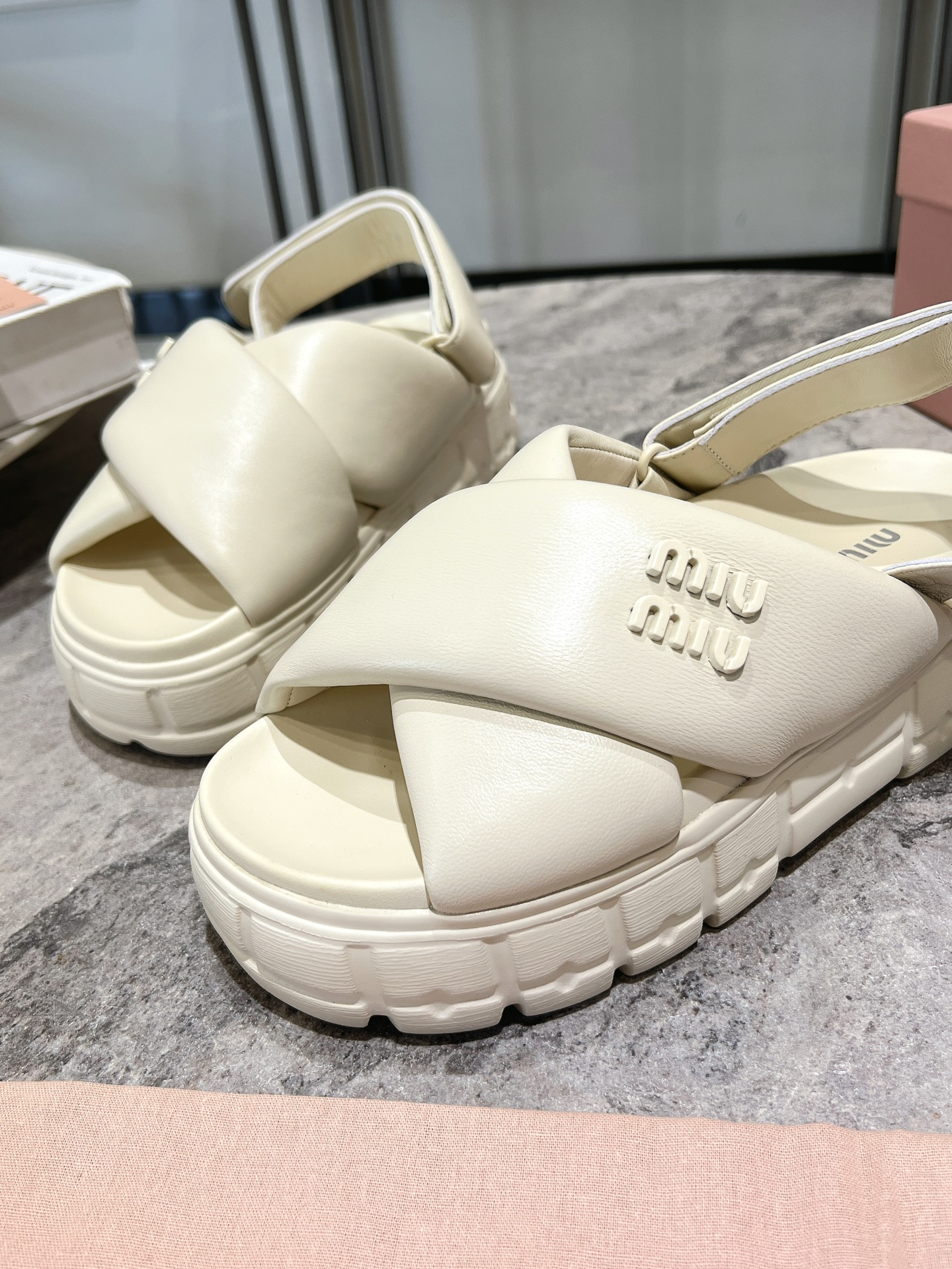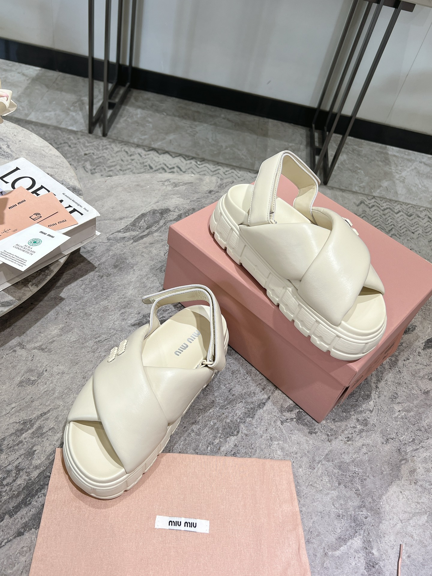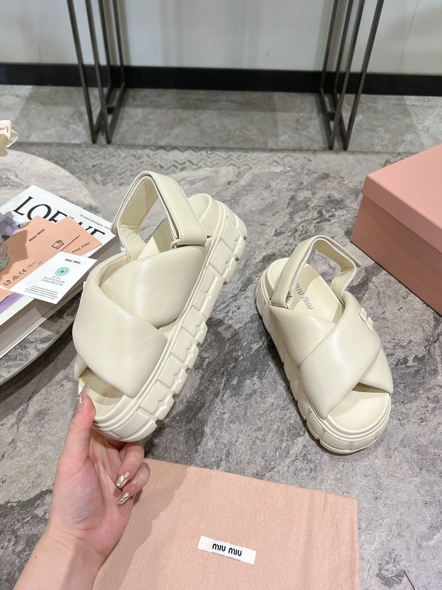 这款鞋子是AAAAA 1:1 质量 (非常棒). 使用了和原版一模一样的材料. 商标部分也保持了和缪缪/Miu Miu一样. 图片拍摄是实物鞋子拍摄, 您所收到的实物保证和我们图片一模一样.