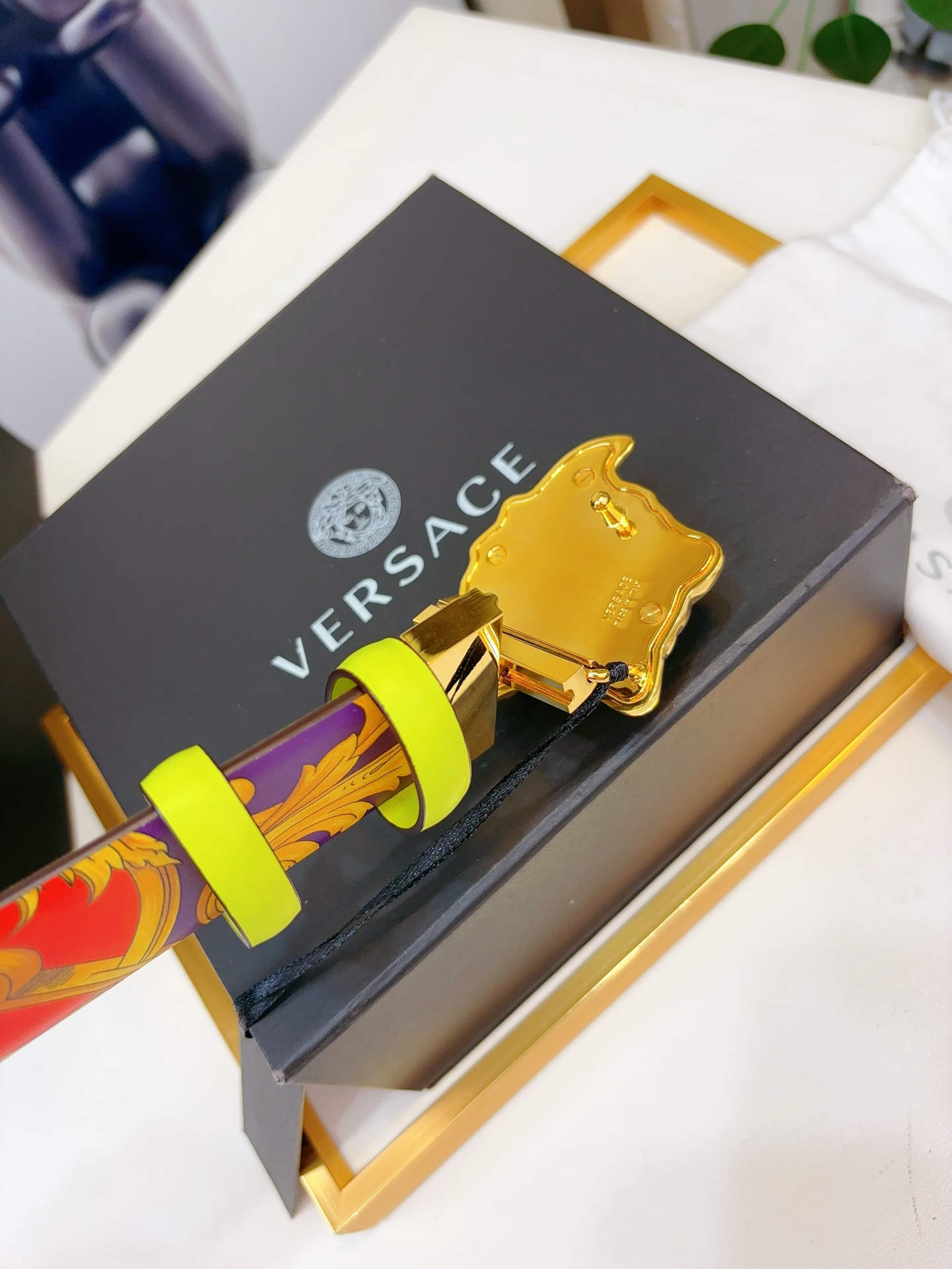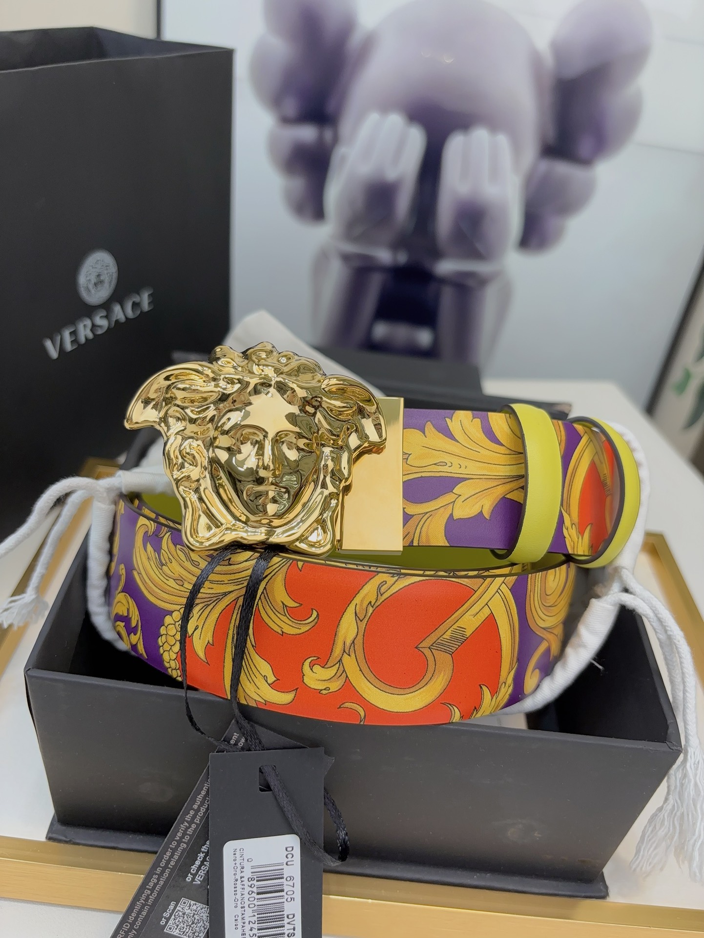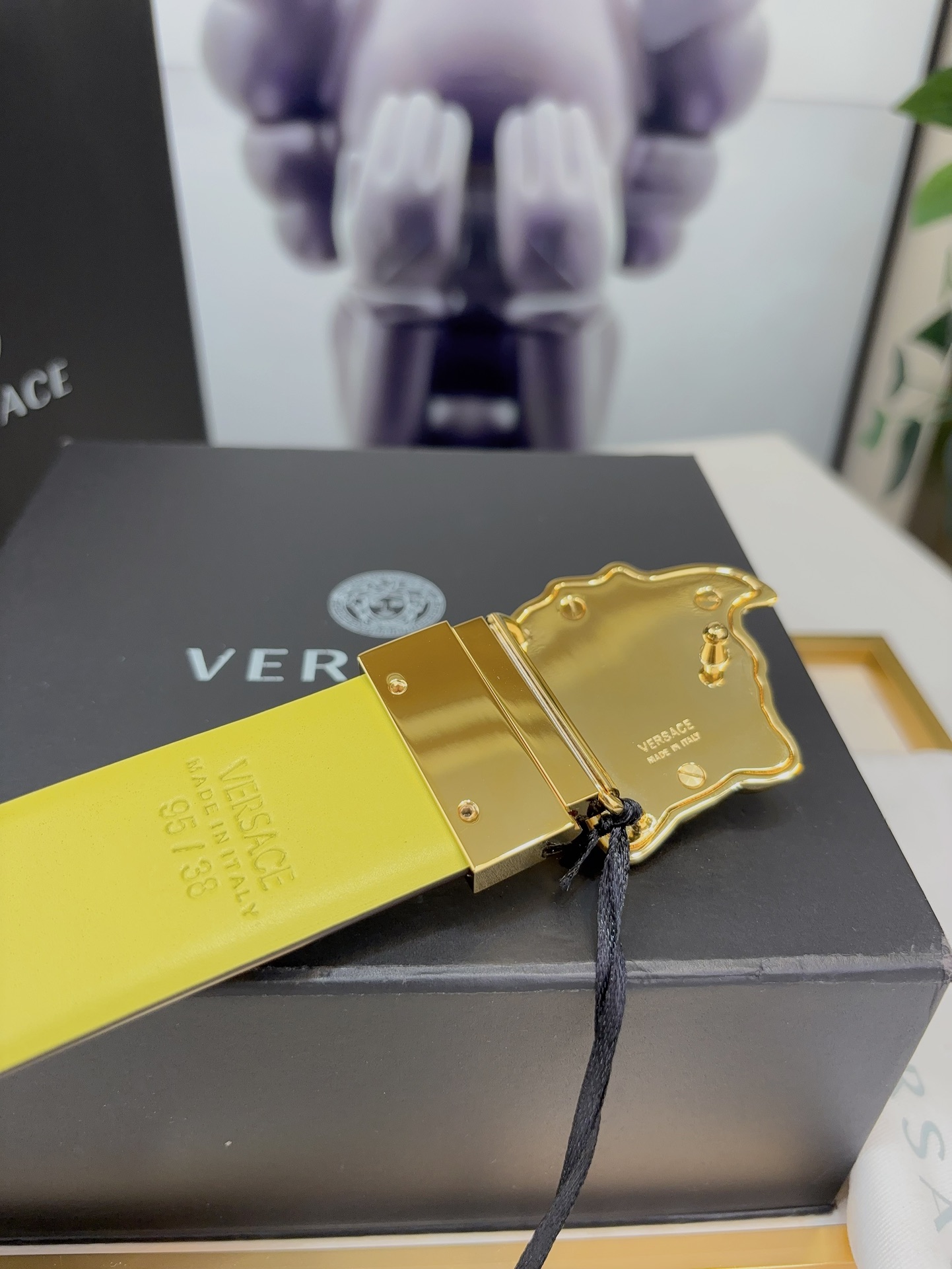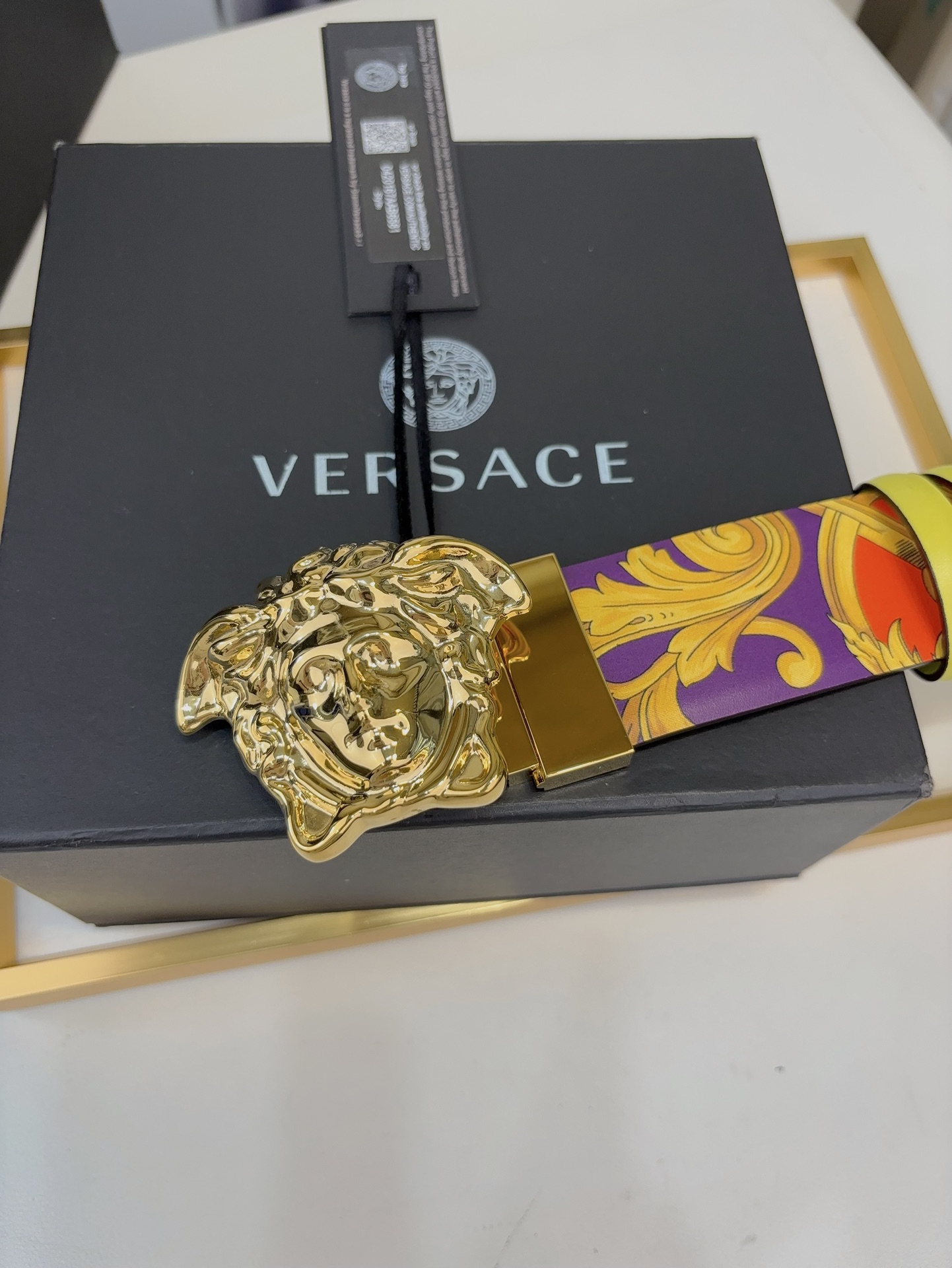 这款皮带是AAAAA 1:1 质量 (非常棒). 使用了和原版一模一样的材料. 商标部分也保持了和范思哲/Versace一样. 图片拍摄是实物皮带拍摄, 您所收到的实物保证和我们图片一模一样.