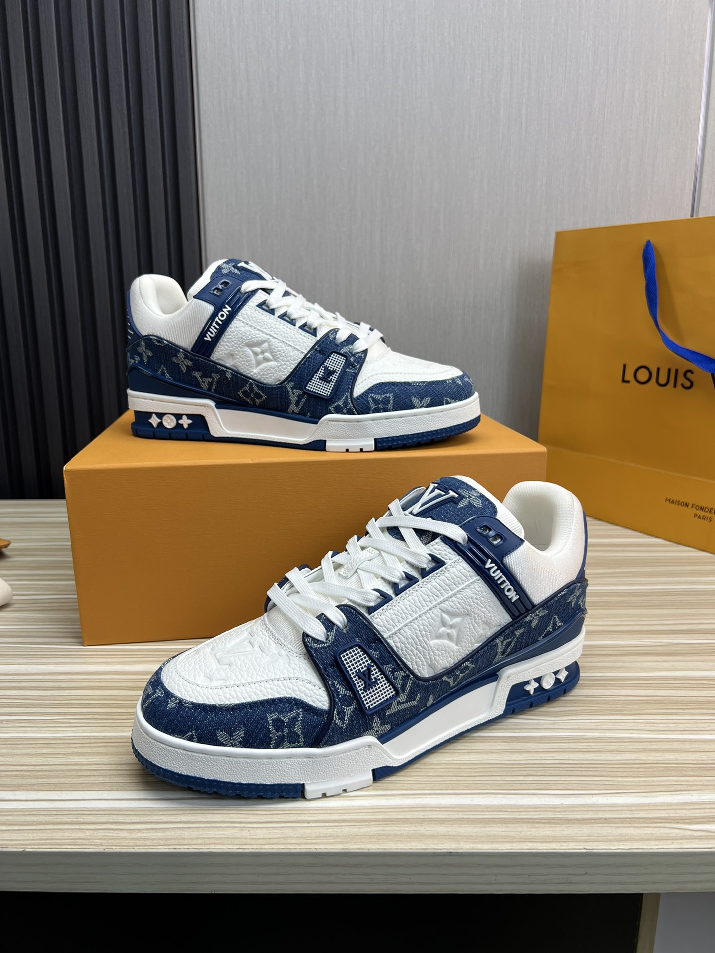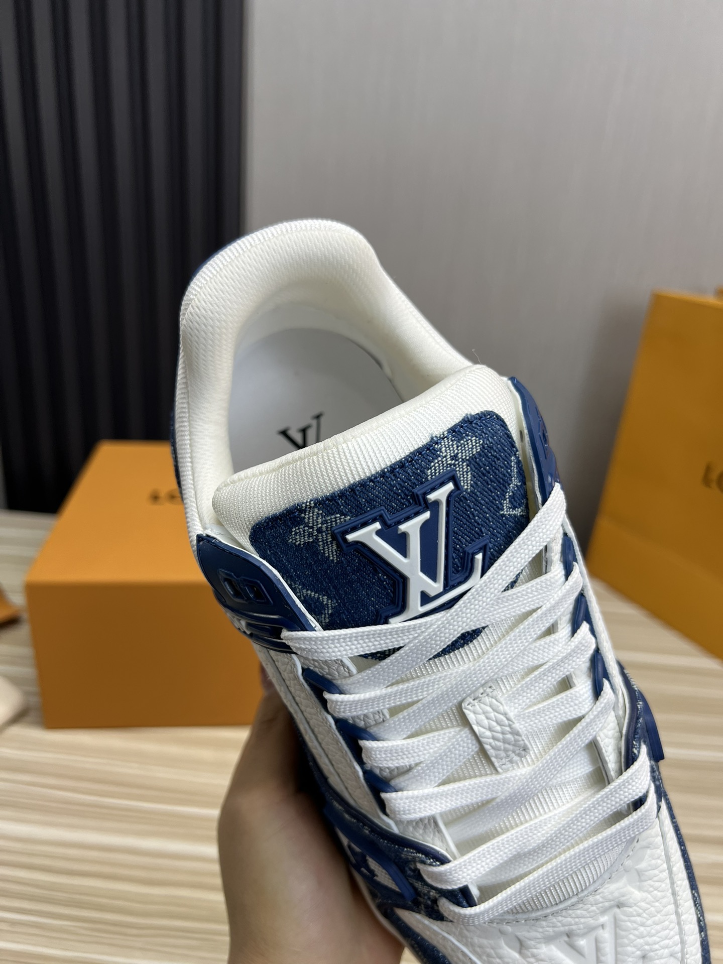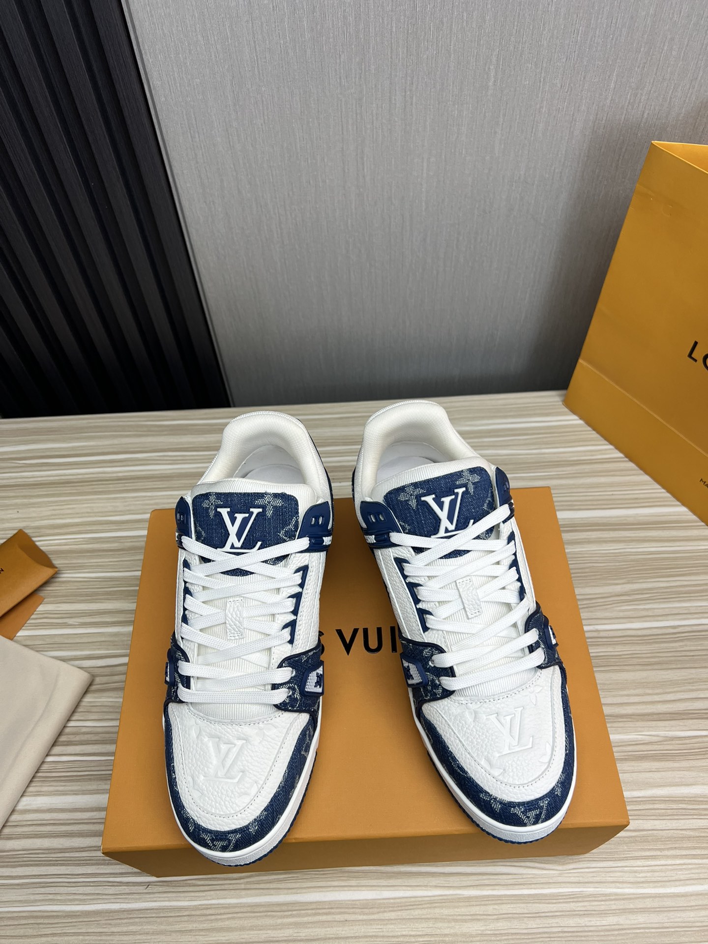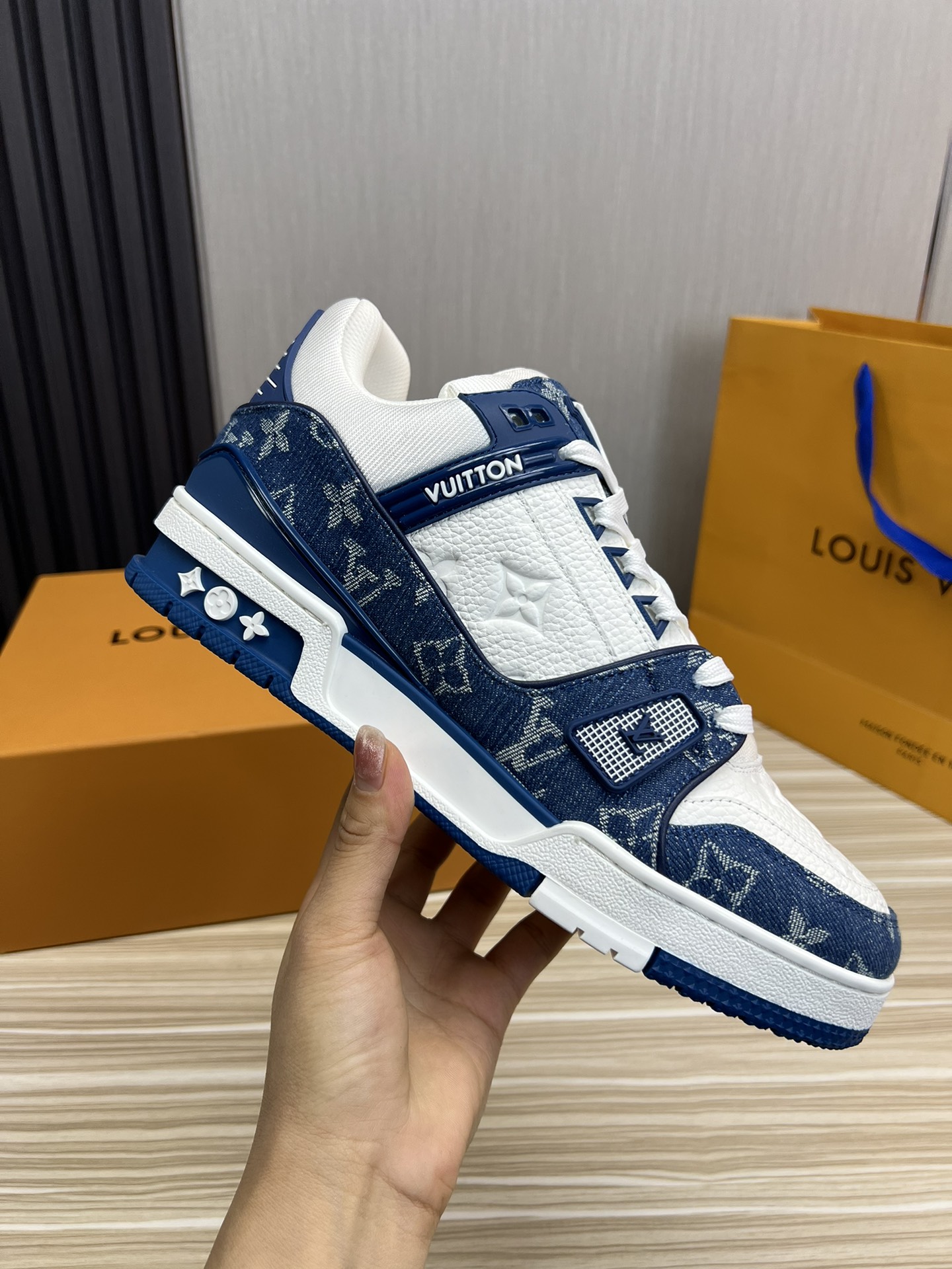 这款鞋子是AAAAA 1:1 质量 (非常棒). 使用了和原版一模一样的材料. 商标部分也保持了和路易威登/Louis Vuitton一样. 图片拍摄是实物鞋子拍摄, 您所收到的实物保证和我们图片一模一样.
