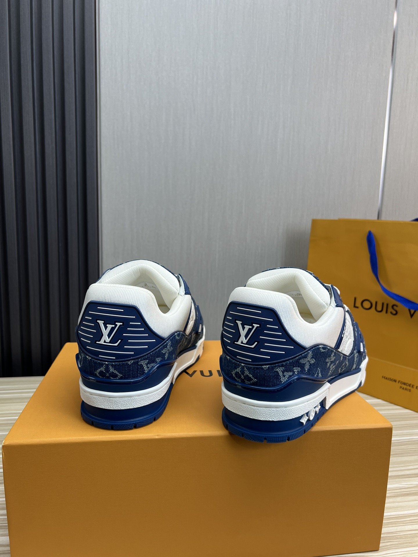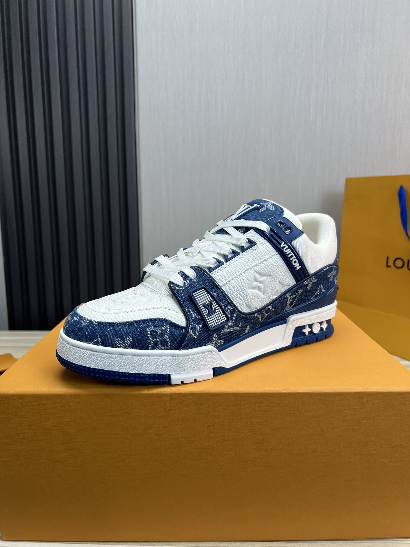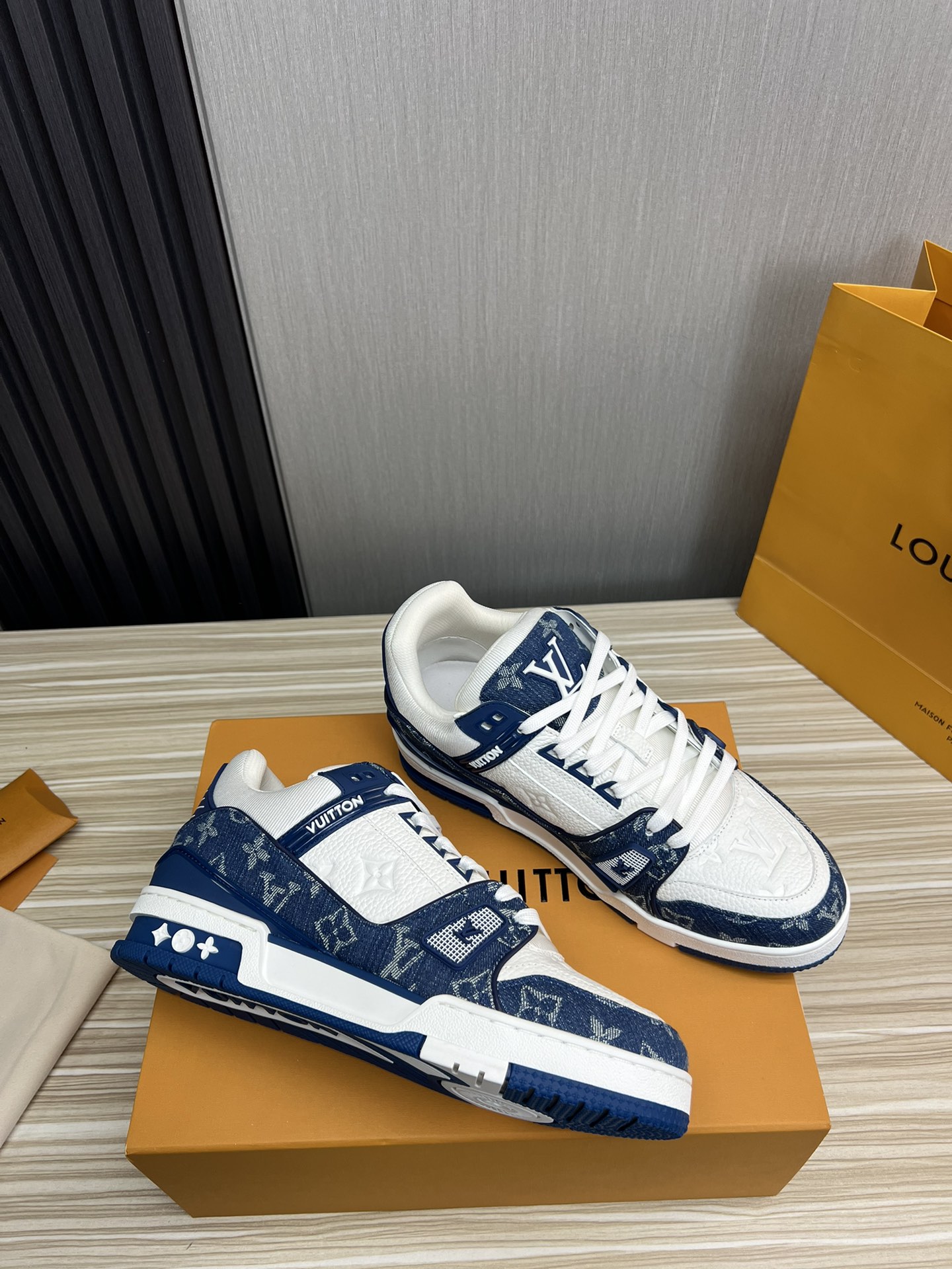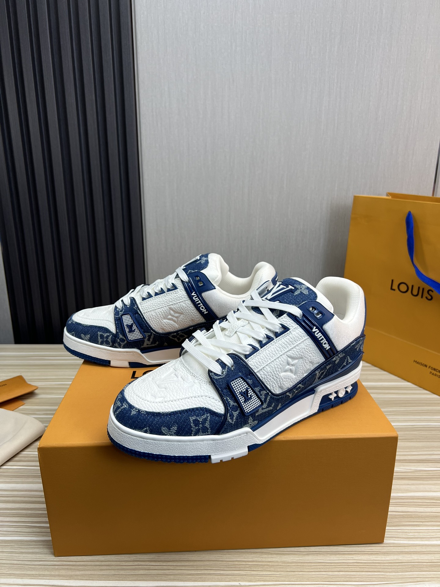 这款鞋子是AAAAA 1:1 质量 (非常棒). 使用了和原版一模一样的材料. 商标部分也保持了和路易威登/Louis Vuitton一样. 图片拍摄是实物鞋子拍摄, 您所收到的实物保证和我们图片一模一样.