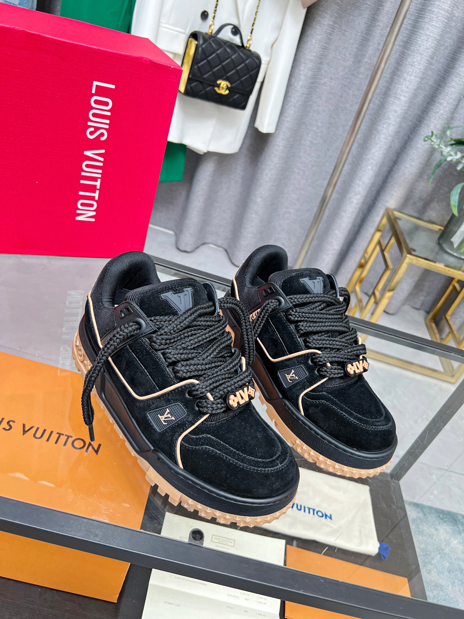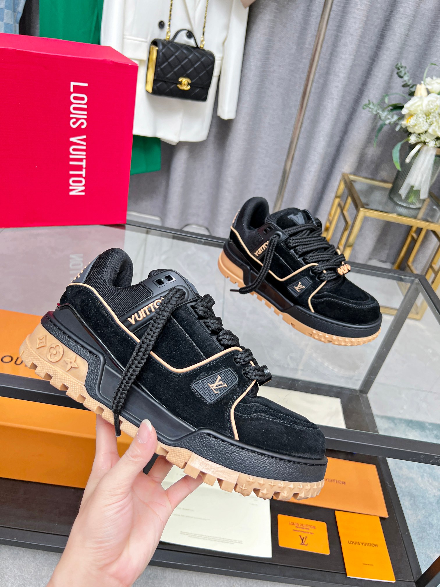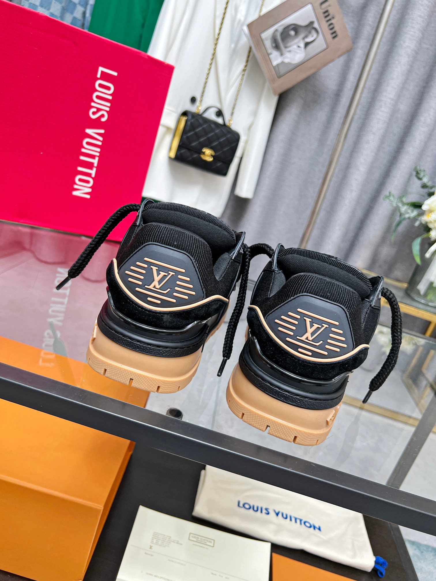 这款鞋子是AAAAA 1:1 质量 (非常棒). 使用了和原版一模一样的材料. 商标部分也保持了和路易威登/Louis Vuitton一样. 图片拍摄是实物鞋子拍摄, 您所收到的实物保证和我们图片一模一样.