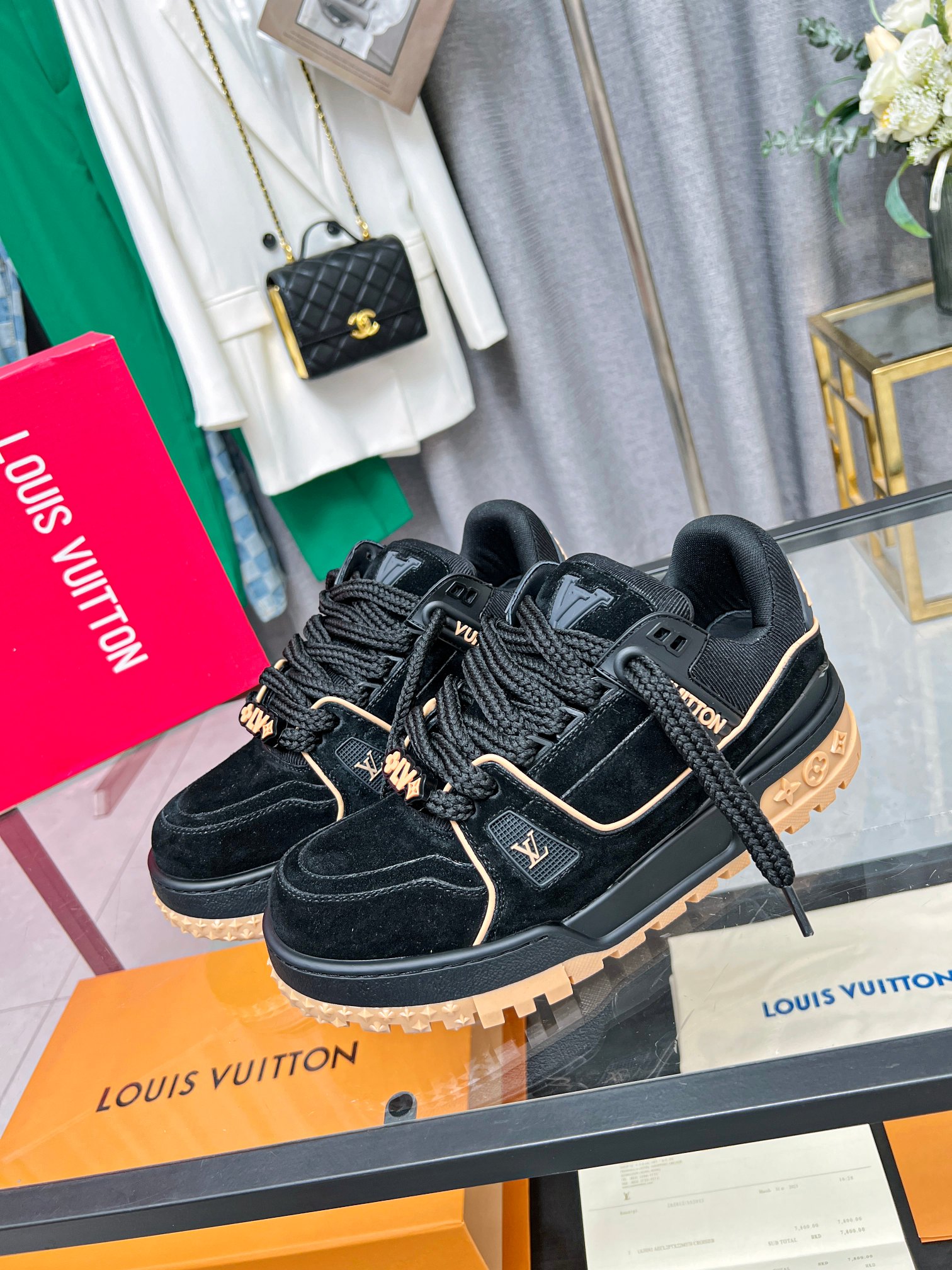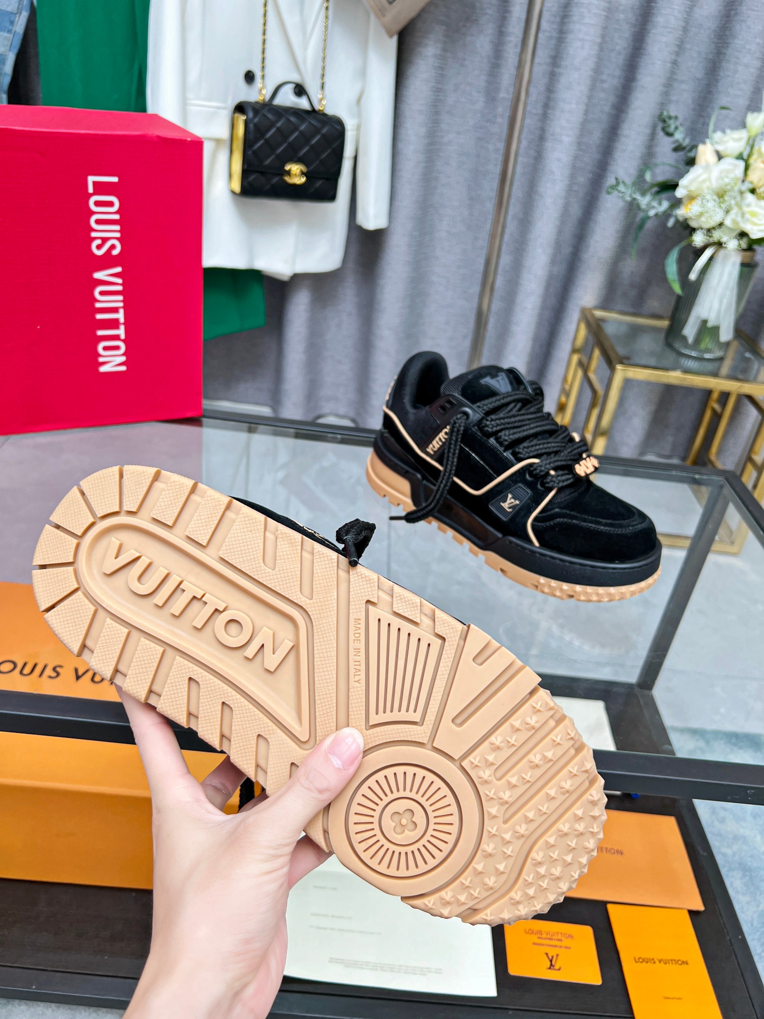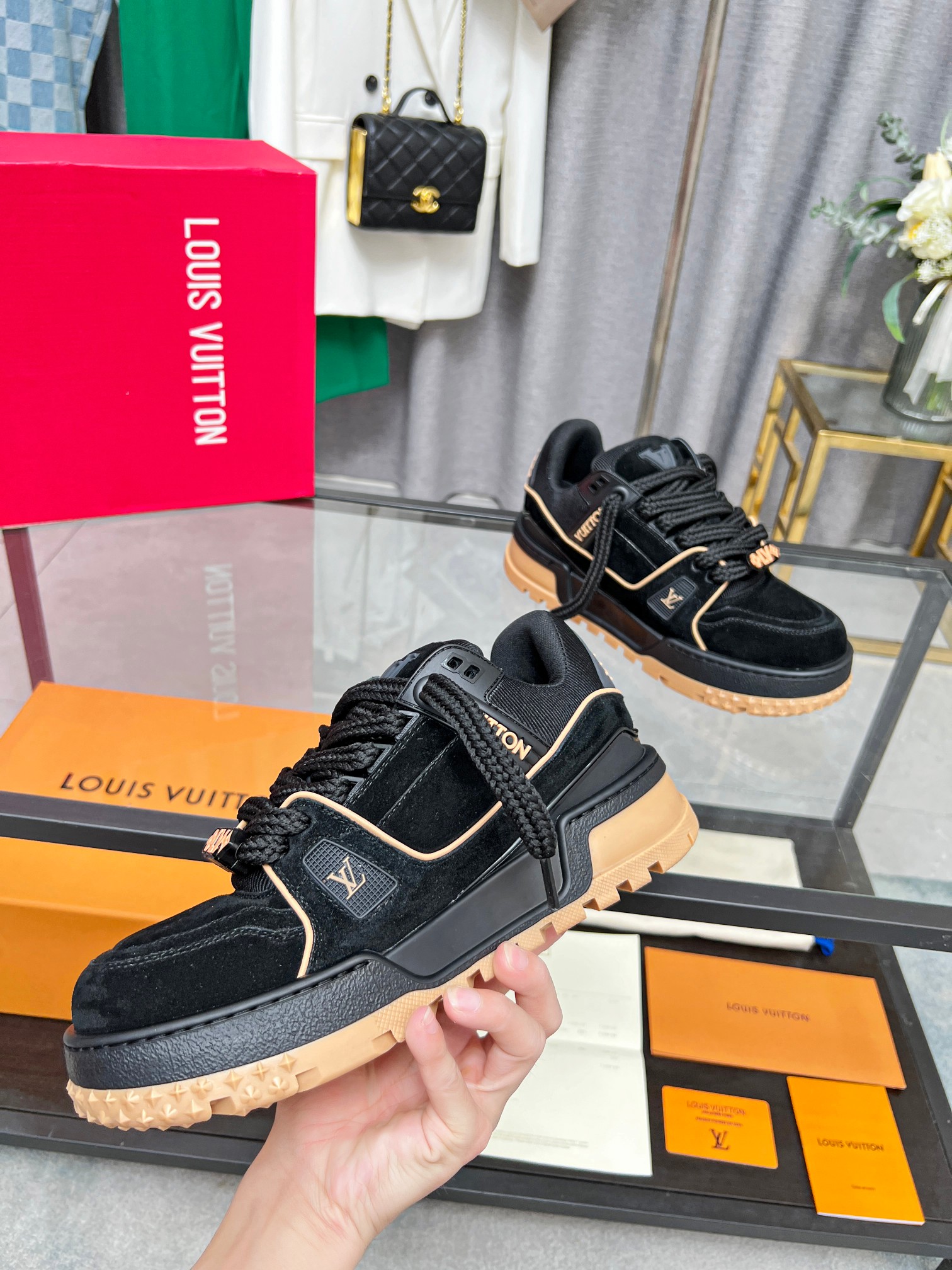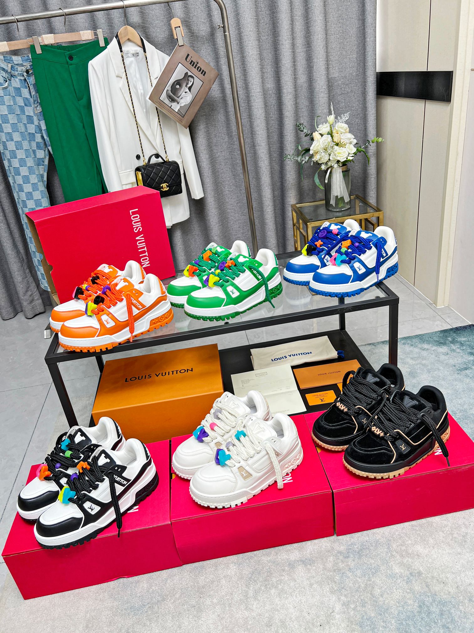这款鞋子是AAAAA 1:1 质量 (非常棒). 使用了和原版一模一样的材料. 商标部分也保持了和路易威登/Louis Vuitton一样. 图片拍摄是实物鞋子拍摄, 您所收到的实物保证和我们图片一模一样.
