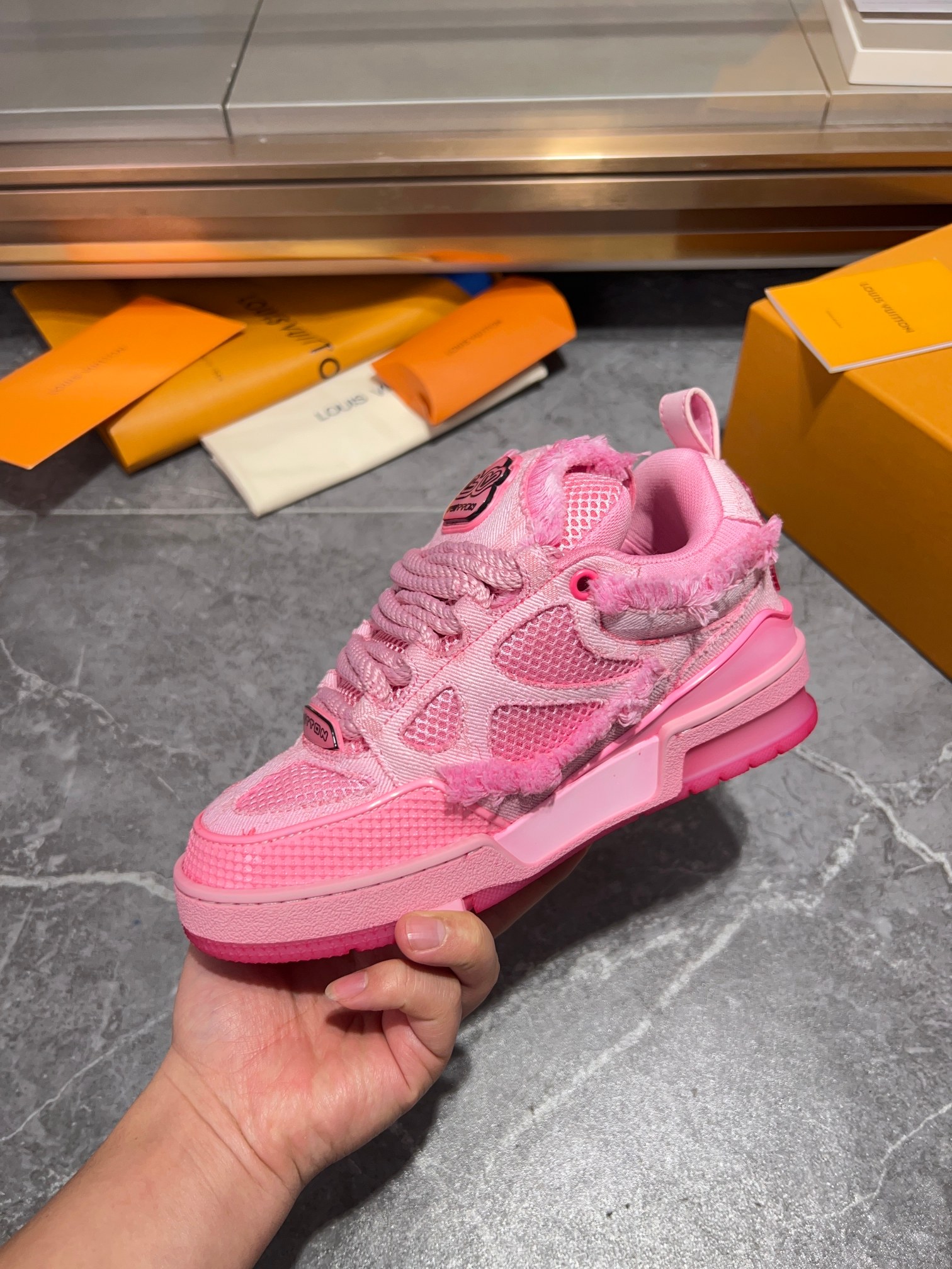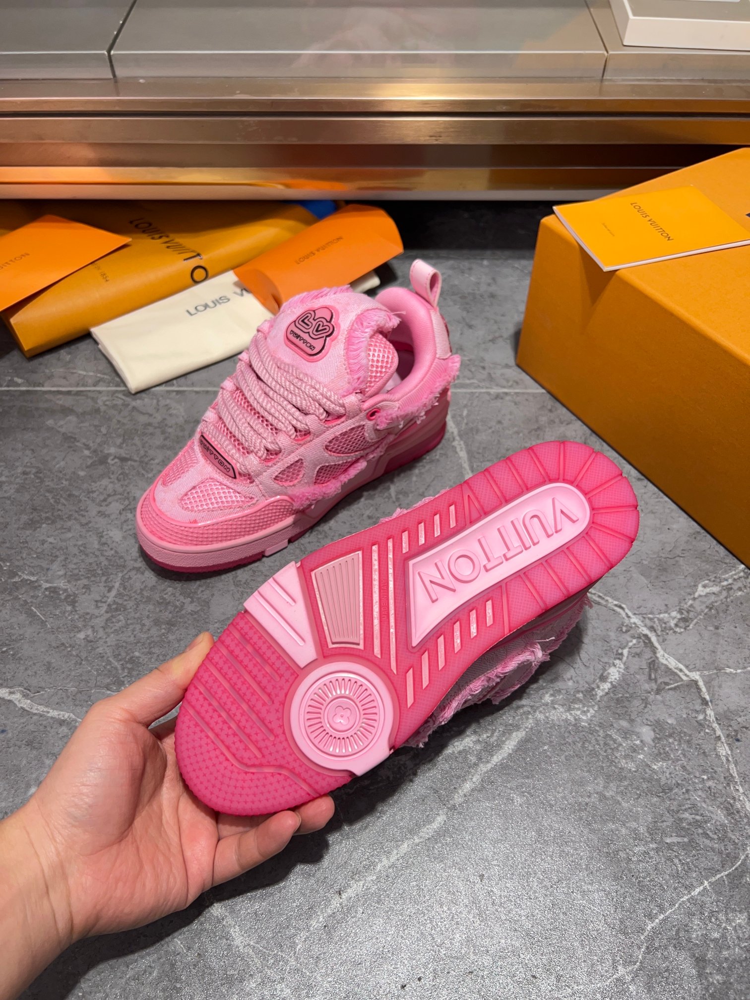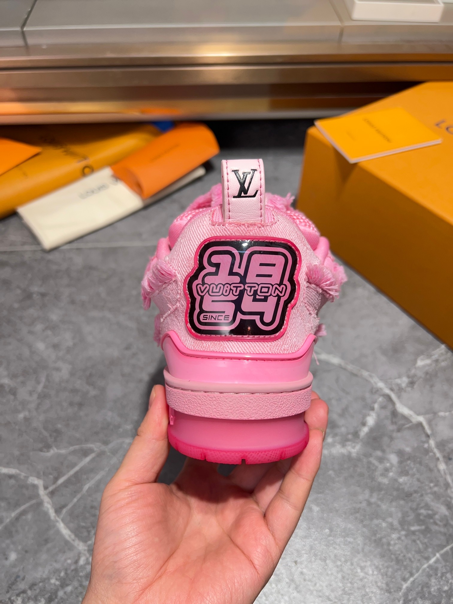 这款鞋子是AAAAA 1:1 质量 (非常棒). 使用了和原版一模一样的材料. 商标部分也保持了和路易威登/Louis Vuitton一样. 图片拍摄是实物鞋子拍摄, 您所收到的实物保证和我们图片一模一样.