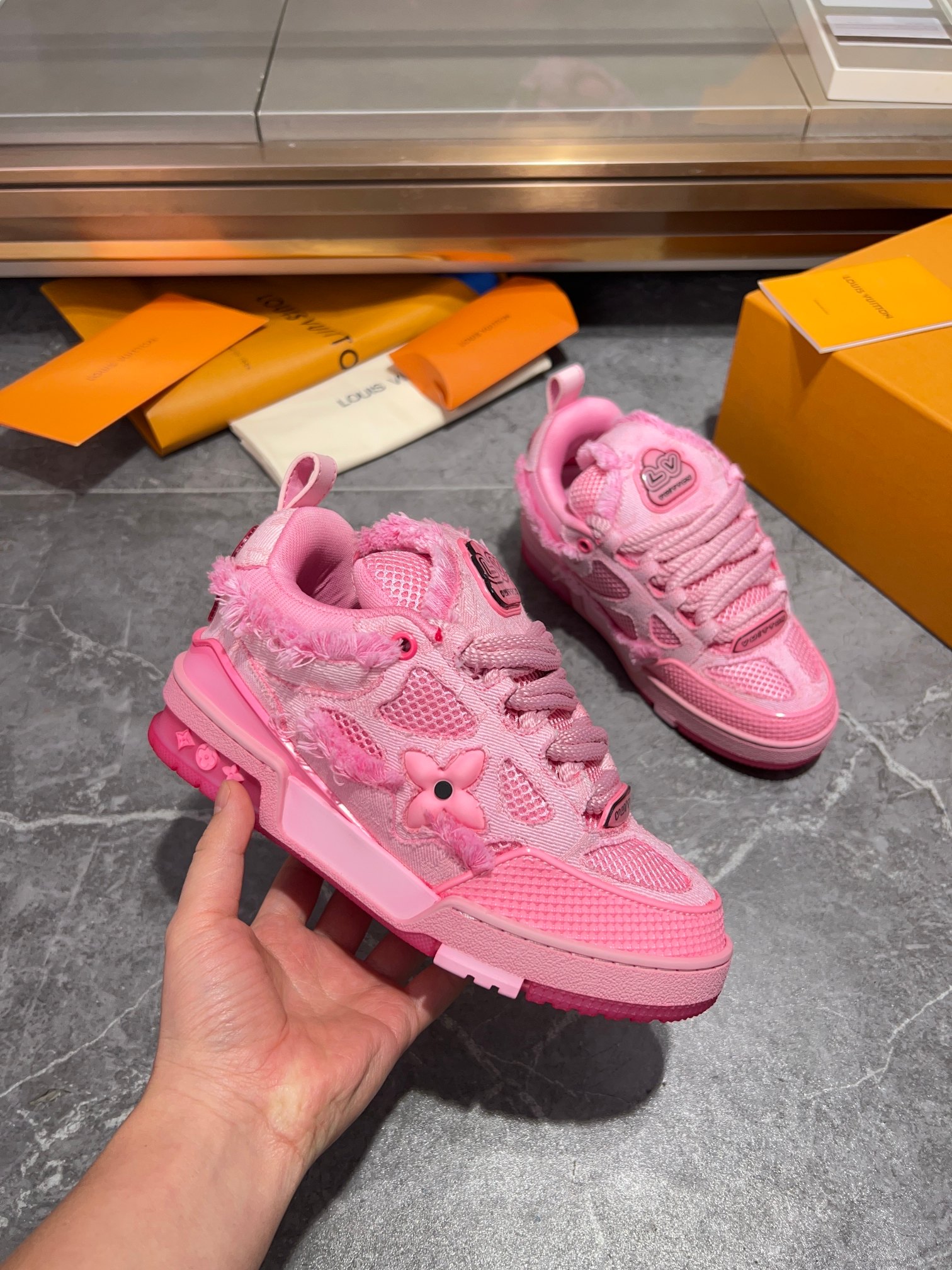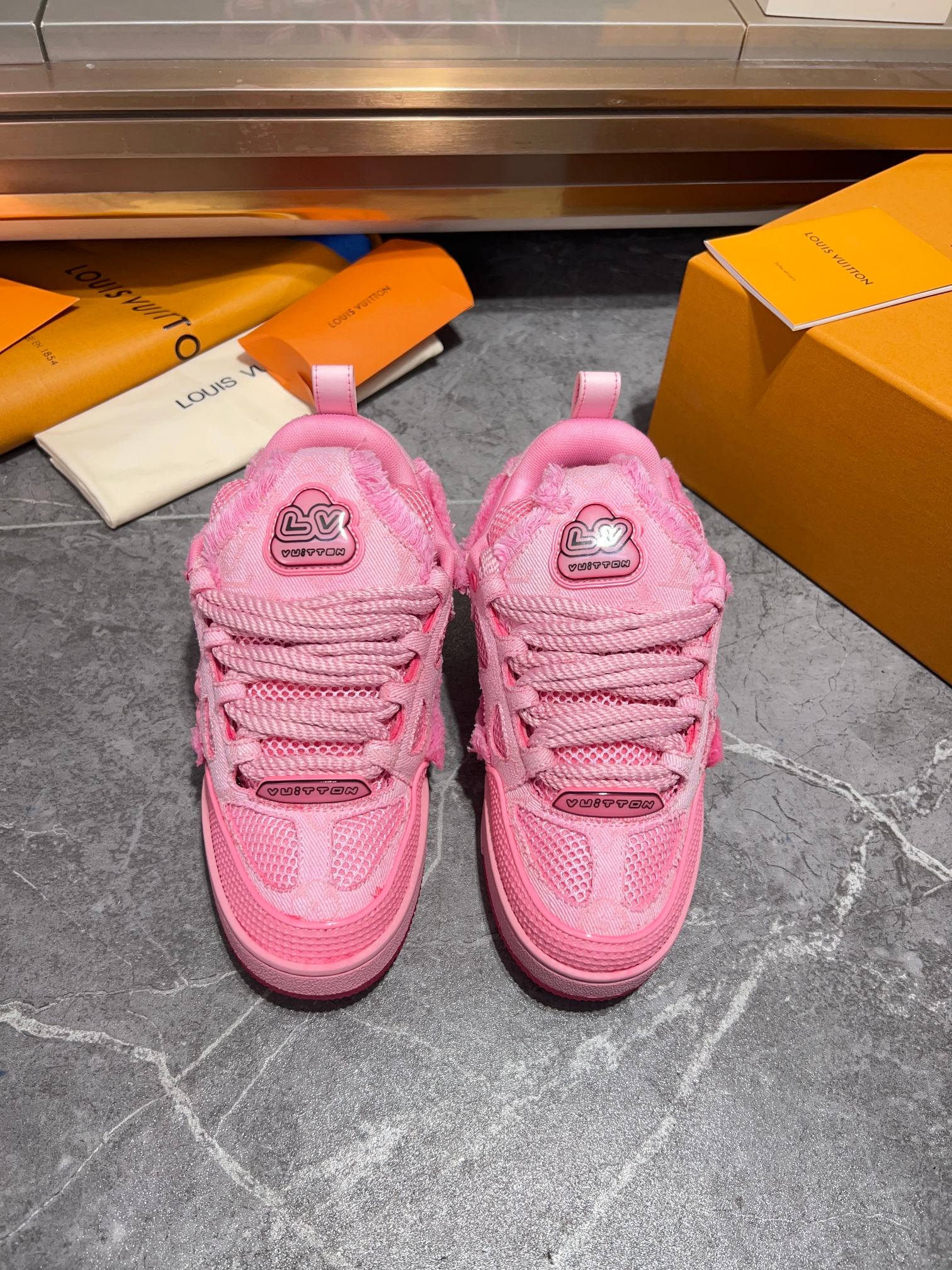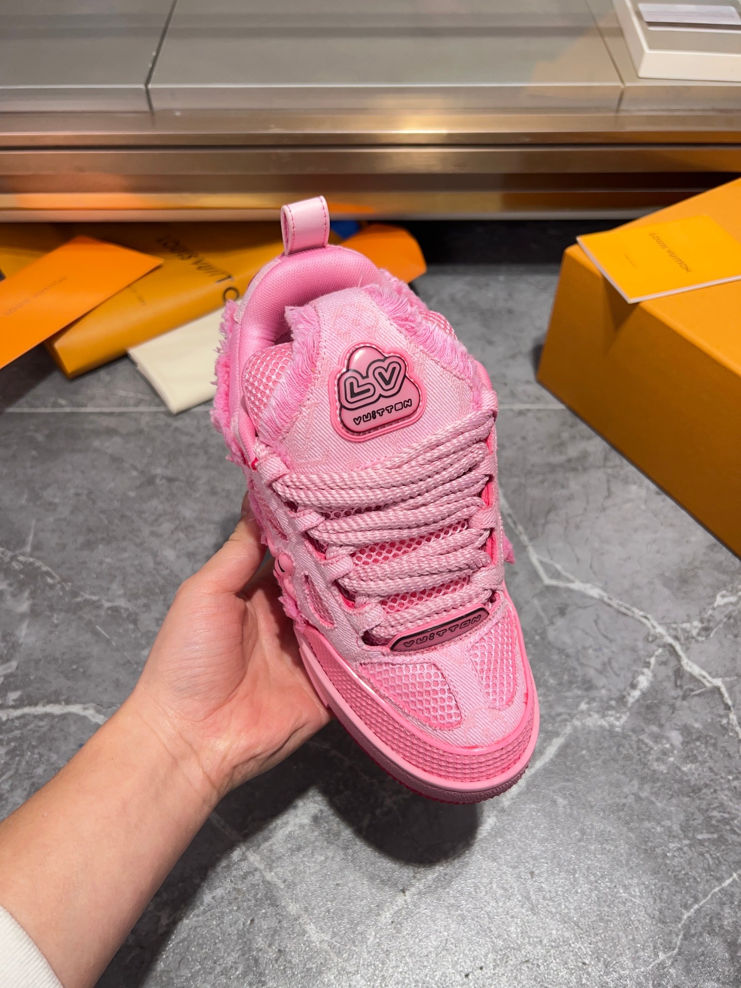 这款鞋子是AAAAA 1:1 质量 (非常棒). 使用了和原版一模一样的材料. 商标部分也保持了和路易威登/Louis Vuitton一样. 图片拍摄是实物鞋子拍摄, 您所收到的实物保证和我们图片一模一样.