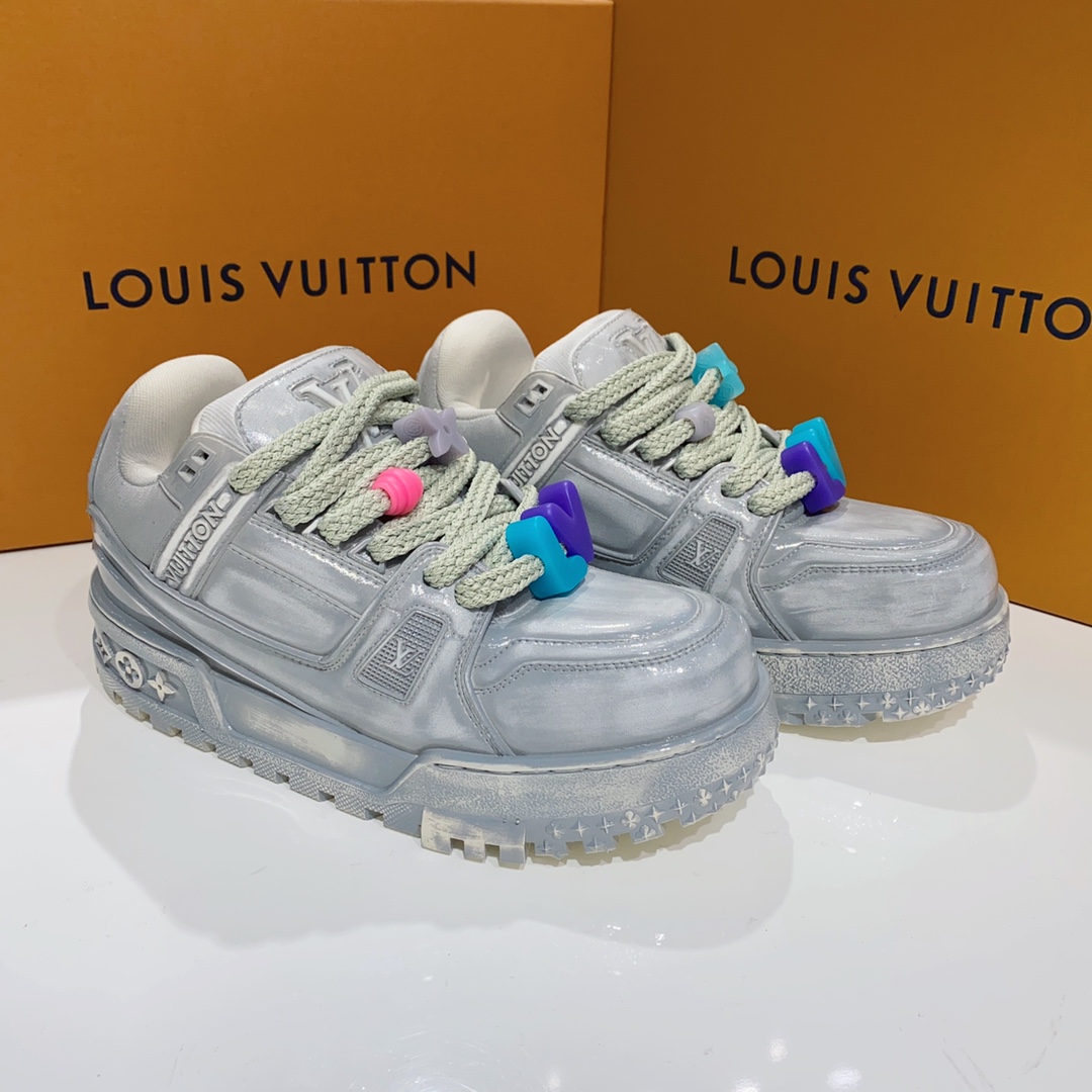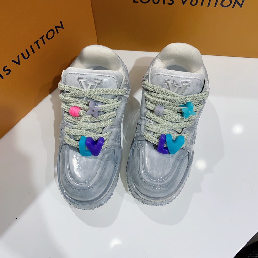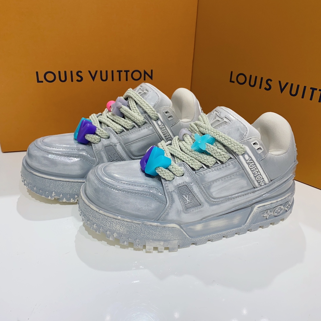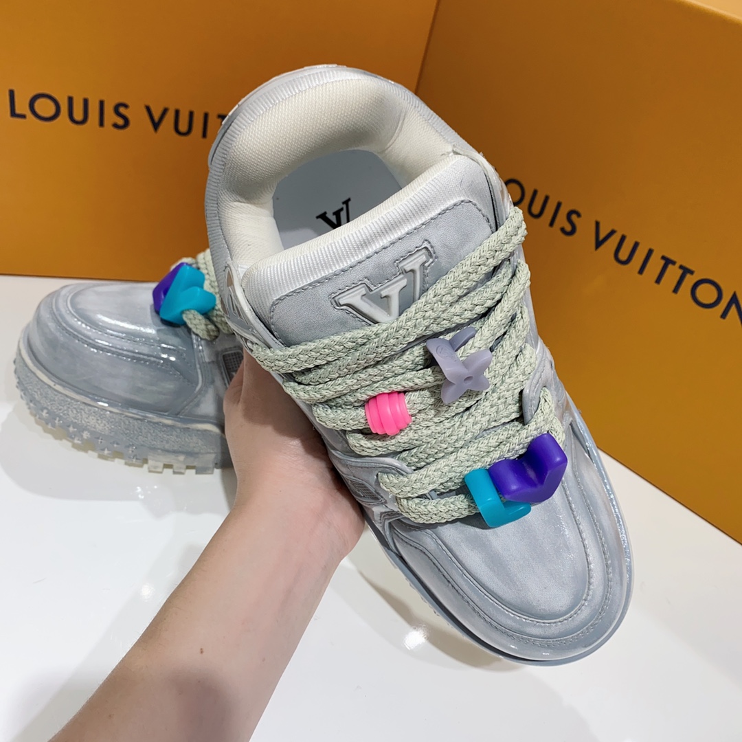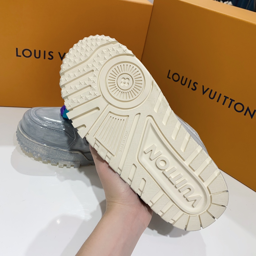 这款鞋子是AAAAA 1:1 质量 (非常棒). 使用了和原版一模一样的材料. 商标部分也保持了和路易威登/Louis Vuitton一样. 图片拍摄是实物鞋子拍摄, 您所收到的实物保证和我们图片一模一样.