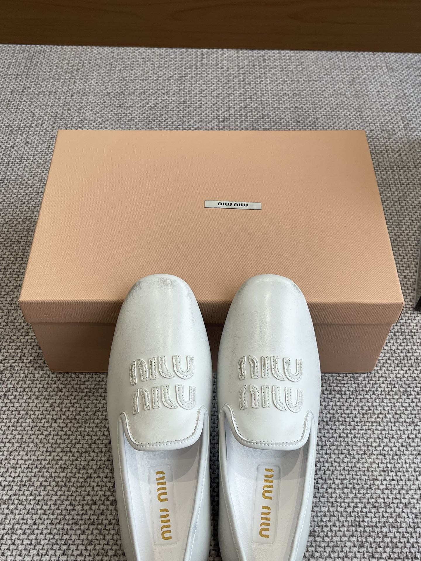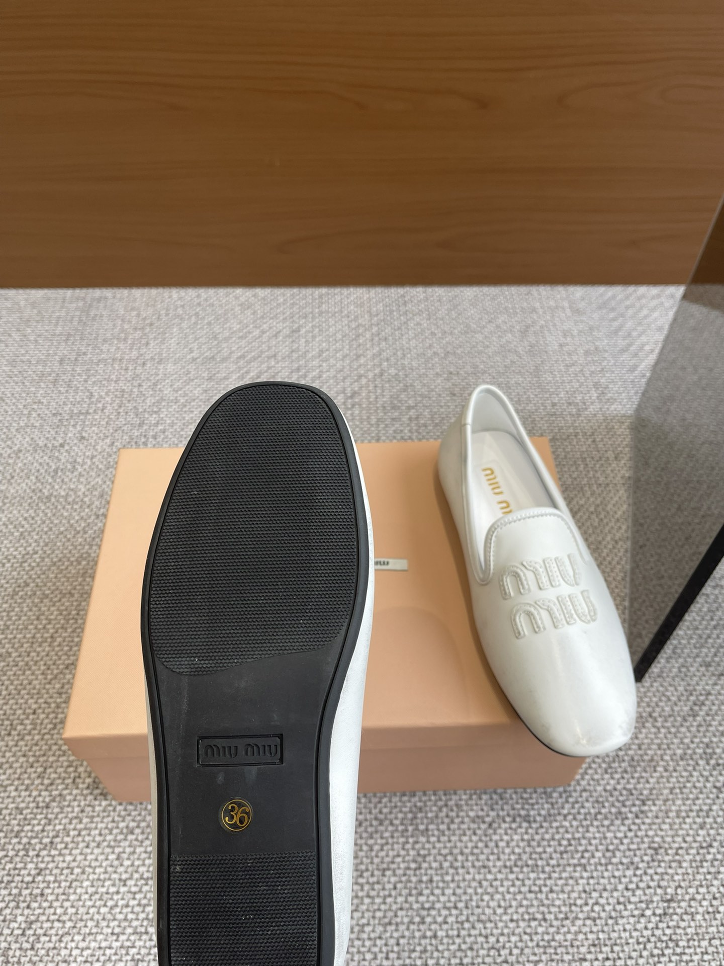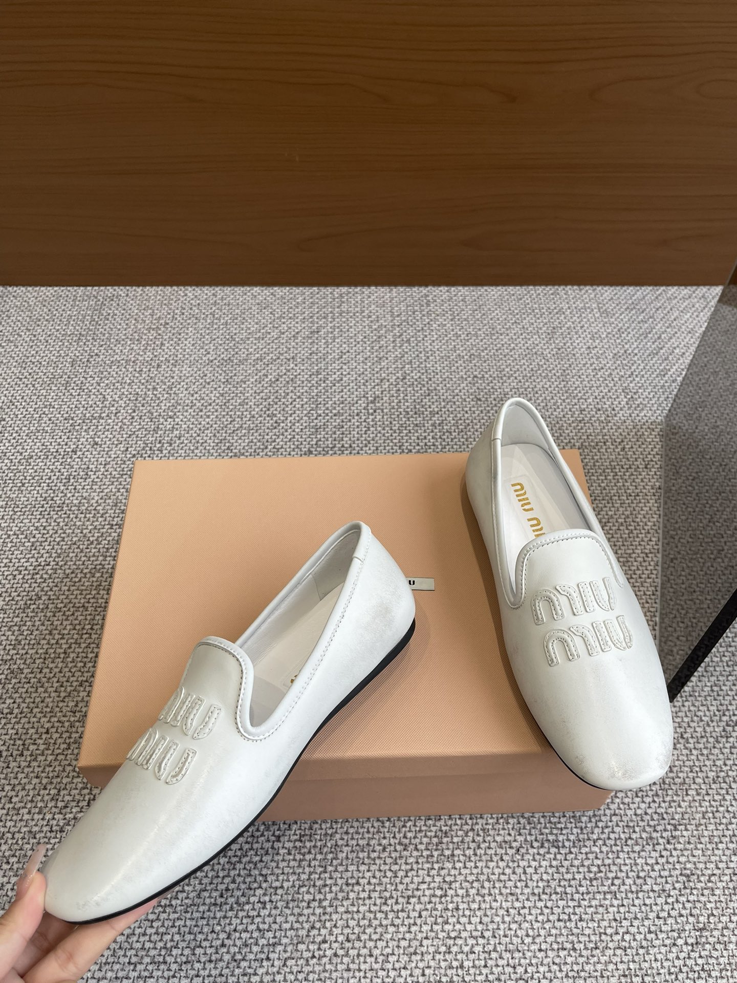 这款鞋子是AAAAA 1:1 质量 (非常棒). 使用了和原版一模一样的材料. 商标部分也保持了和缪缪/Miu Miu一样. 图片拍摄是实物鞋子拍摄, 您所收到的实物保证和我们图片一模一样.