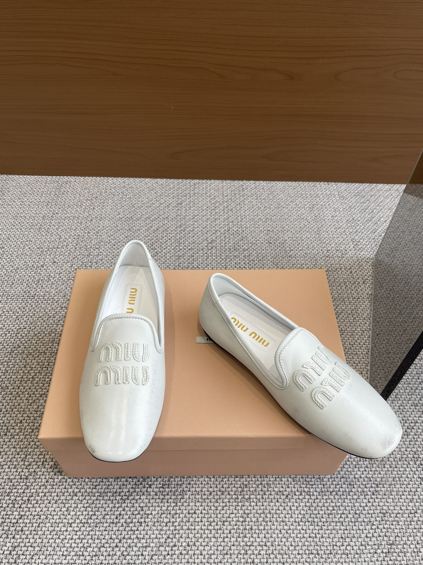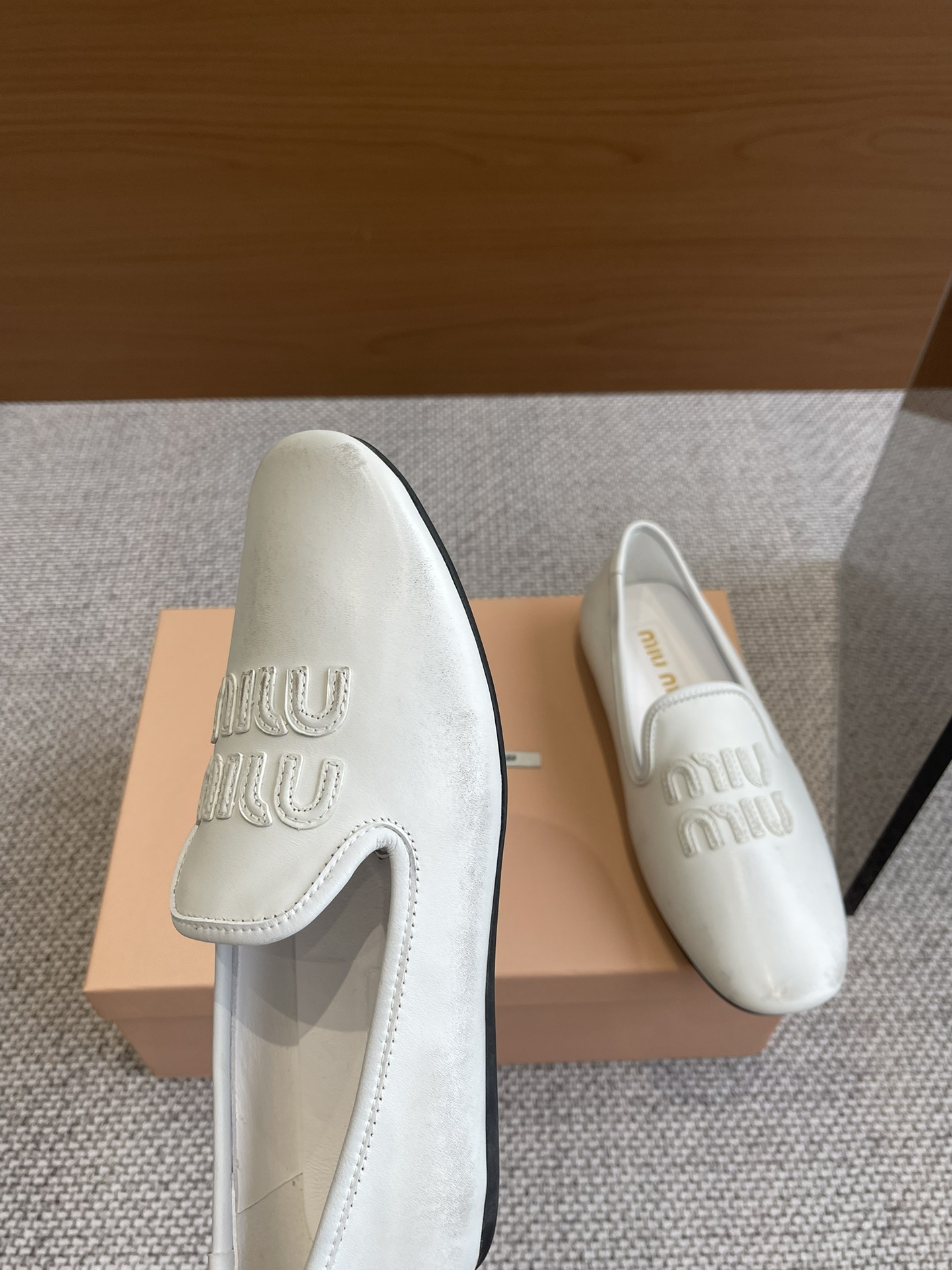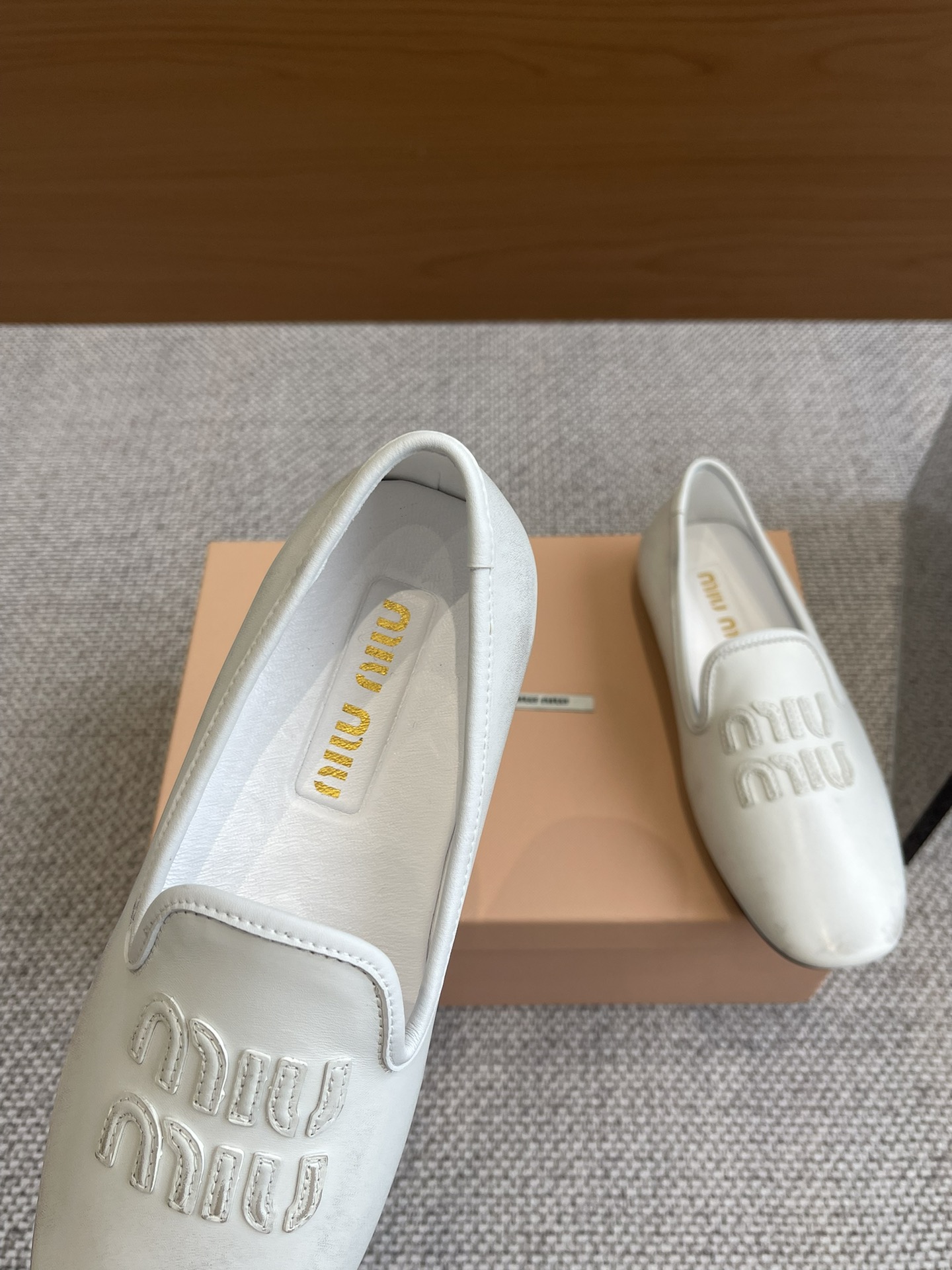 这款鞋子是AAAAA 1:1 质量 (非常棒). 使用了和原版一模一样的材料. 商标部分也保持了和缪缪/Miu Miu一样. 图片拍摄是实物鞋子拍摄, 您所收到的实物保证和我们图片一模一样.