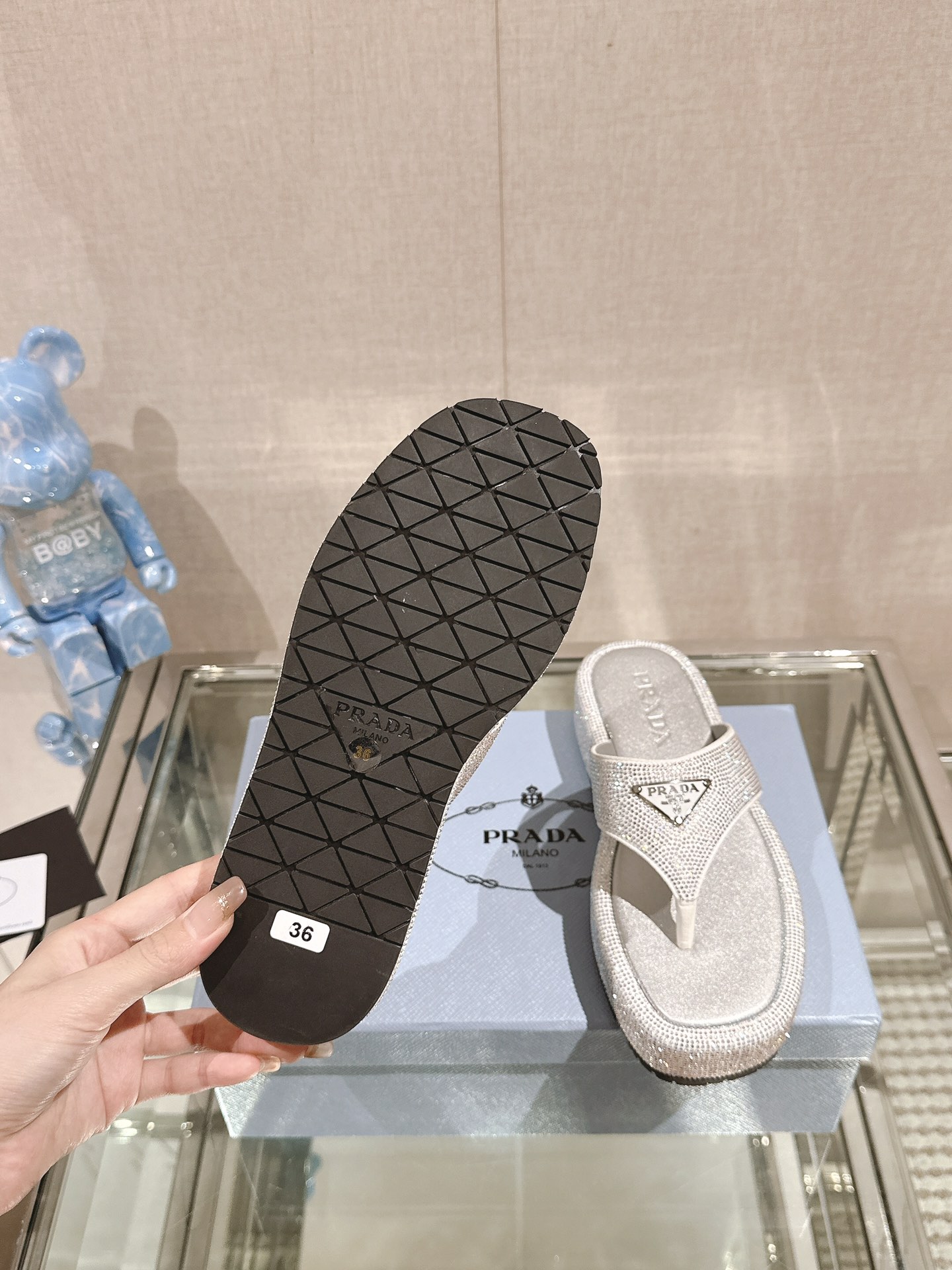 这款鞋子是AAAAA 1:1 质量 (非常棒). 使用了和原版一模一样的材料. 商标部分也保持了和普拉达/Prada一样. 图片拍摄是实物鞋子拍摄, 您所收到的实物保证和我们图片一模一样.