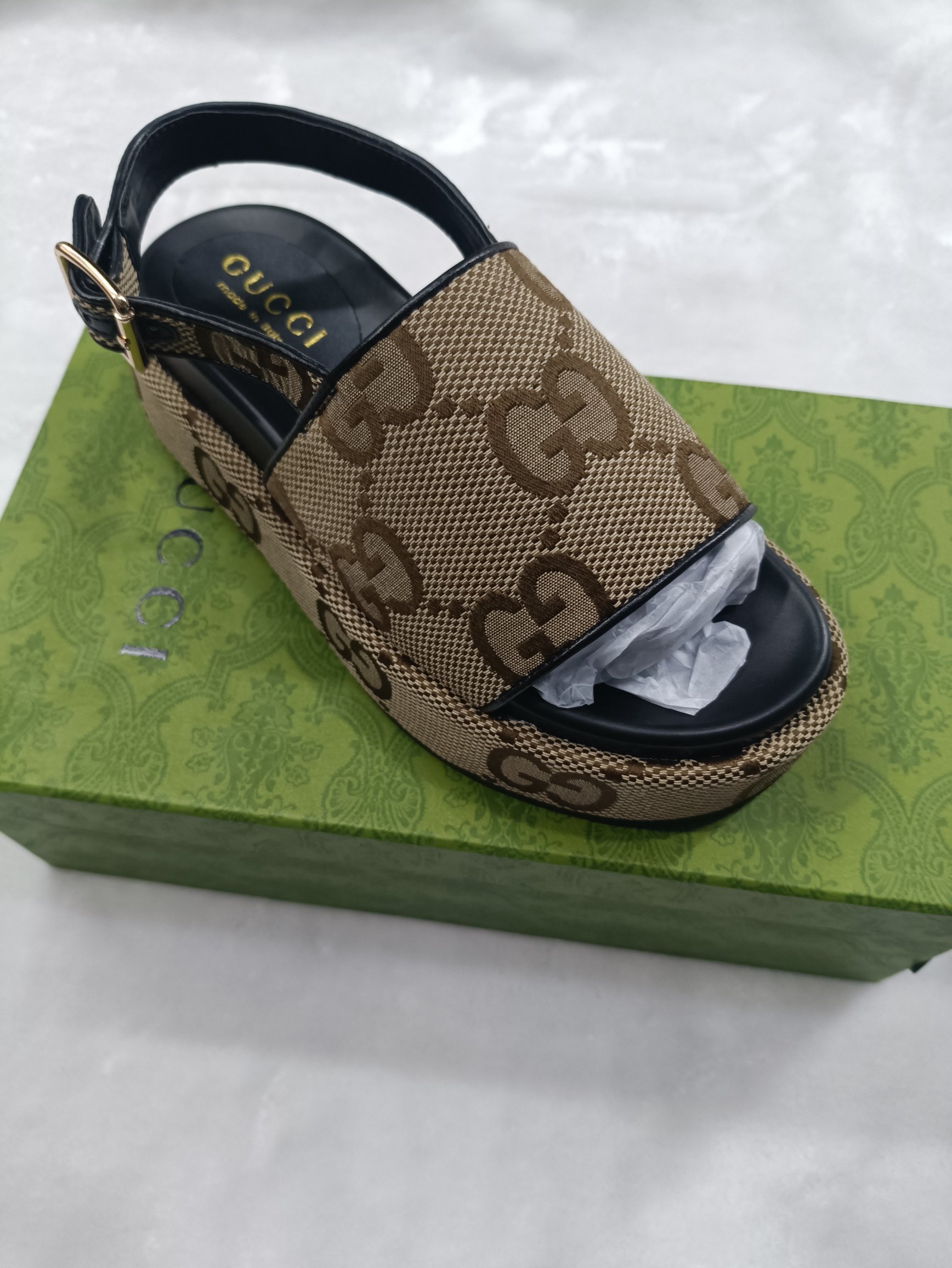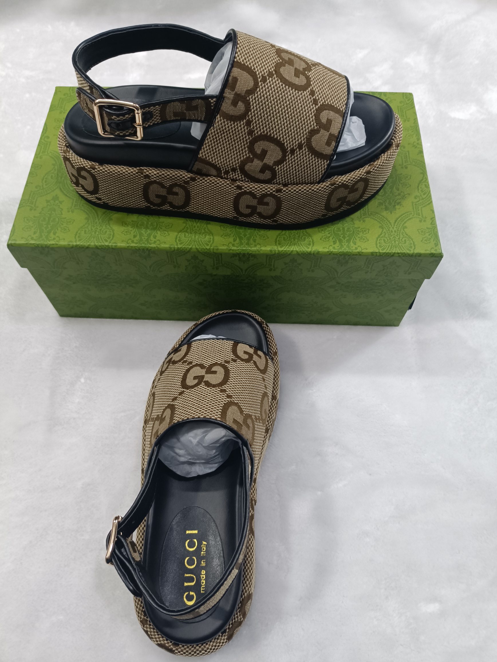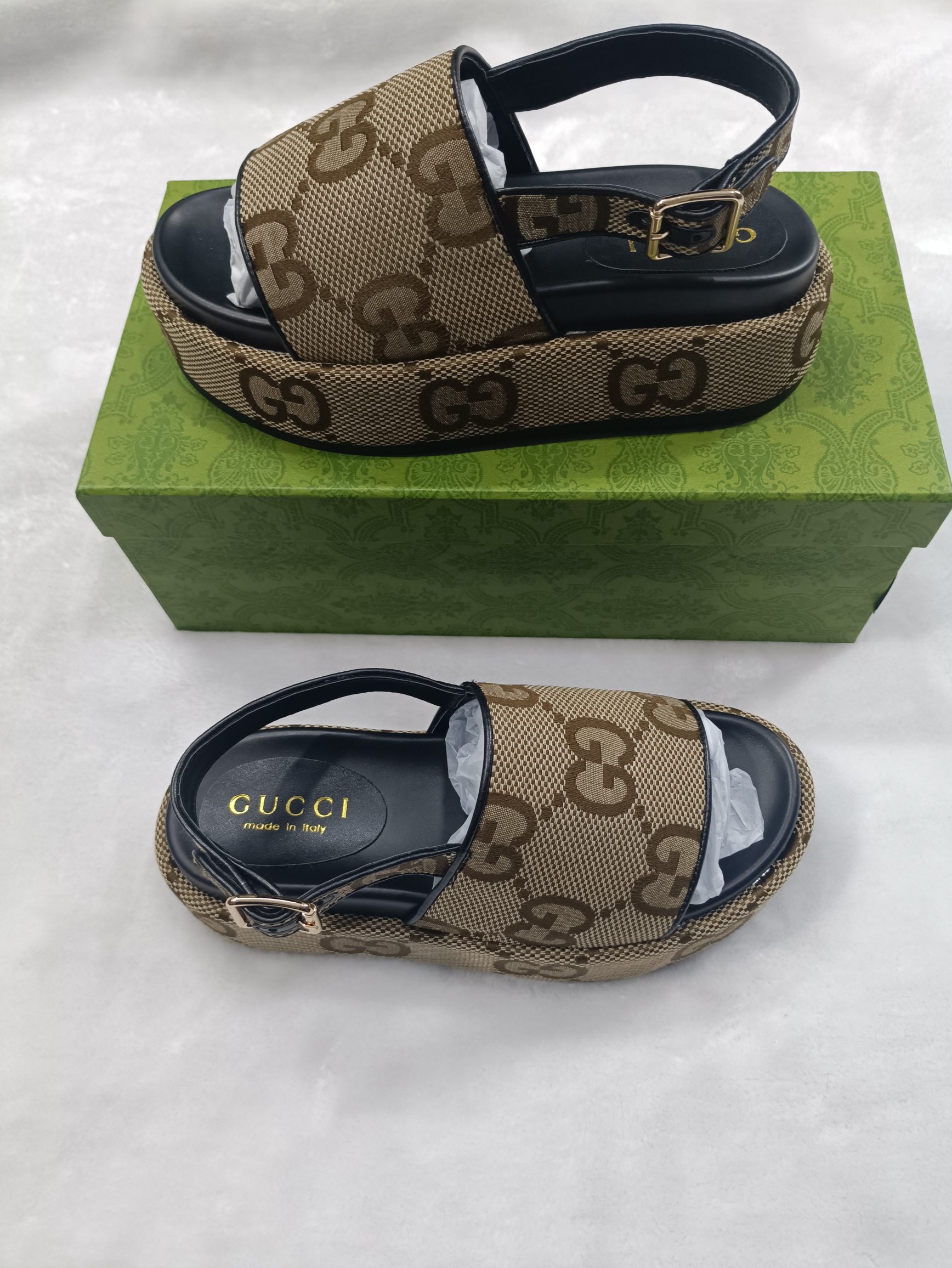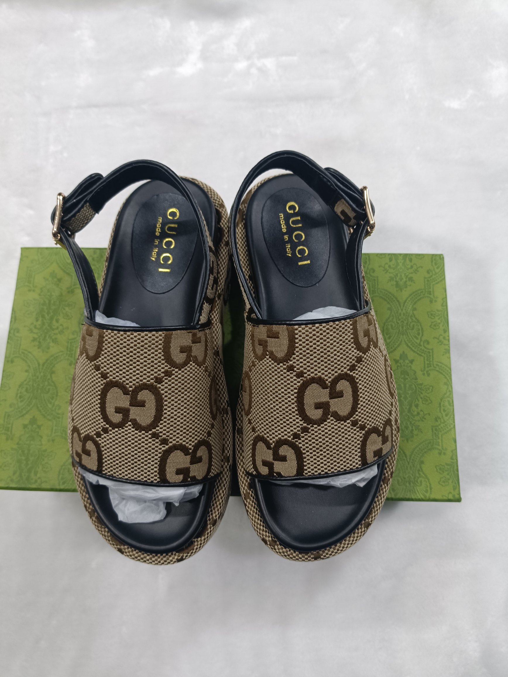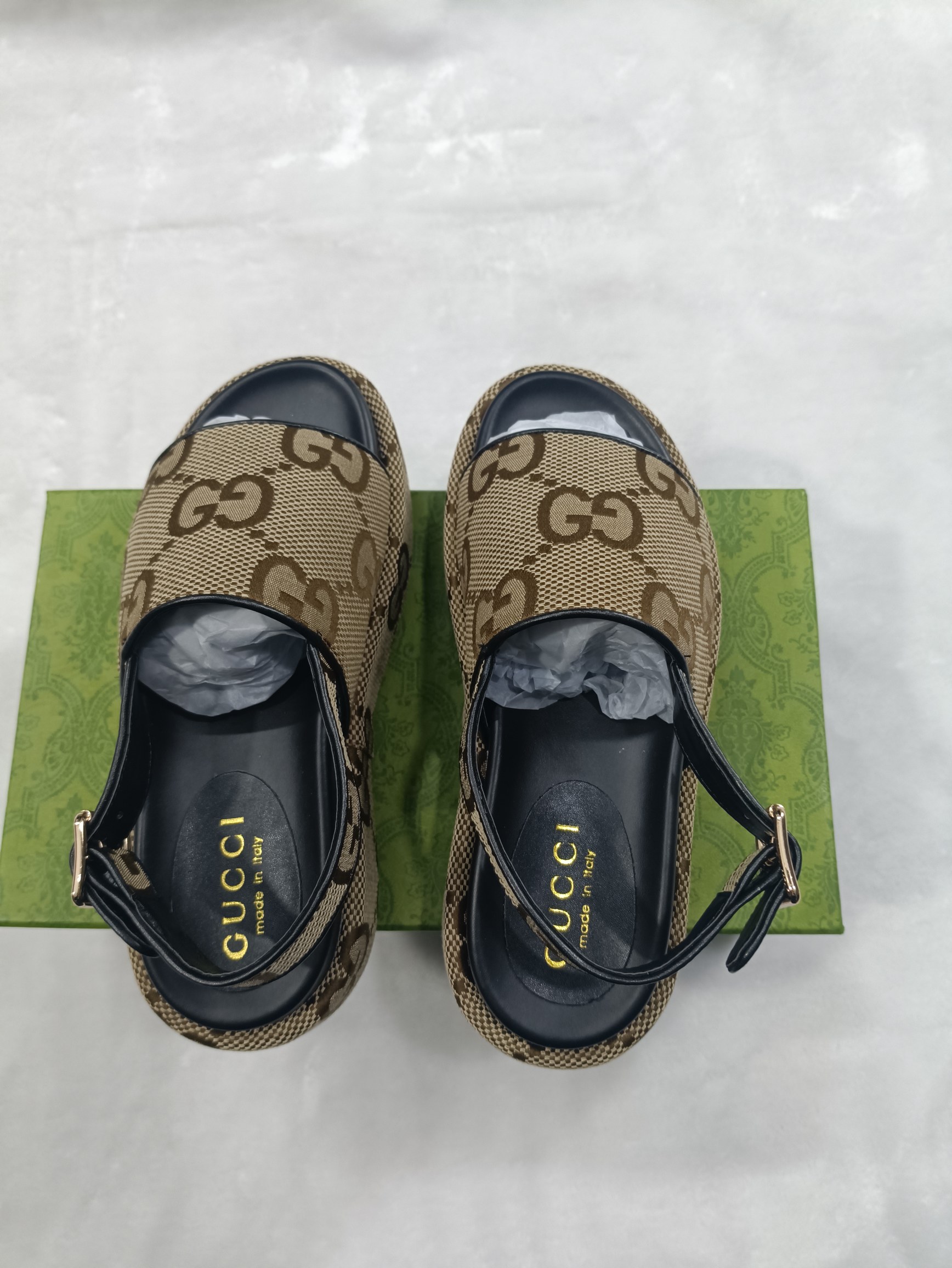 这款鞋子是AAAAA 1:1 质量 (非常棒). 使用了和原版一模一样的材料. 商标部分也保持了和古奇/Gucci一样. 图片拍摄是实物鞋子拍摄, 您所收到的实物保证和我们图片一模一样.