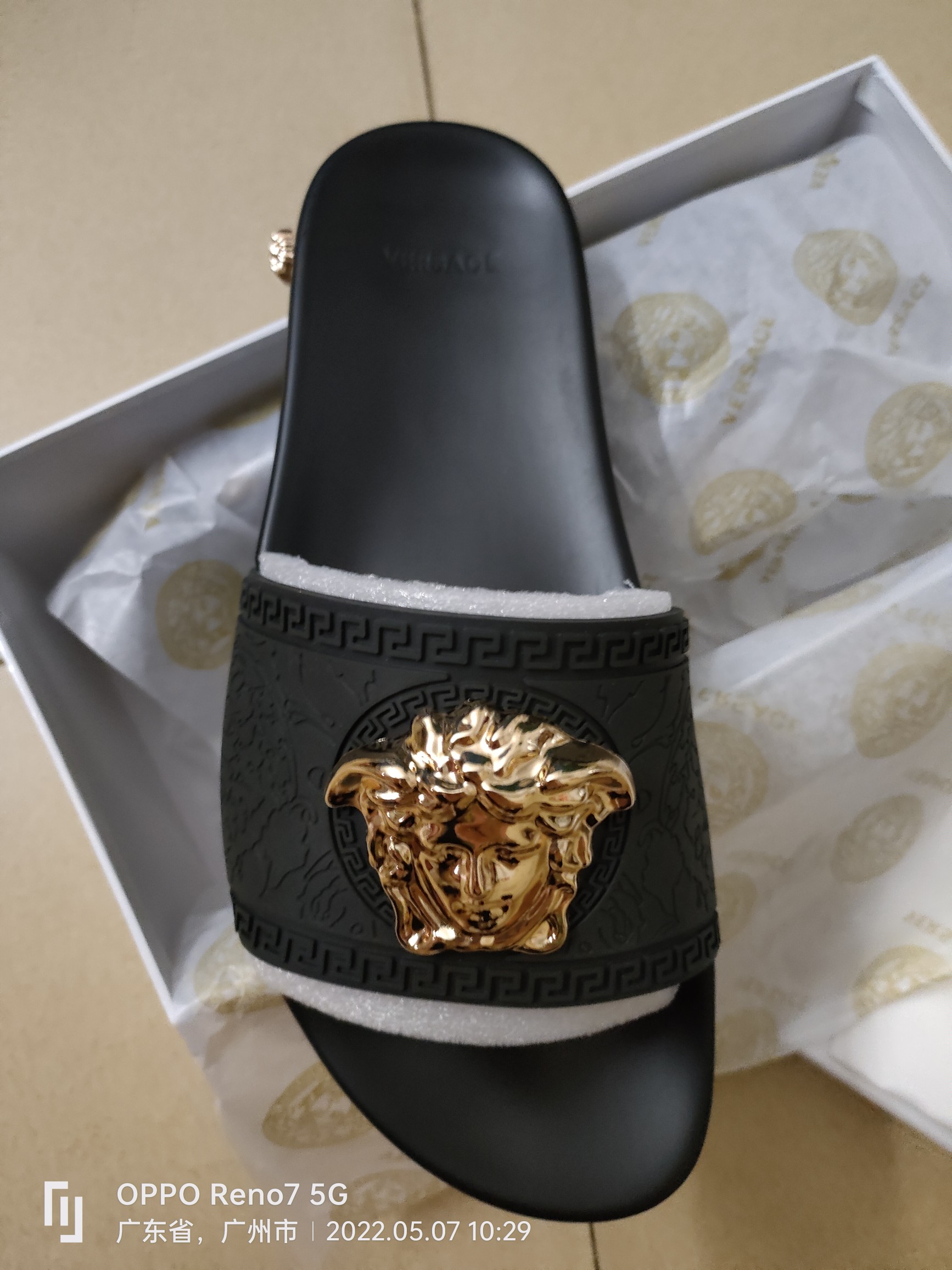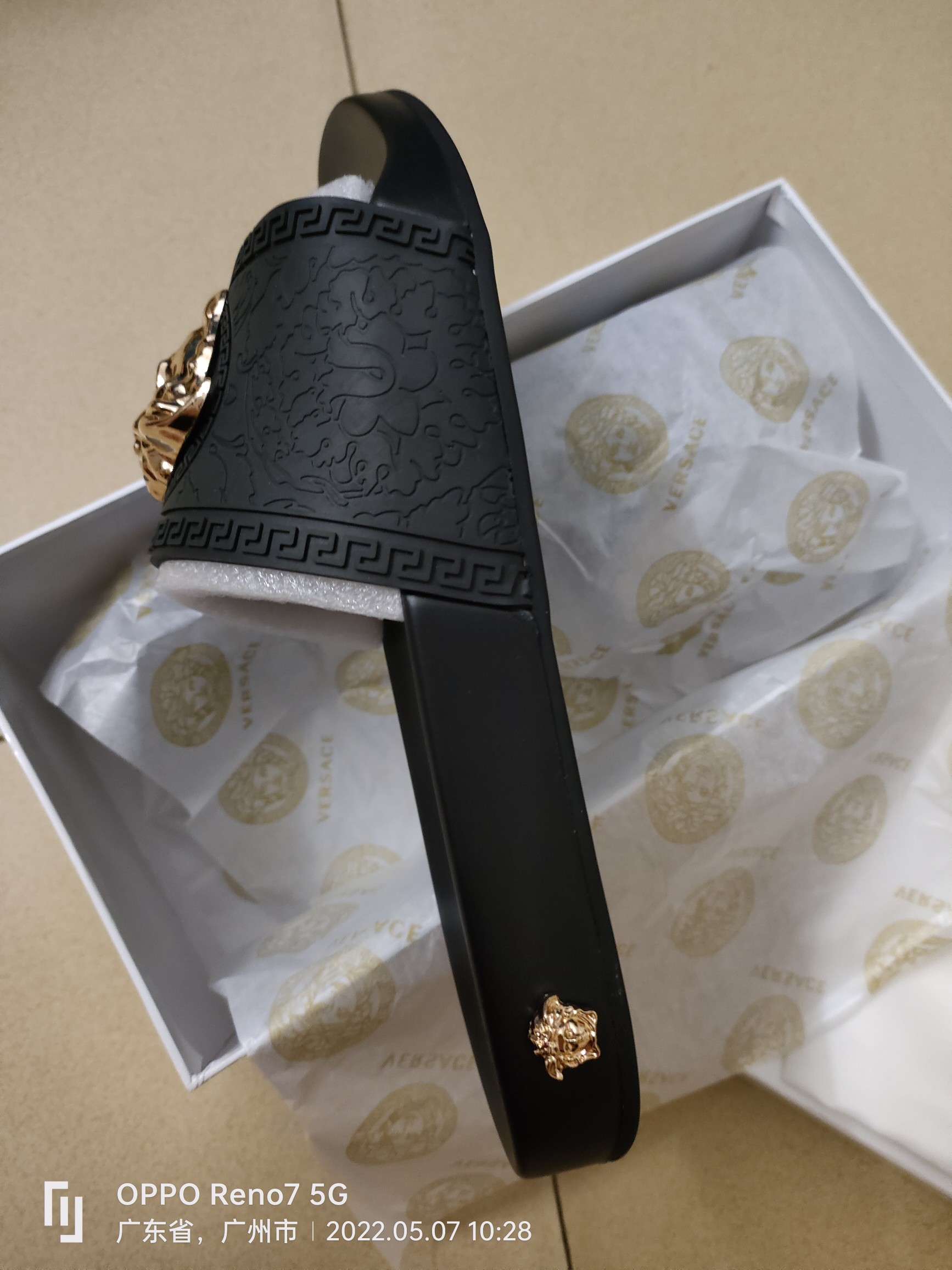 这款鞋子是AAAAA 1:1 质量 (非常棒). 使用了和原版一模一样的材料. 商标部分也保持了和范思哲/Versace一样. 图片拍摄是实物鞋子拍摄, 您所收到的实物保证和我们图片一模一样.