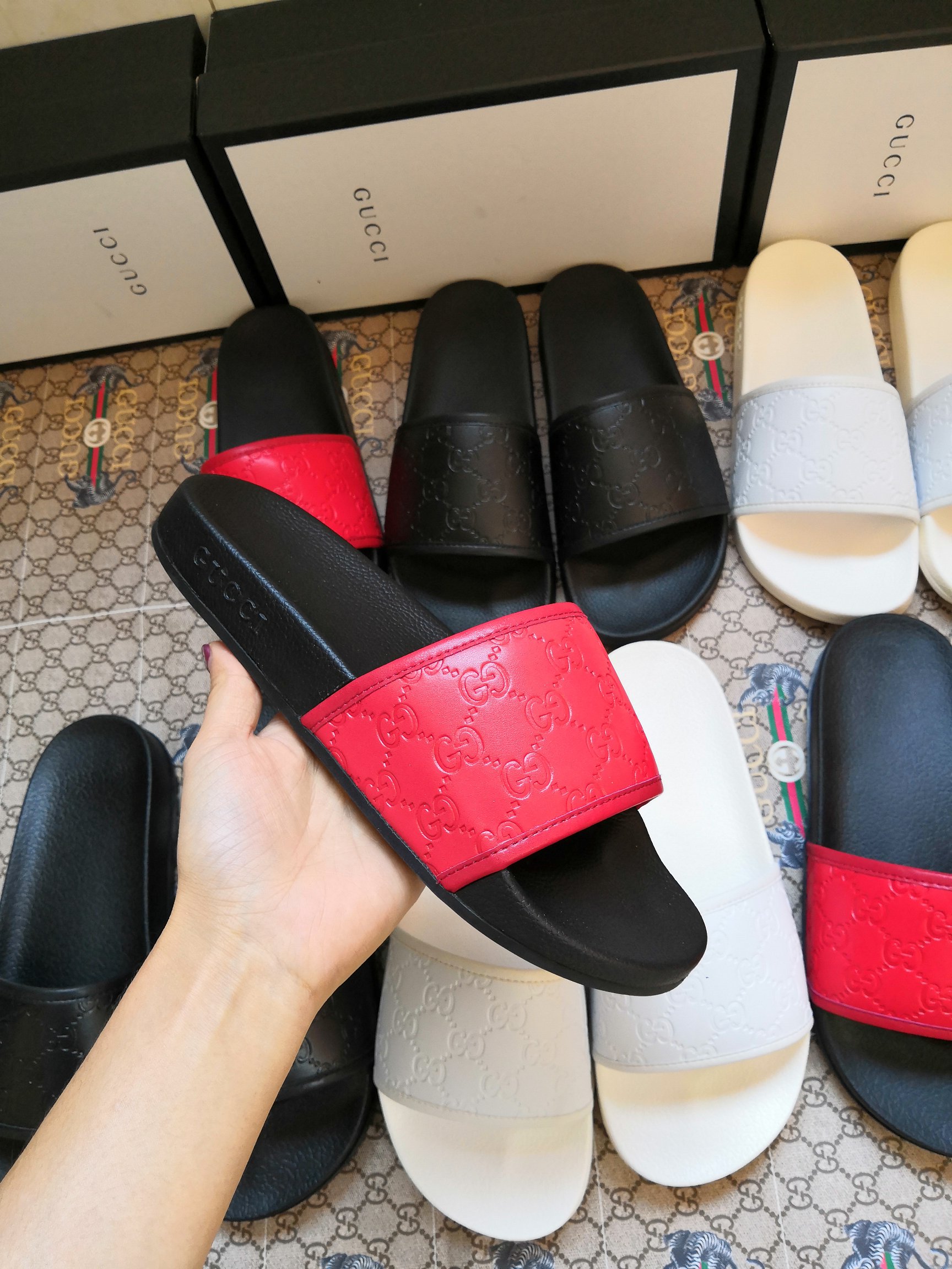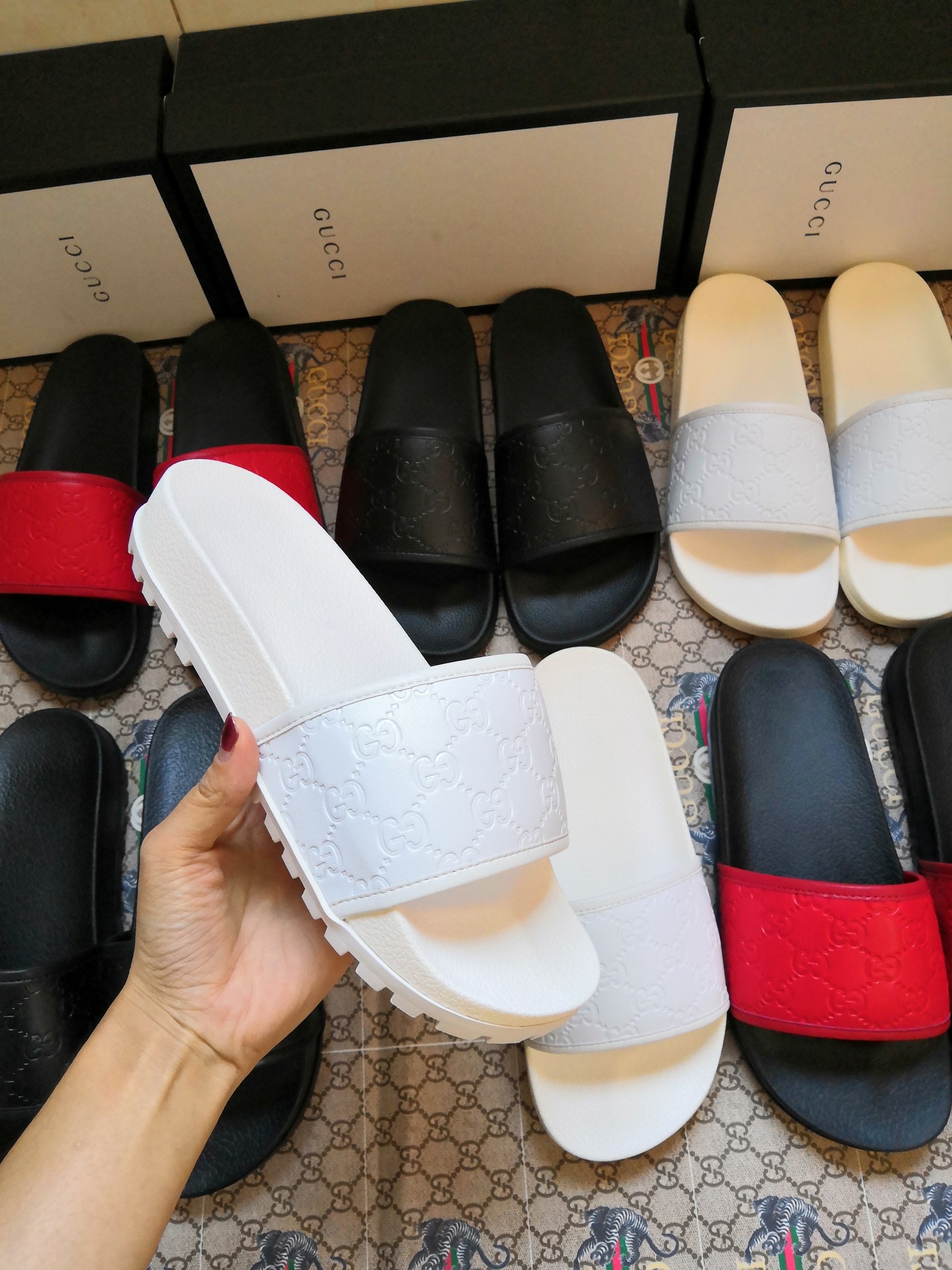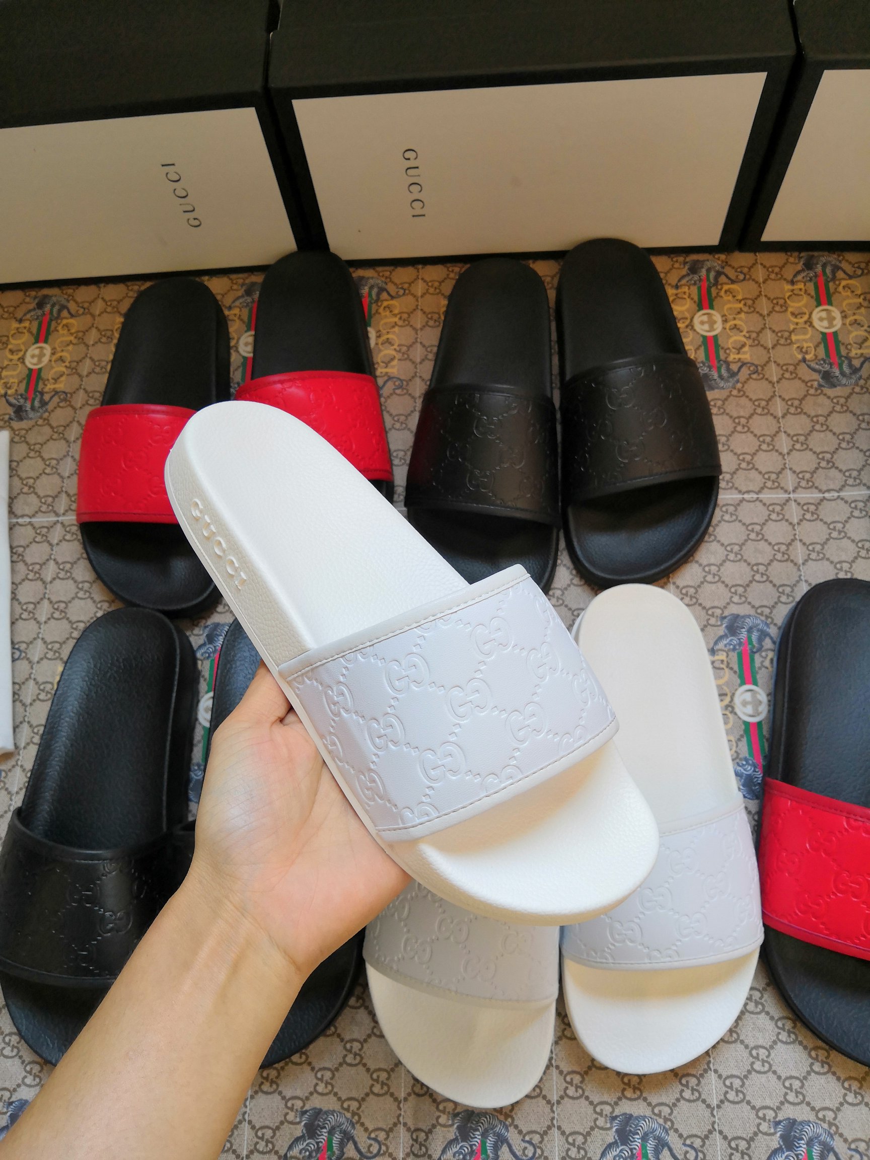 这款鞋子是AAAAA 1:1 质量 (非常棒). 使用了和原版一模一样的材料. 商标部分也保持了和古奇/Gucci一样. 图片拍摄是实物鞋子拍摄, 您所收到的实物保证和我们图片一模一样.
