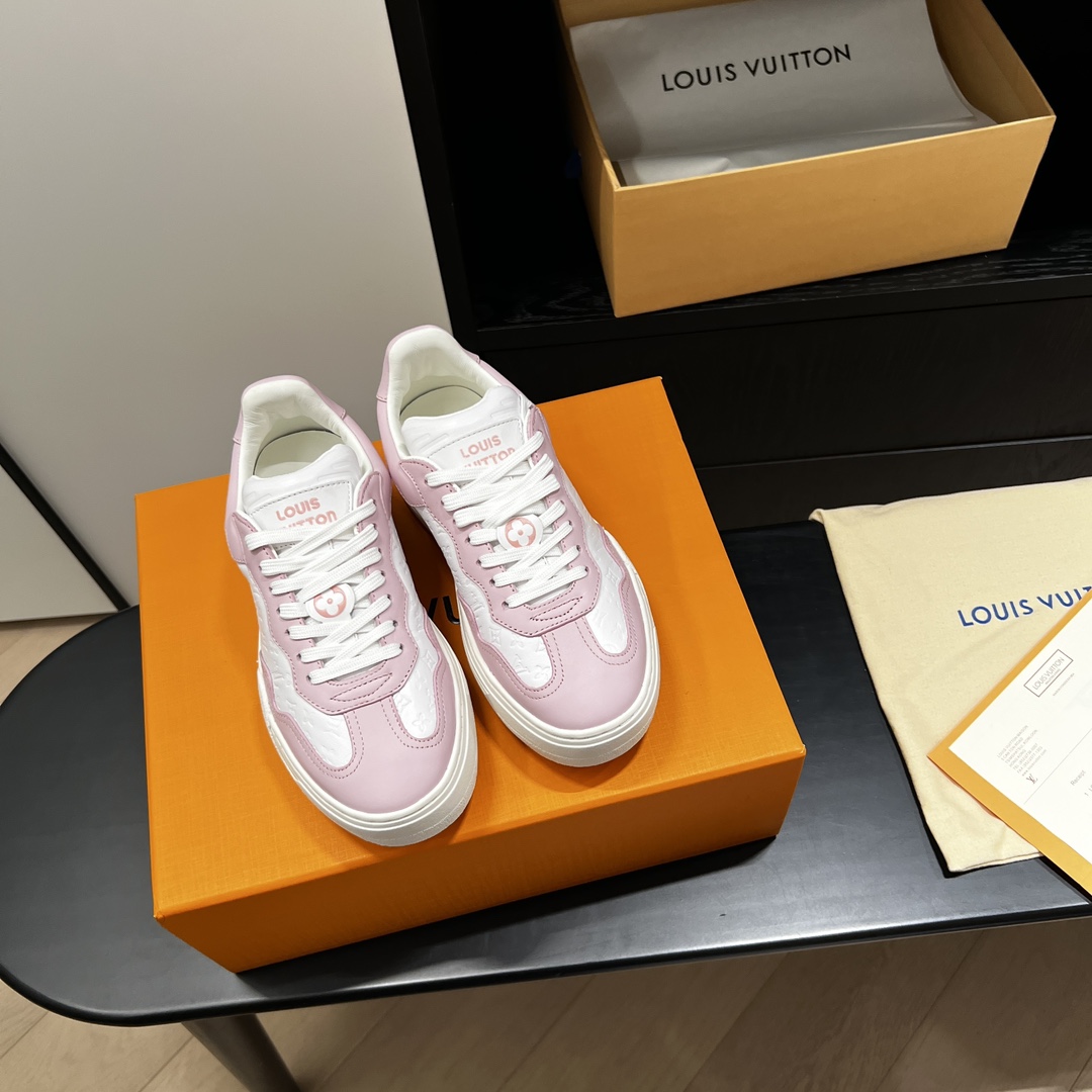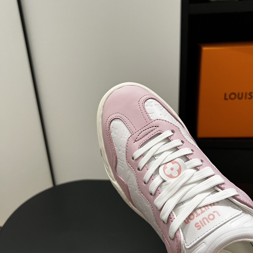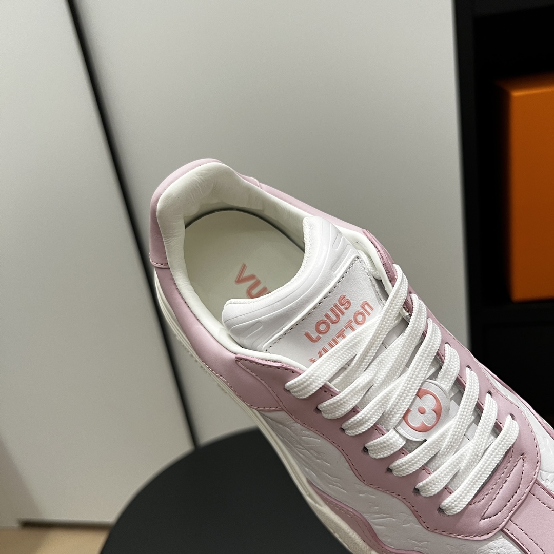 这款鞋子是AAAAA 1:1 质量 (非常棒). 使用了和原版一模一样的材料. 商标部分也保持了和路易威登/Louis Vuitton一样. 图片拍摄是实物鞋子拍摄, 您所收到的实物保证和我们图片一模一样.
